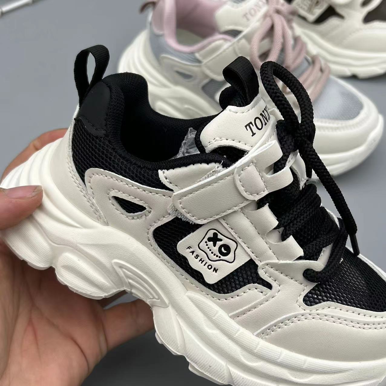 Brand children's sports shoes 2024 Spring and Autumn new boys' and girls' spring style net shoes, breathable net upper girls' dad shoes