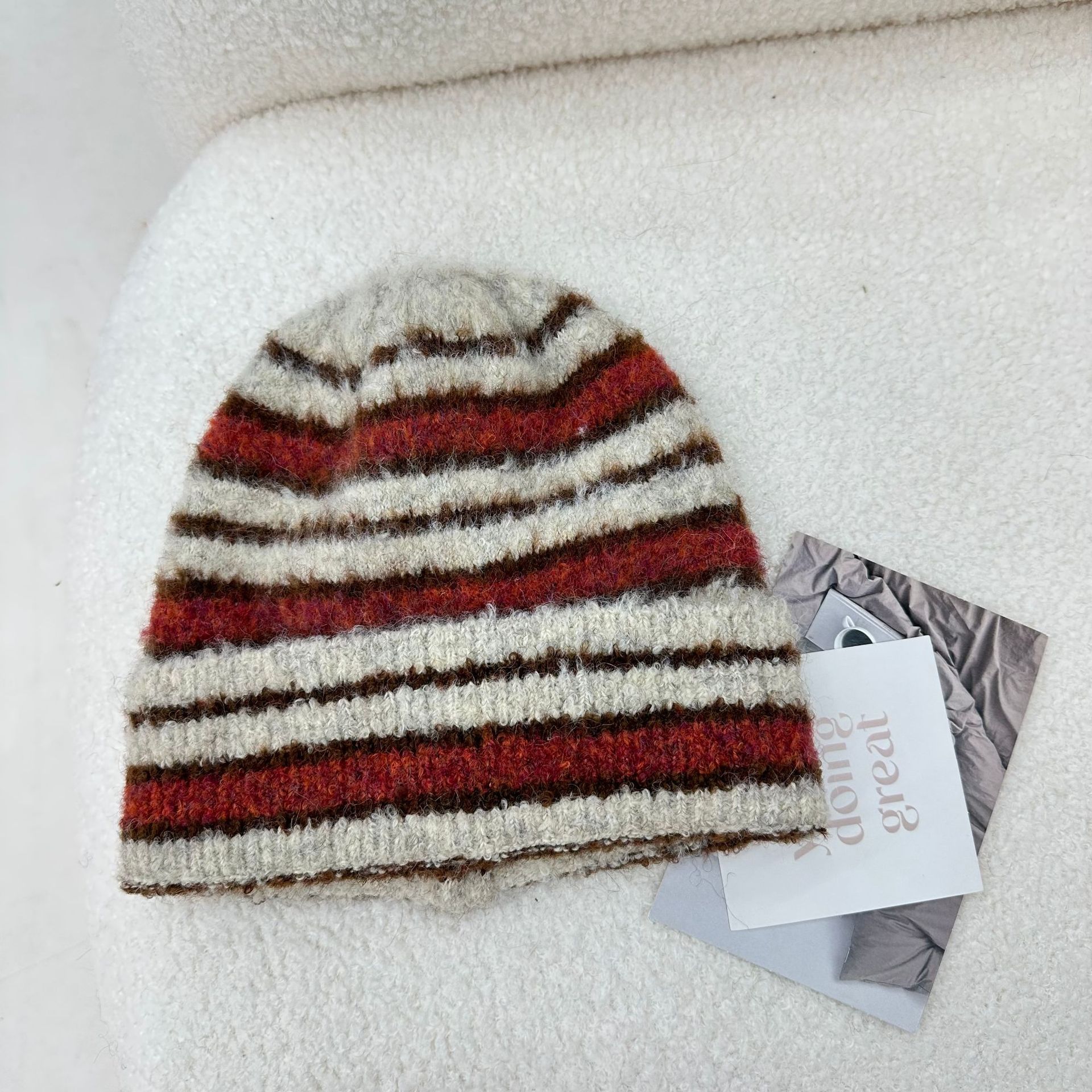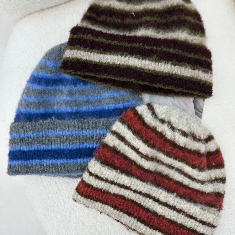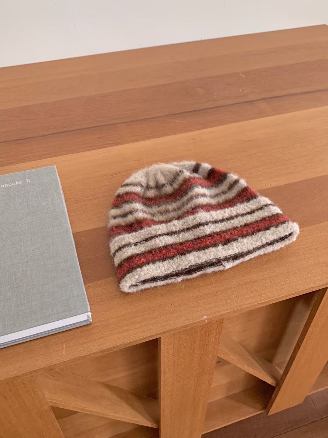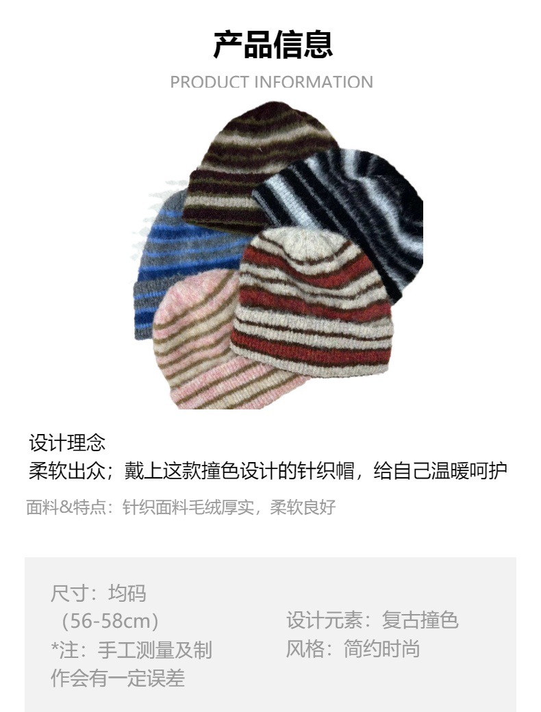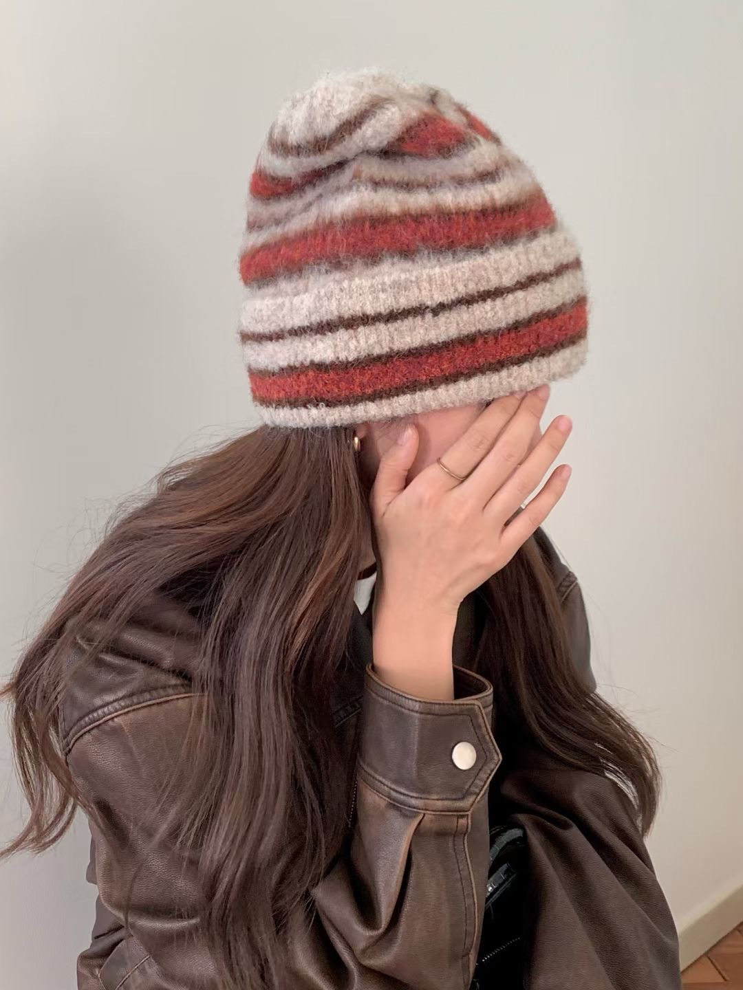 Brand "Sondona" knitted cap 2025 Autumn/Winter new style two-color striped Korean-style woolen cap, retro big head, small face, versatile and warm adult cap