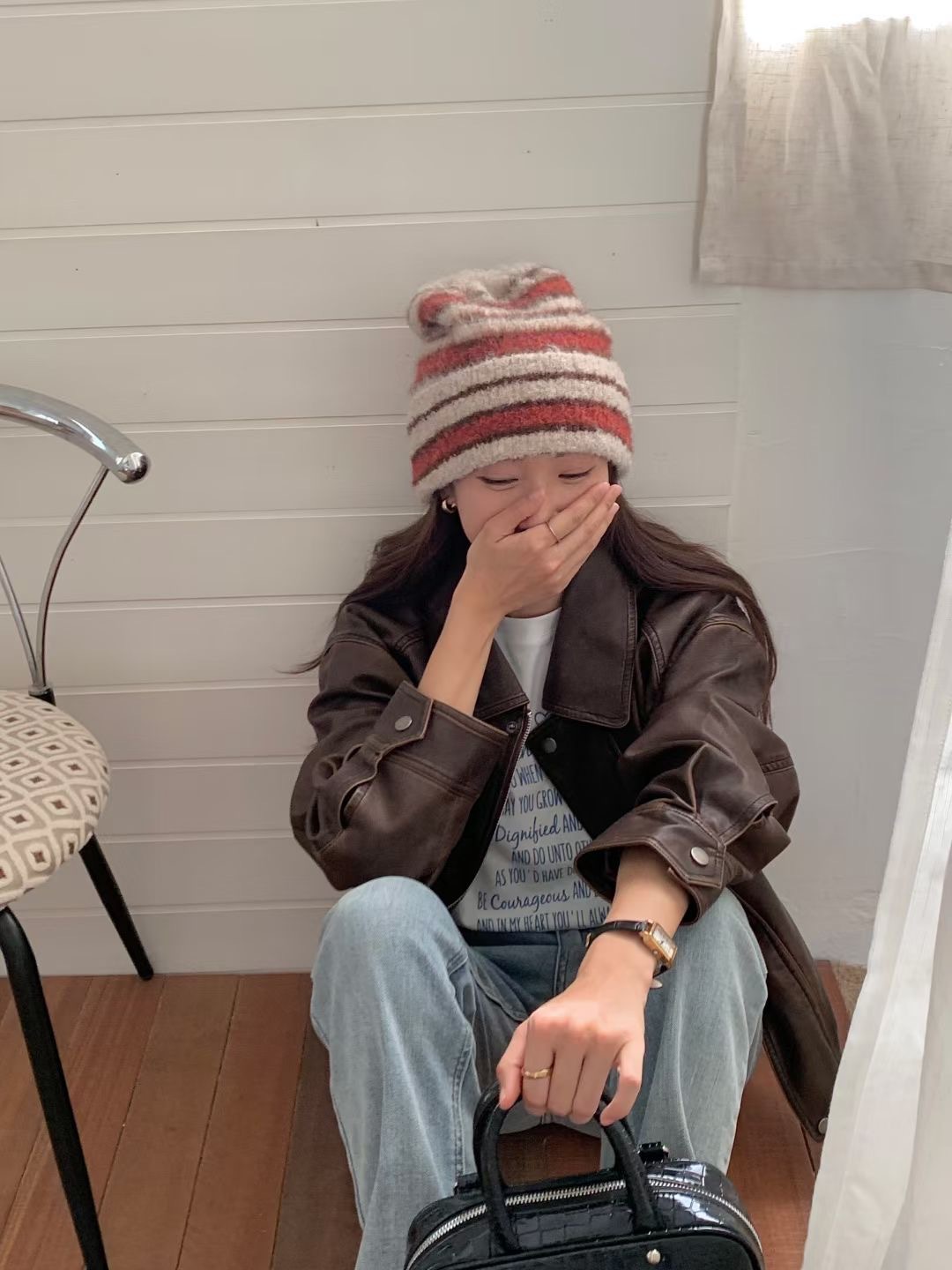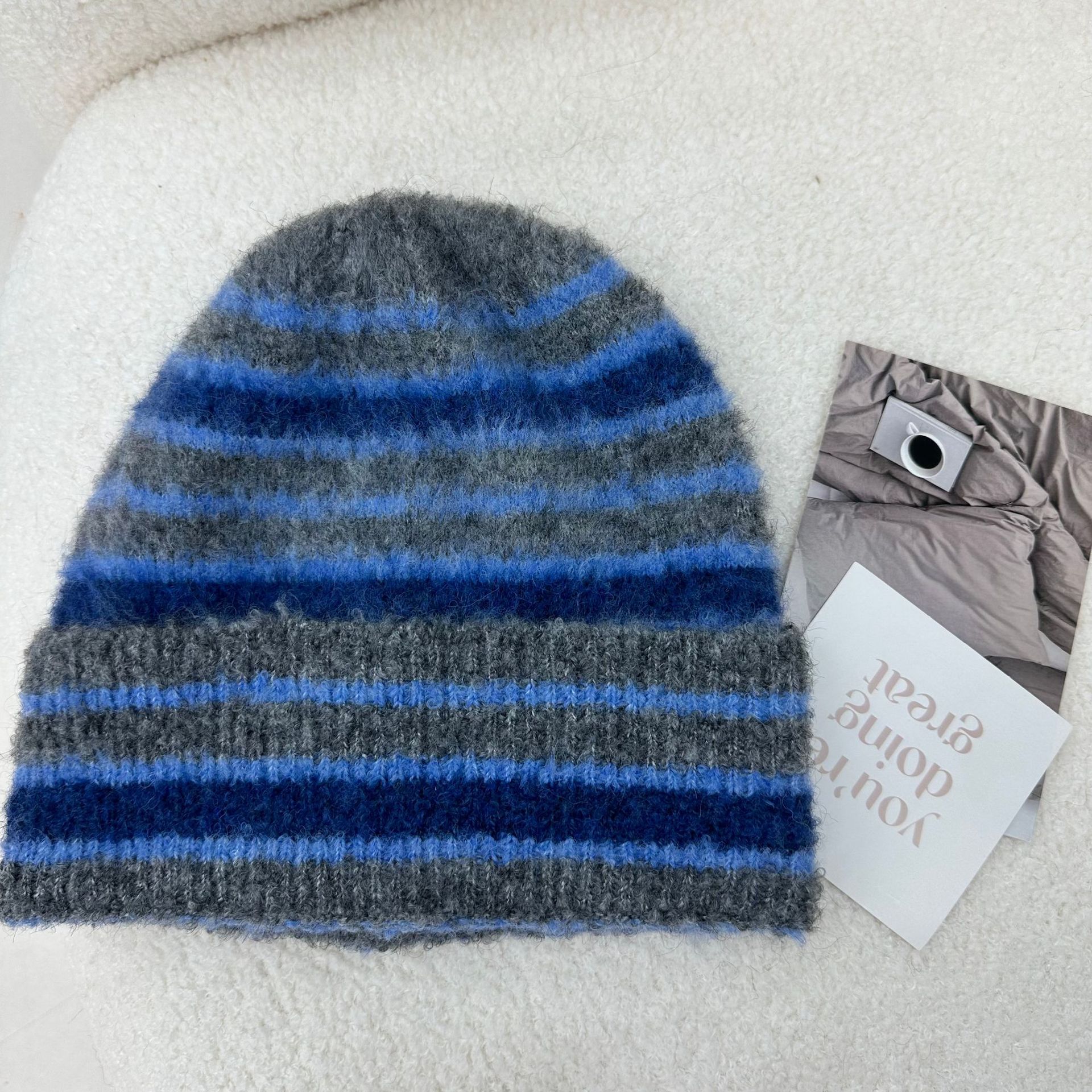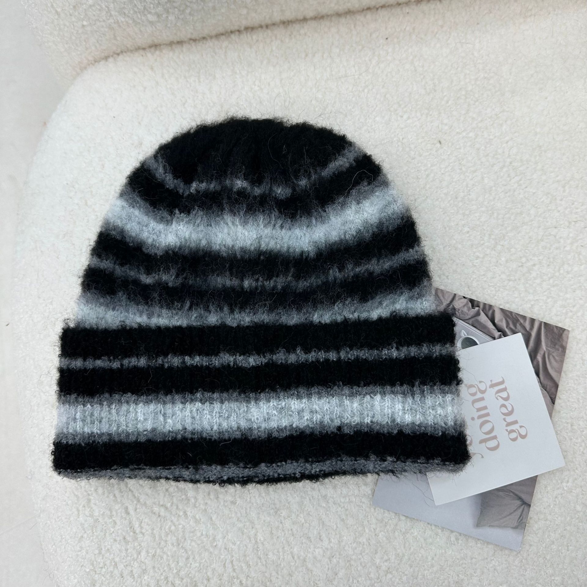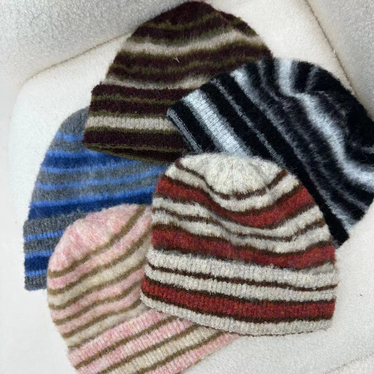 Brand "Sondona" knitted cap 2025 Autumn/Winter new style two-color striped Korean-style woolen cap, retro big head, small face, versatile and warm adult cap