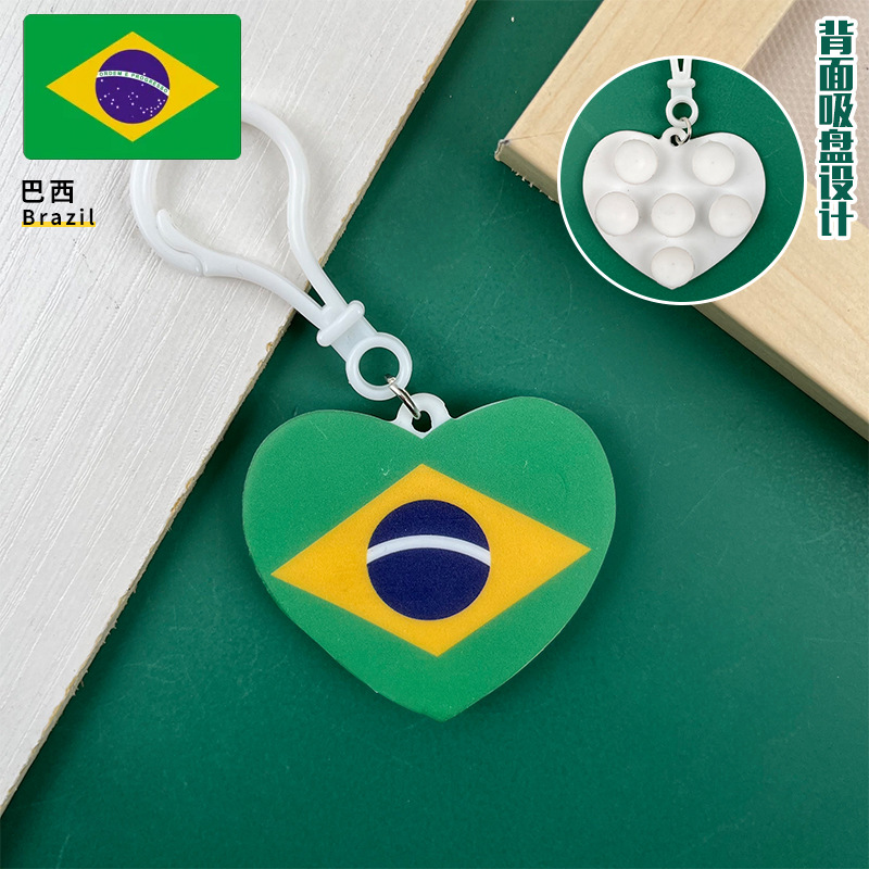Brazilian and Israeli flag keychains, multiple types of heart-shaped national flag keychains, flag icon suction cup toys