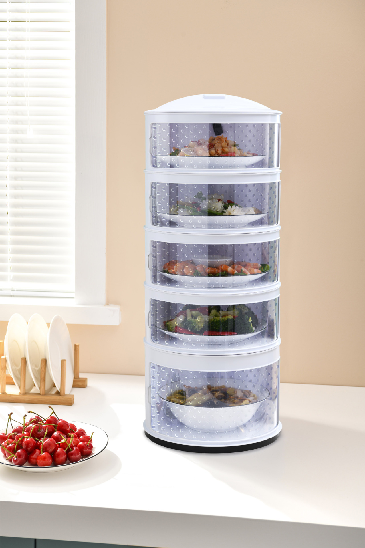 Breathable and heat-insulating vegetable cover, kitchen transparent plastic multi-layer food cover, summer dining table mosquito and fly-proof preservation cover