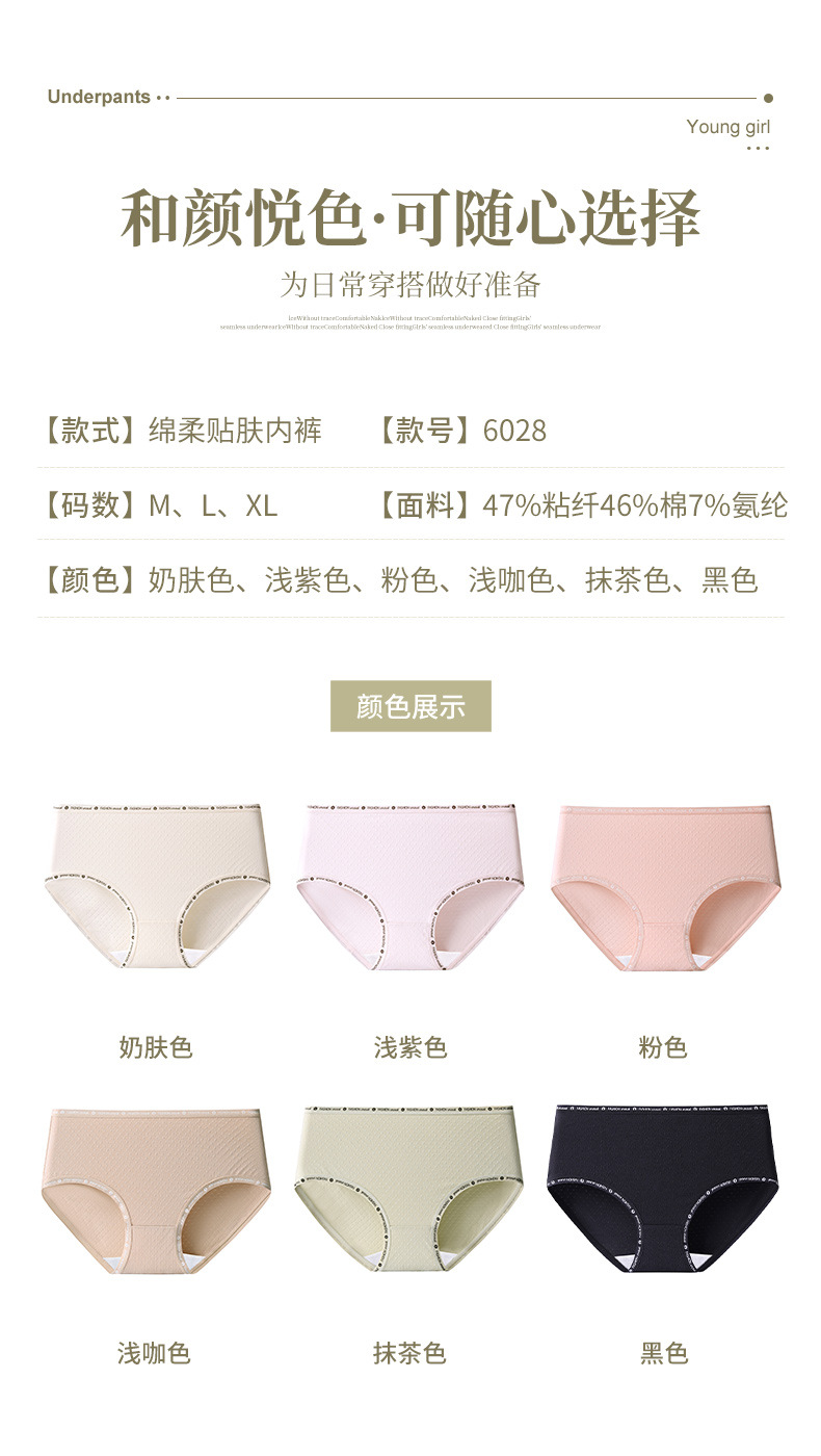 Breathable, nude, soft and comfortable girls' underwear with letter waist decoration, multi-color women's triangle pants with elastic wrapping