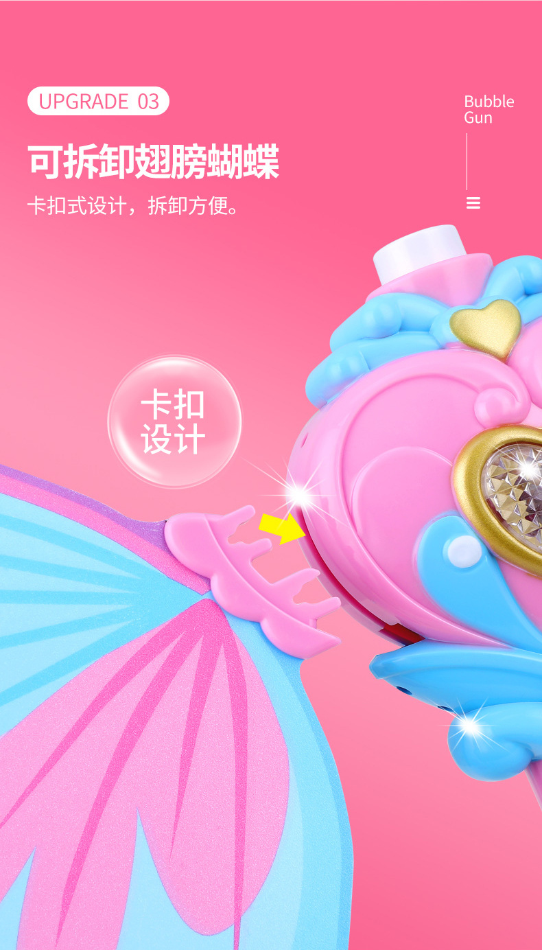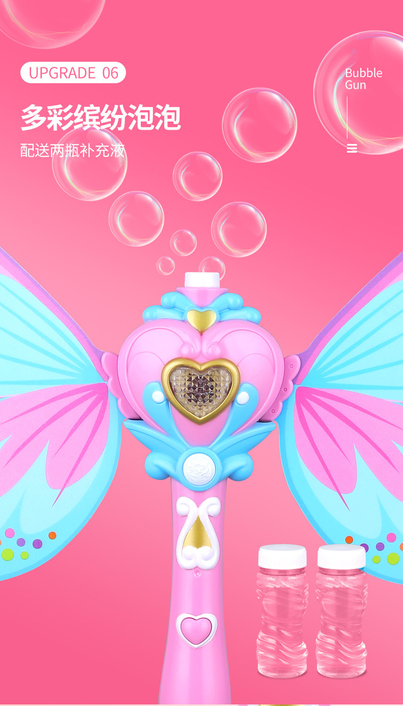Bubble machine, cartoon Internet celebrity, girl's heart, magic bubble stick, electric sound and light music, children's bubble, street stall toys