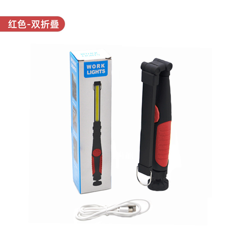 Buckle-charge double-folding cob lamp, magnetic suction work flashlight, car maintenance lamp, outdoor camping led lighting lamp
