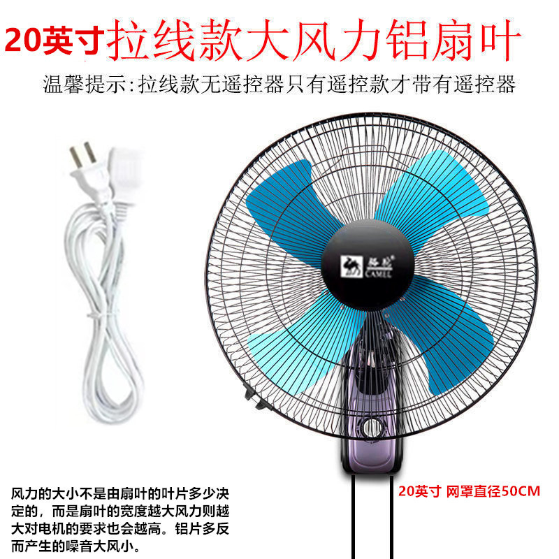 Camel wall fan, wall-mounted fan, 16-inch and 20-inch aluminum blade plastic blade, home, restaurant, oscillating industrial fan, wall