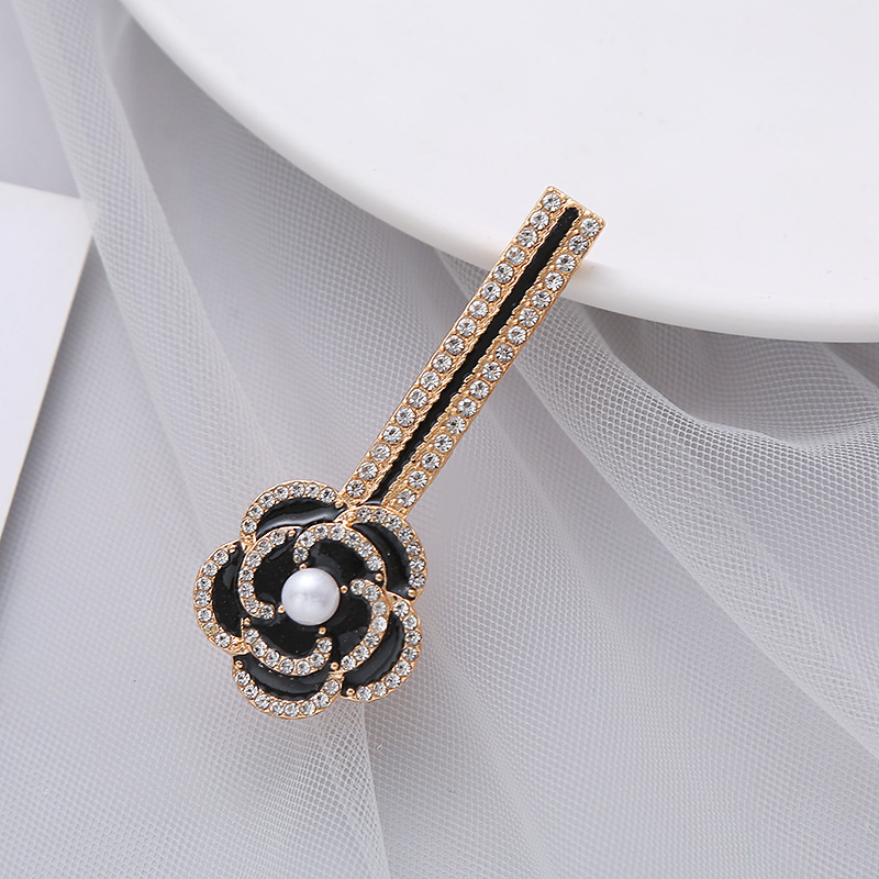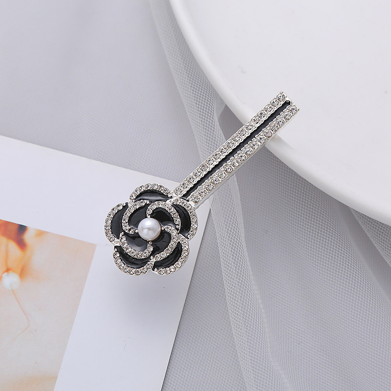 Camellia pearl flower edge one-line clip, the same style of Korean Dongdaemun's popular and simple water diamond clip for young girls