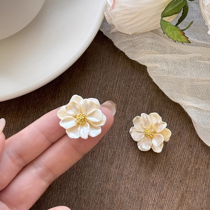 Camellia stud earrings for women, a light luxury and high-end niche earring 2025 new style, a gentle and elegant ear accessory suitable for spring