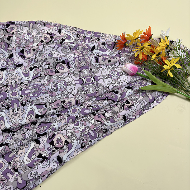 Camouflage geometric pattern four-sided elastic printed fabric beach pants, fashionable polyester fabric, large quantity and favorable price, factory direct sales