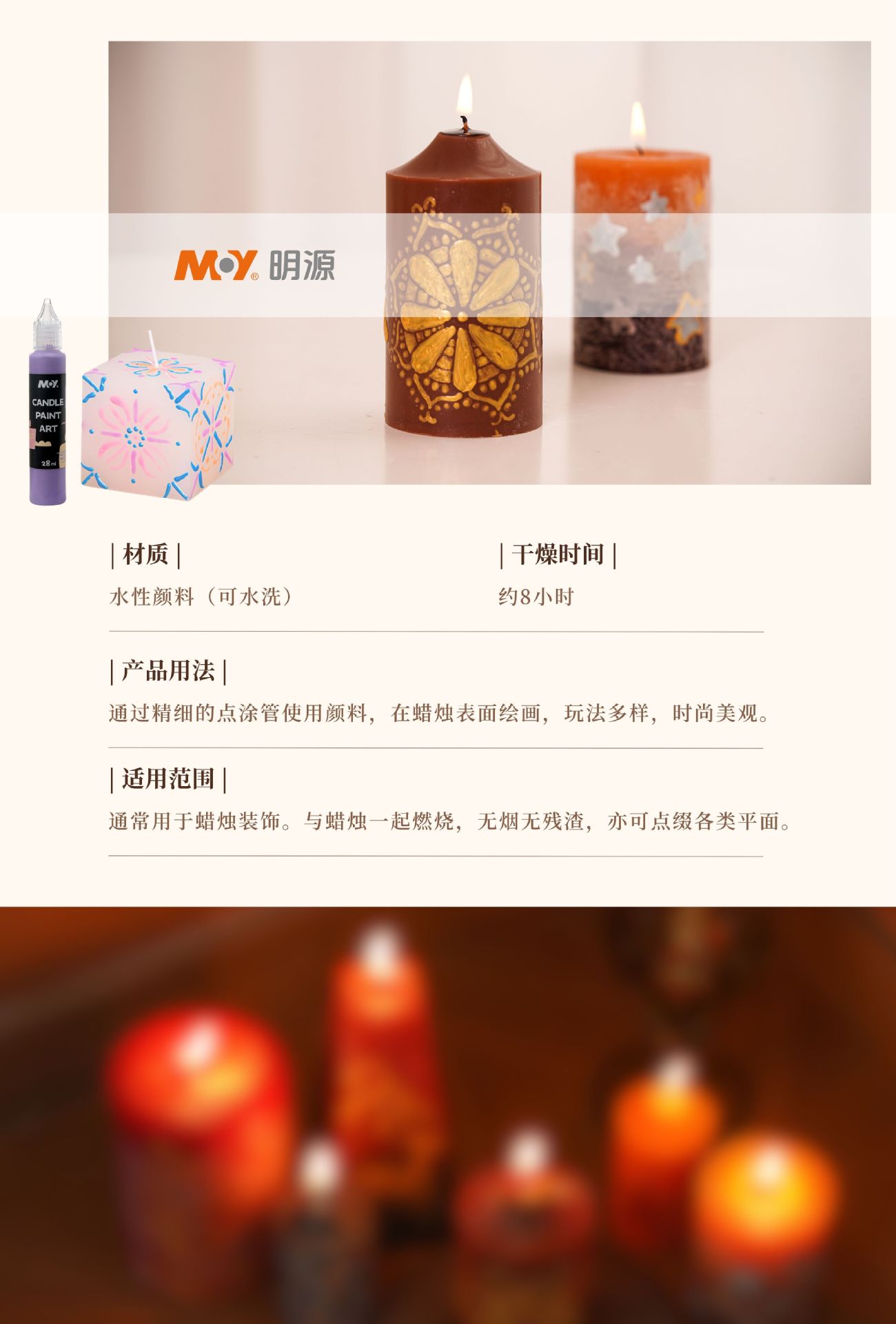 Candle paintbrush special paint, children's DIY aromatherapy, washable, smokeless, flammable, 3D outlining and coloring, party decoration
