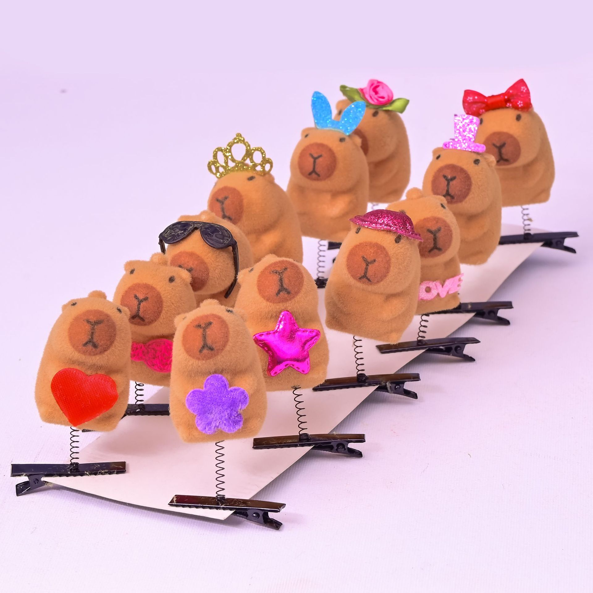 Capibara toys, creative simulation of Capibara dolls, hairpins, children's decorations, hats with eyes, cartoon cuteness and fun