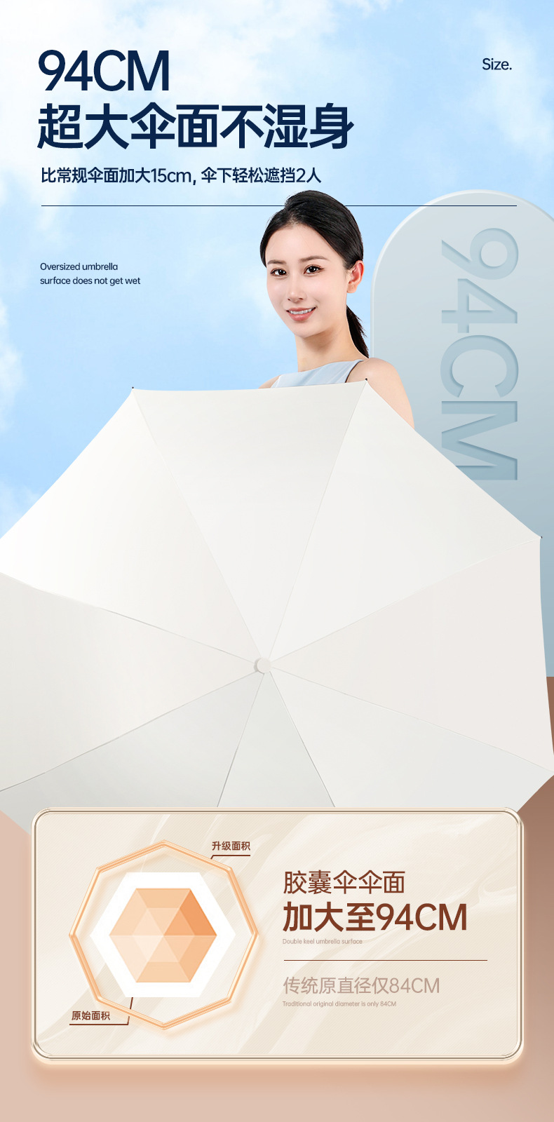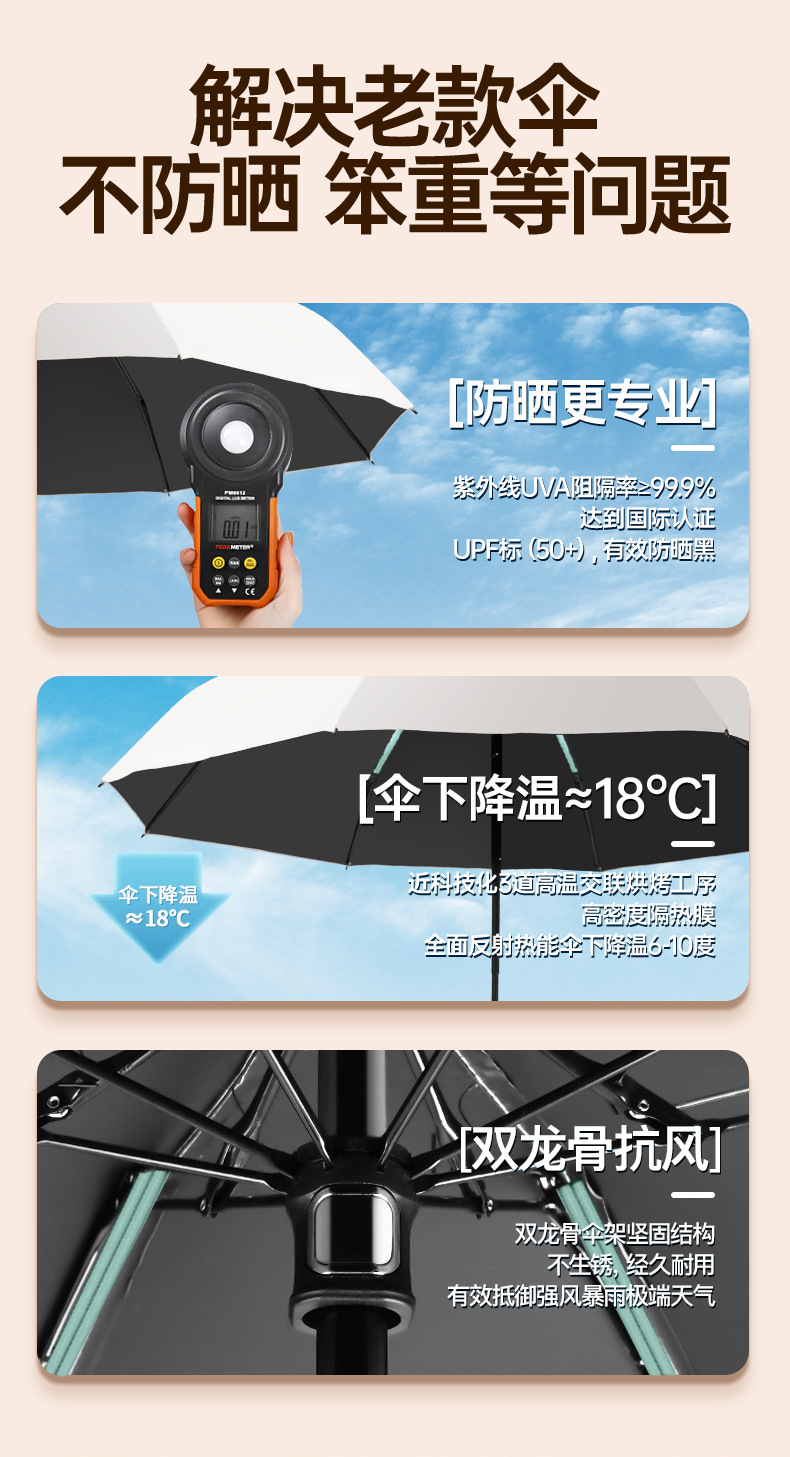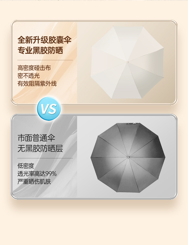 6 ribs [thickened umbrella ribs/UV protection] Light beige