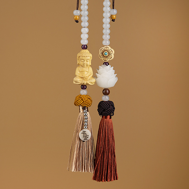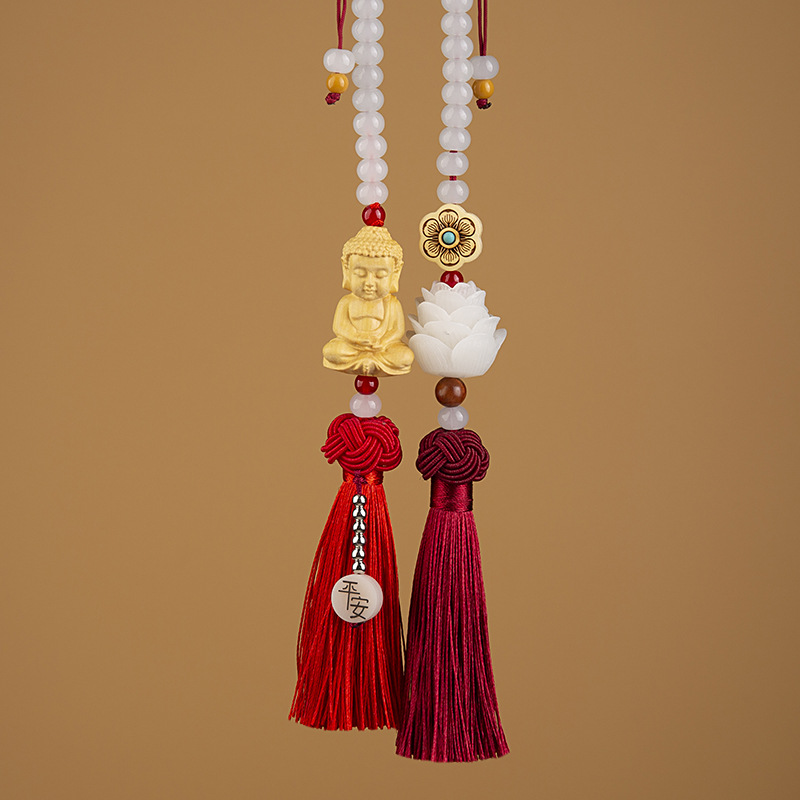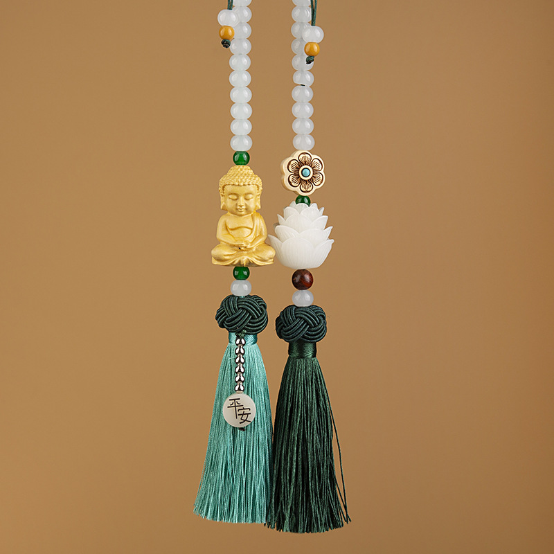 Car pendants, Bodhi seed lotus rearview mirror ornaments, interior safety decorations, pendants, boxwood Buddha ornaments, national trend