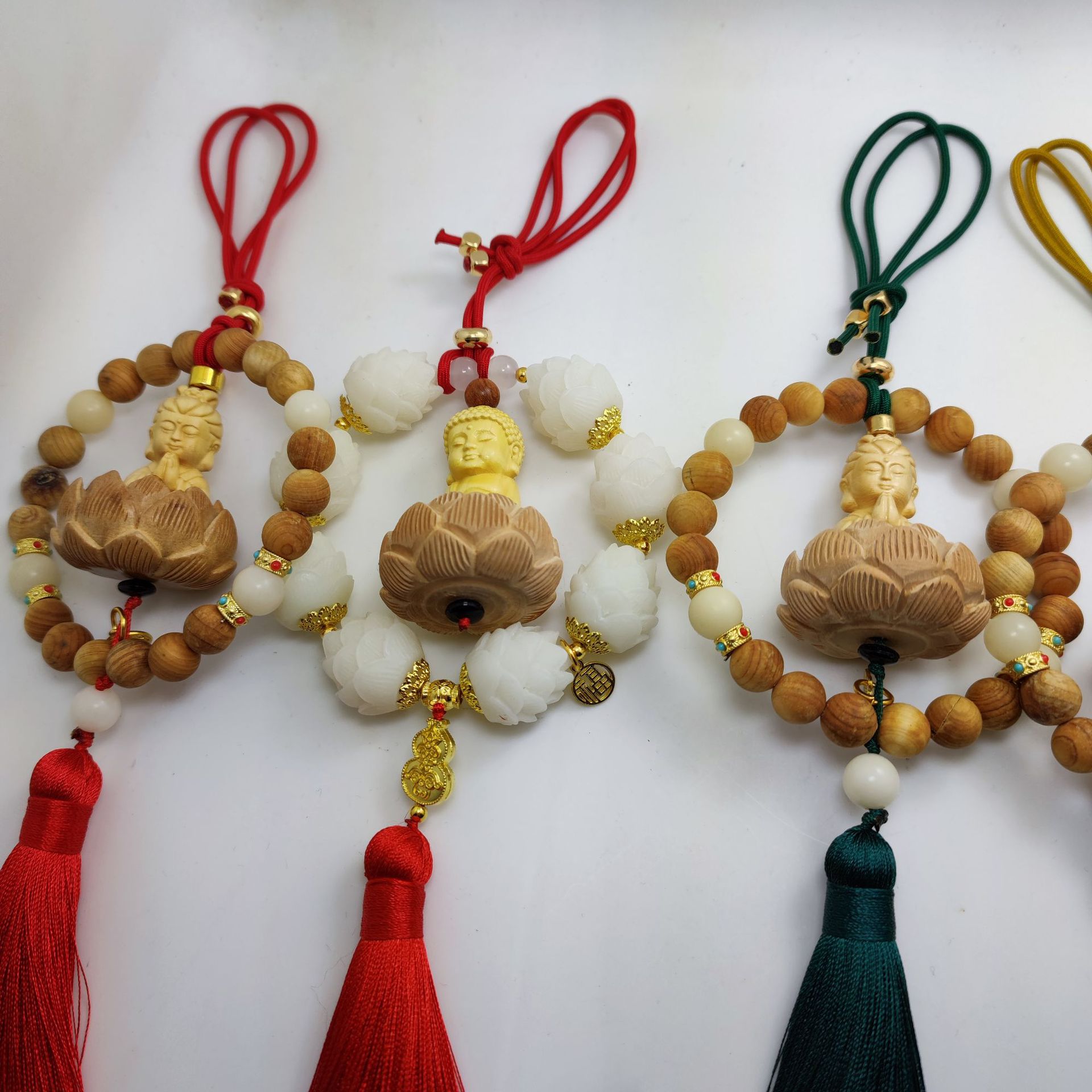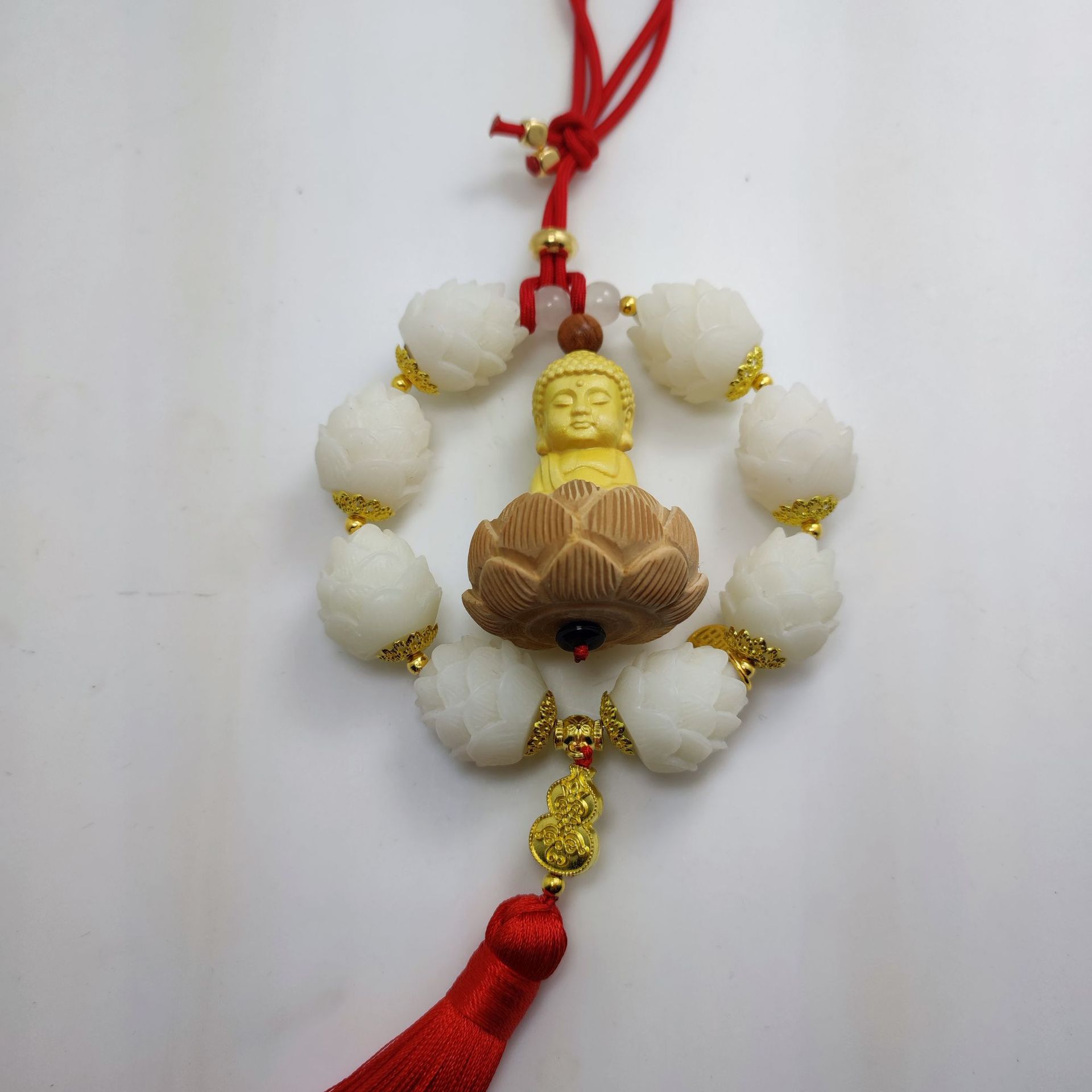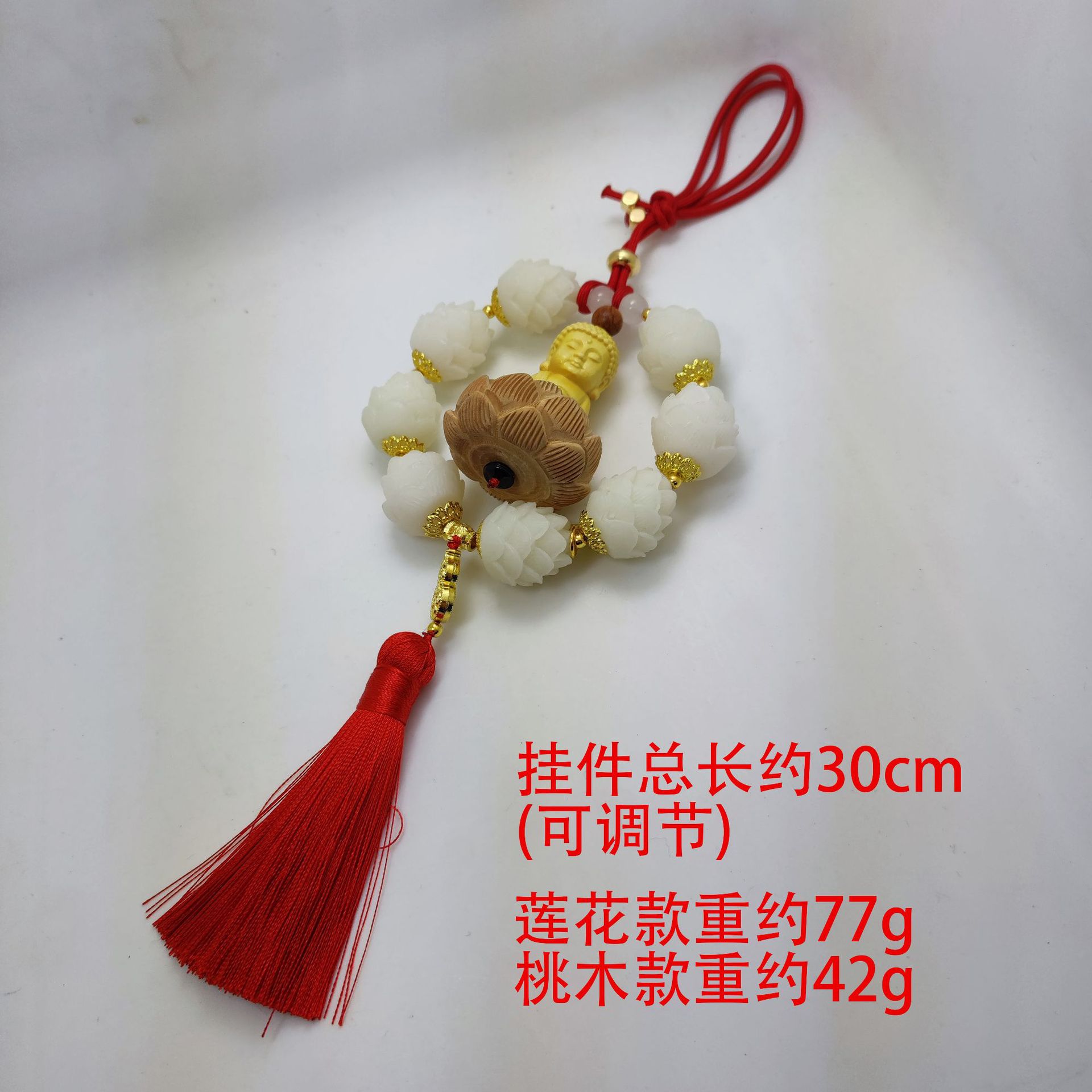 Car pendants, interior decorations, Lotus Buddha rearview mirror safety pendants, men's and women's styles, lotus and peach wood tassels, traditional Chinese style