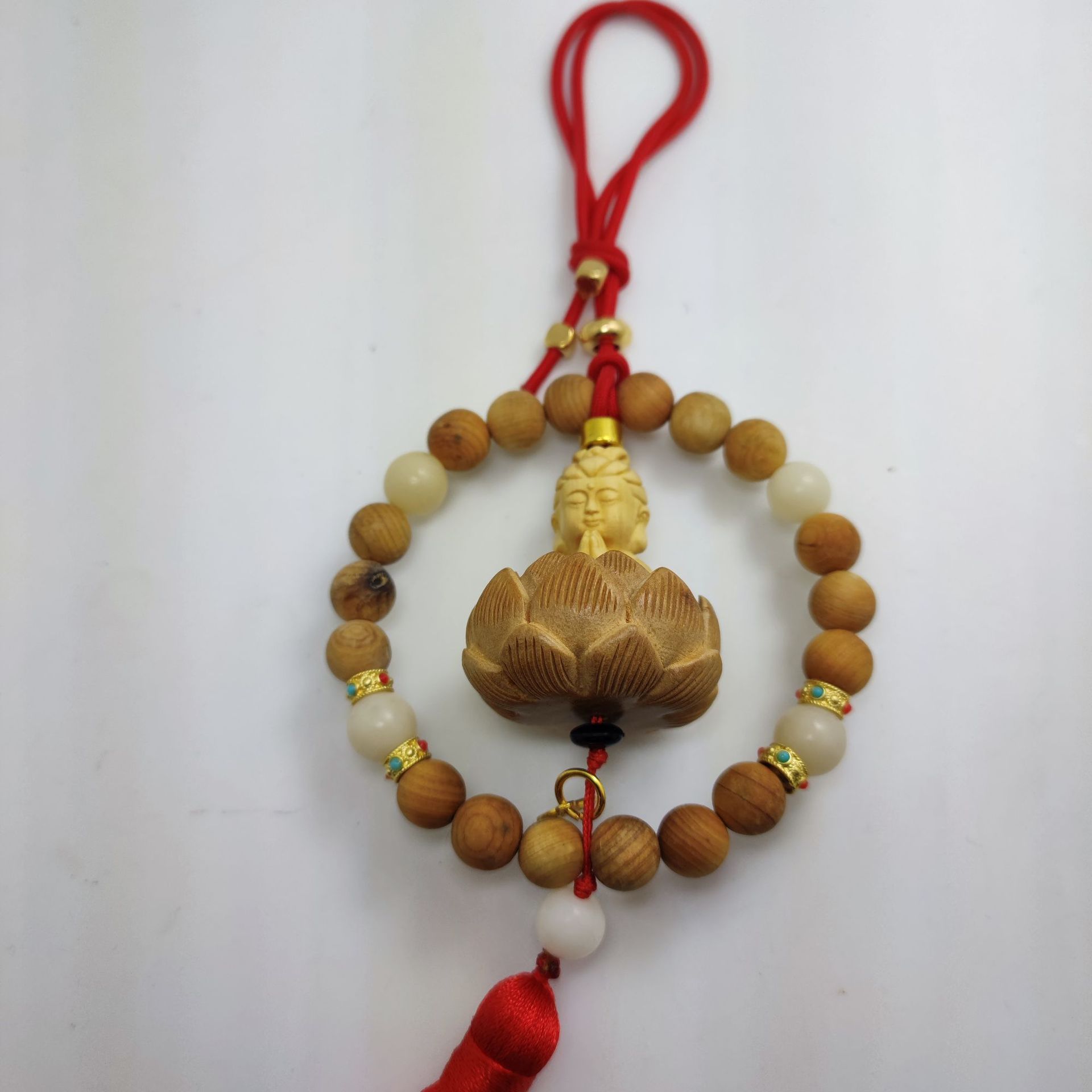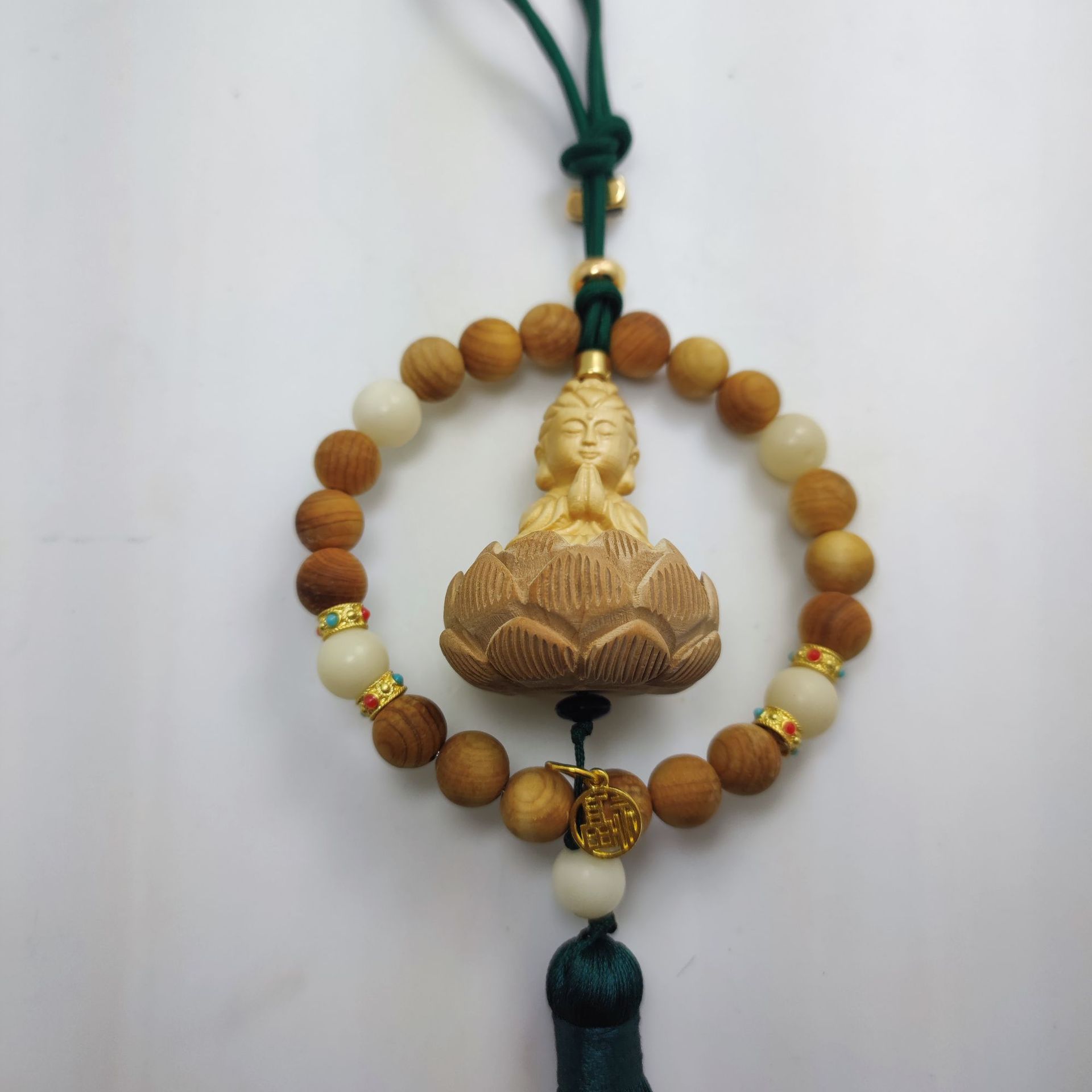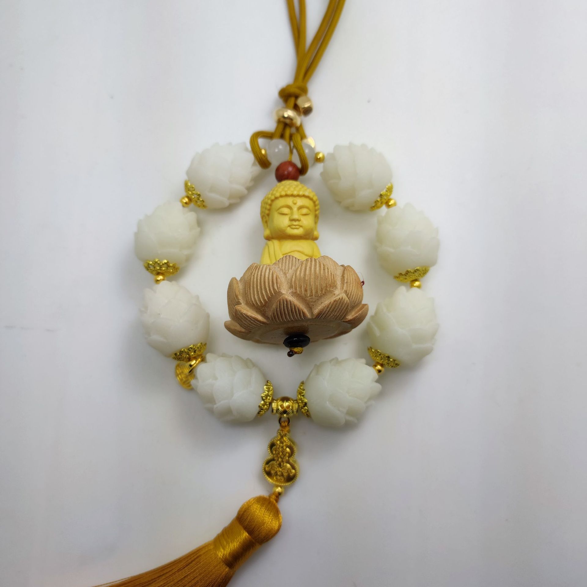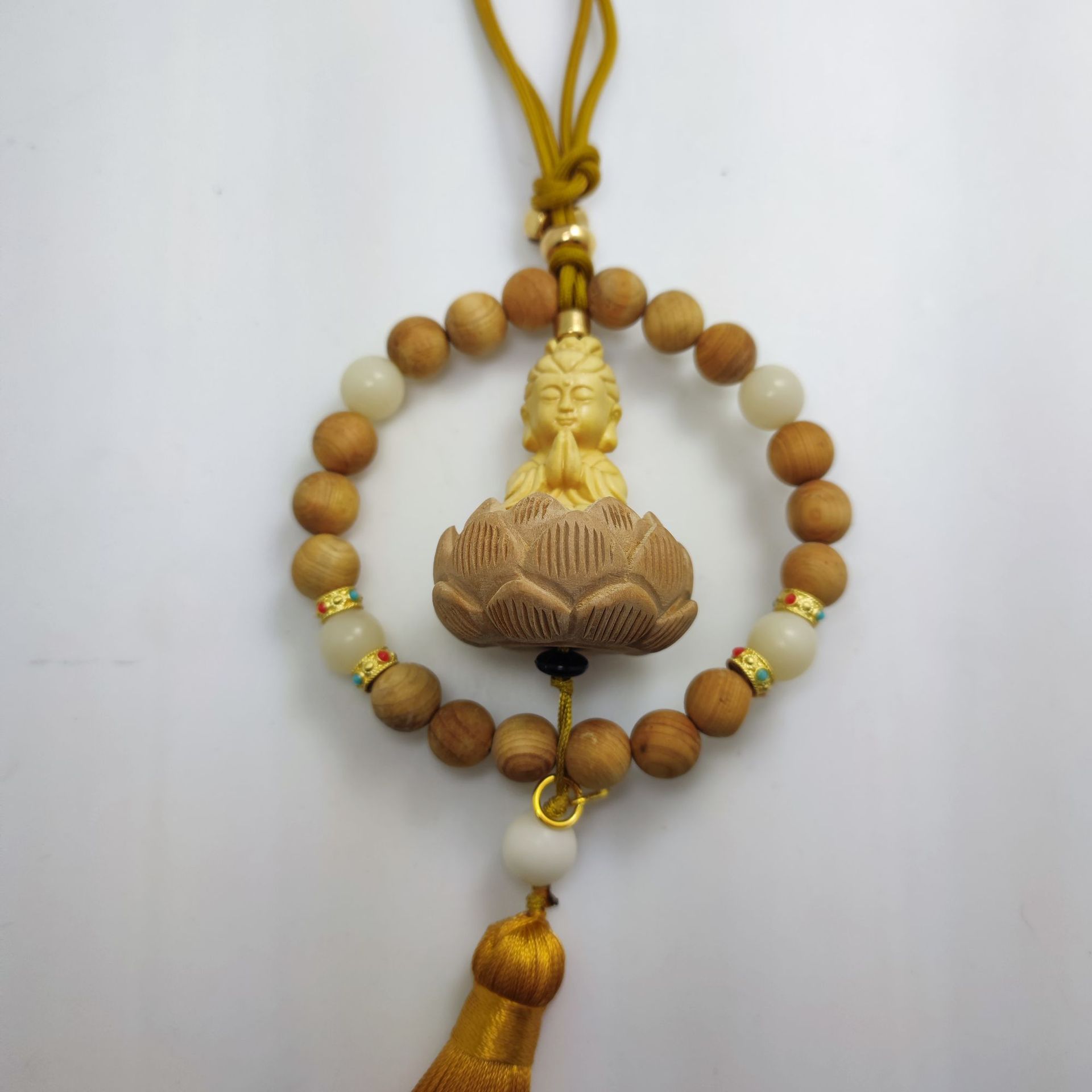 Car pendants, interior decorations, Lotus Buddha rearview mirror safety pendants, men's and women's styles, lotus and peach wood tassels, traditional Chinese style
