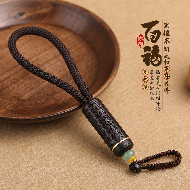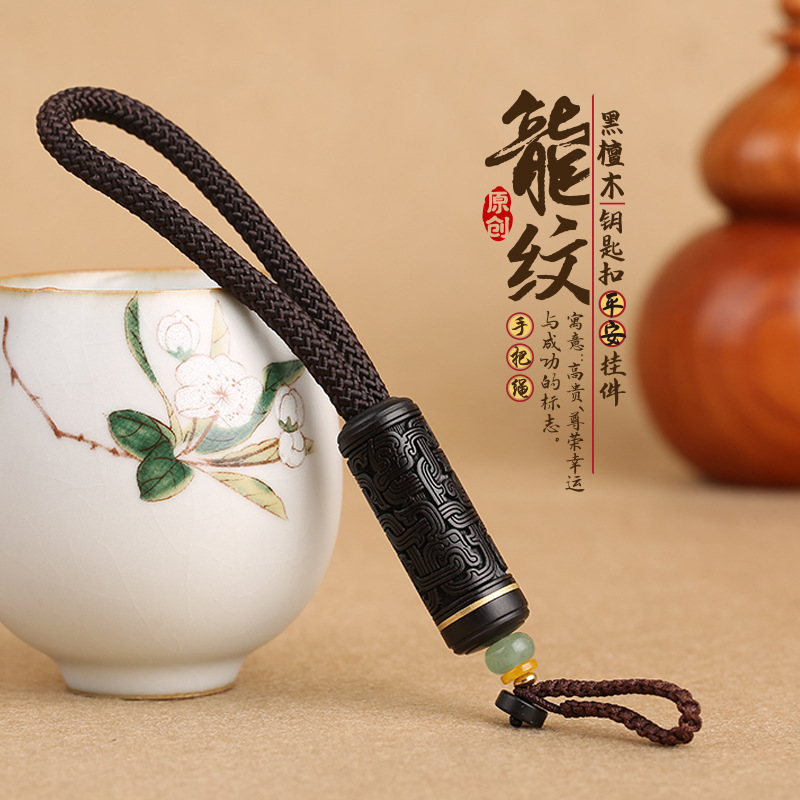 Car small-leaf red sandalwood key chain pendant, diamond hand bracelet, wood carving key pendant, natural ebony dragon pillar small pendant