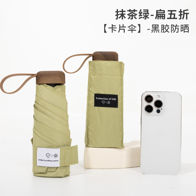 Carbon fiber ultra-light five-fold sun umbrella, compact and portable black rubber sun protection and UV-blocking umbrella, pocket umbrella for men and women
