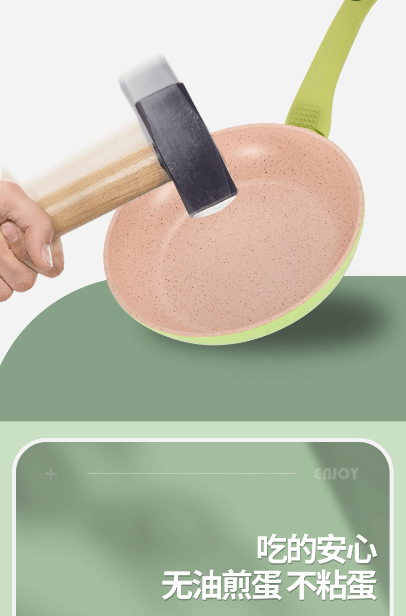 A dark green frying pan, 20cm tall