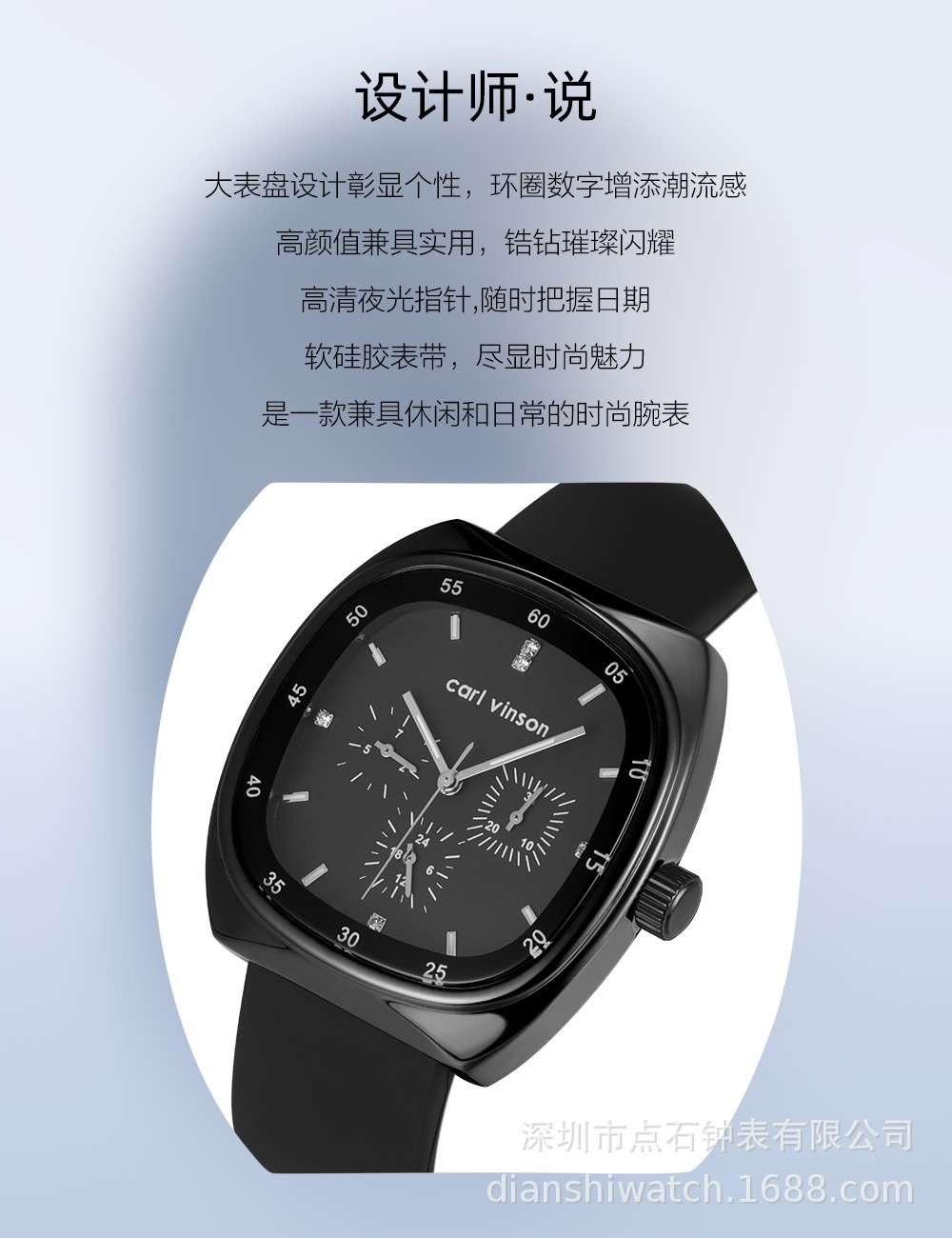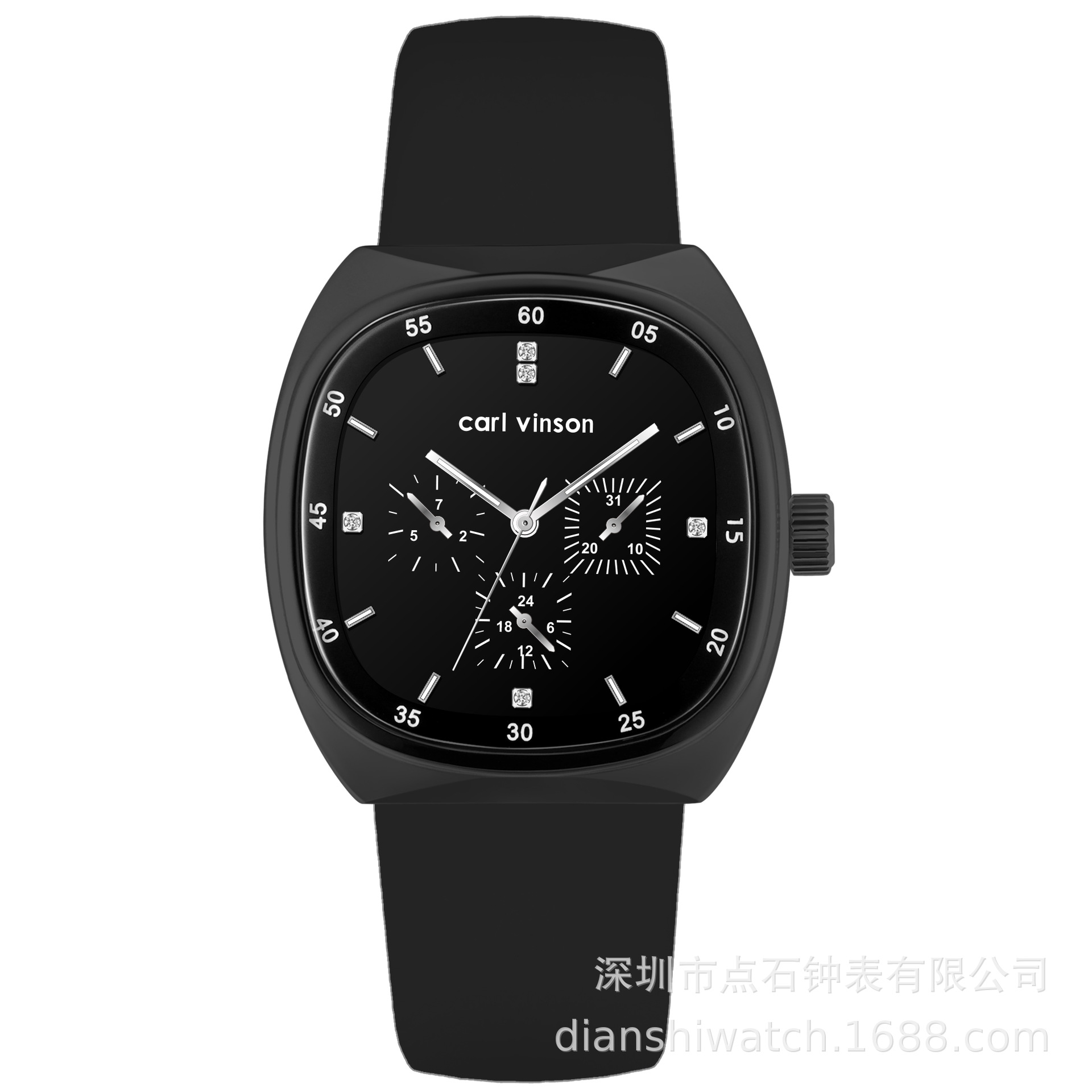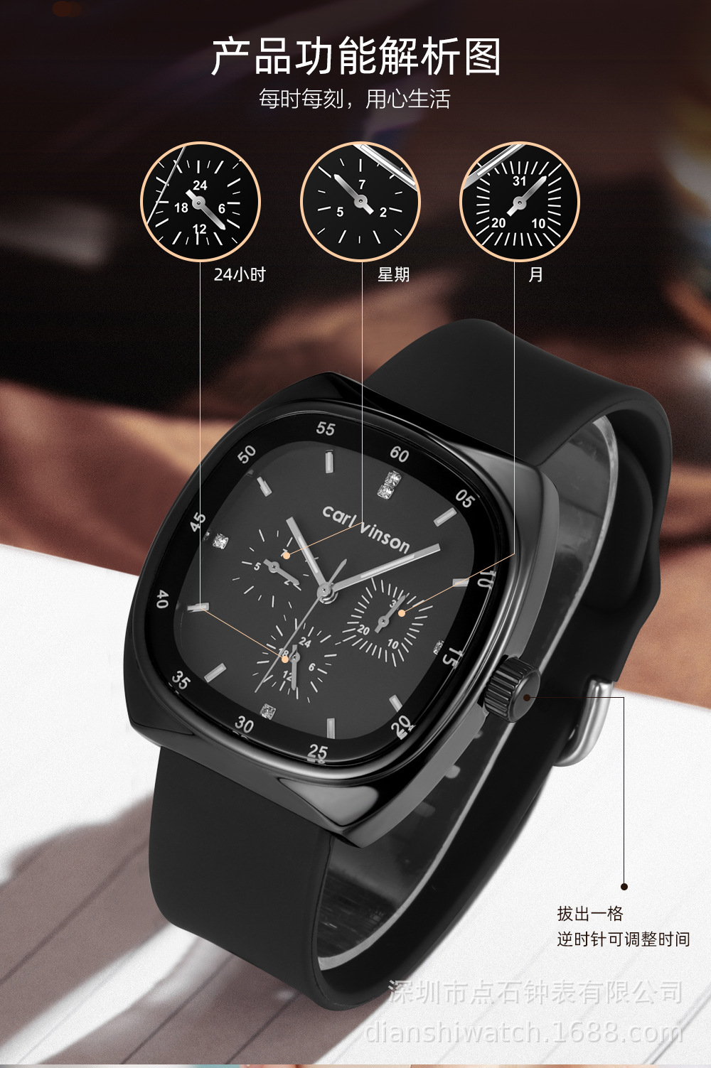 carl vinson casual multi-functional quartz men's watch, thin and waterproof silicone strap men's wristwatch month