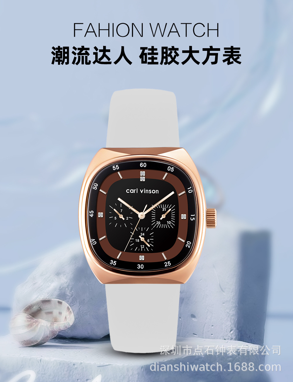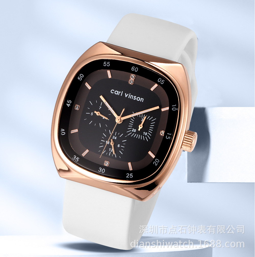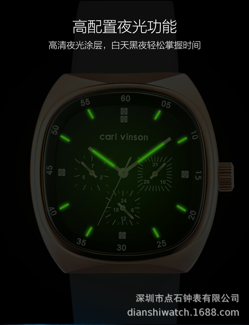 carl vinson casual multi-functional quartz men's watch, thin and waterproof silicone strap men's wristwatch month