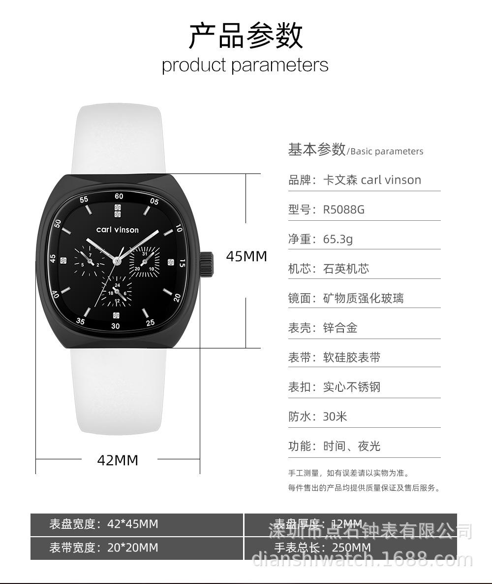 carl vinson Casual three-hand simple and individual men's alloy quartz waterproof wristwatch Cross-border new product