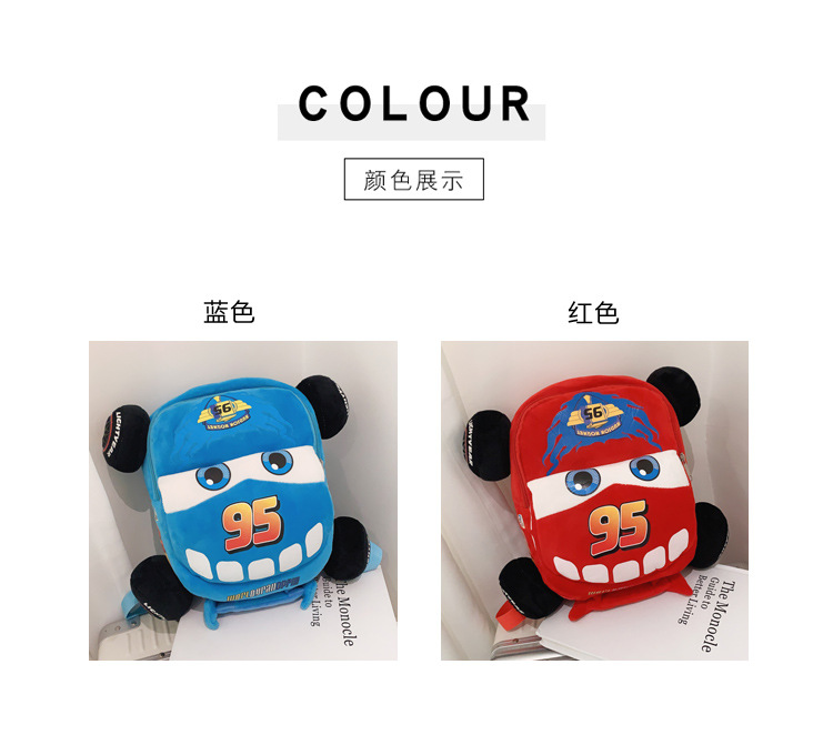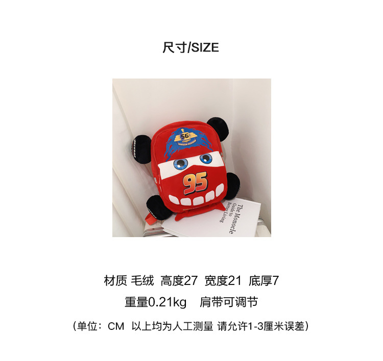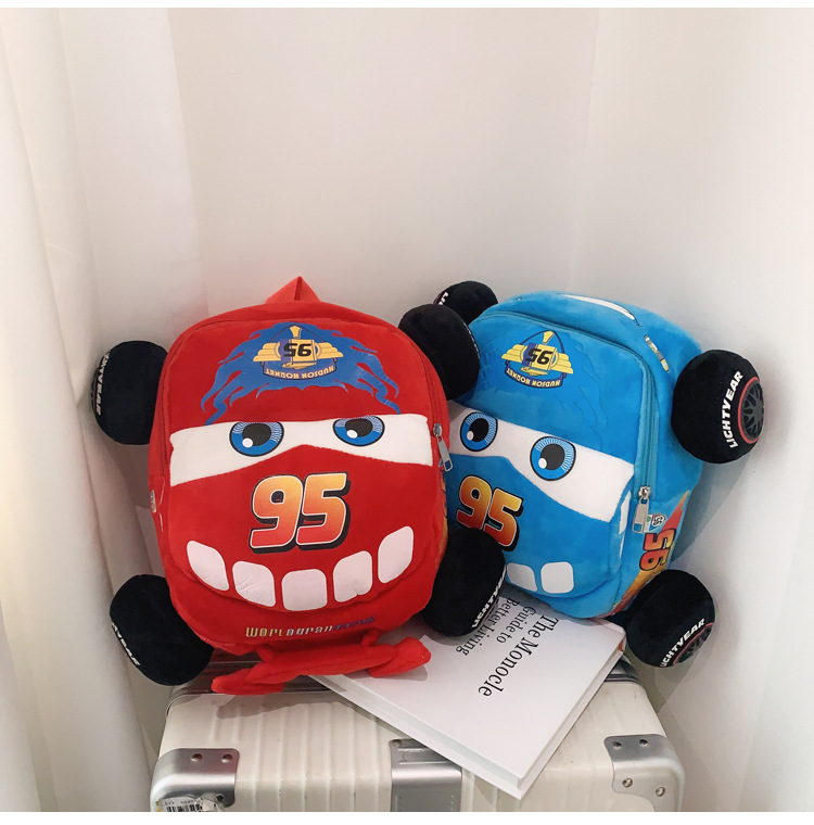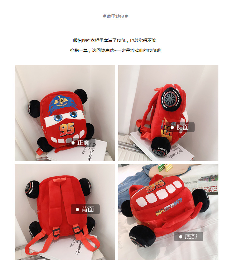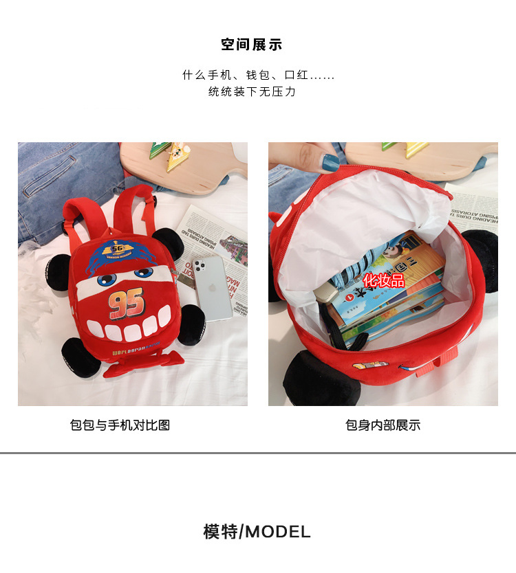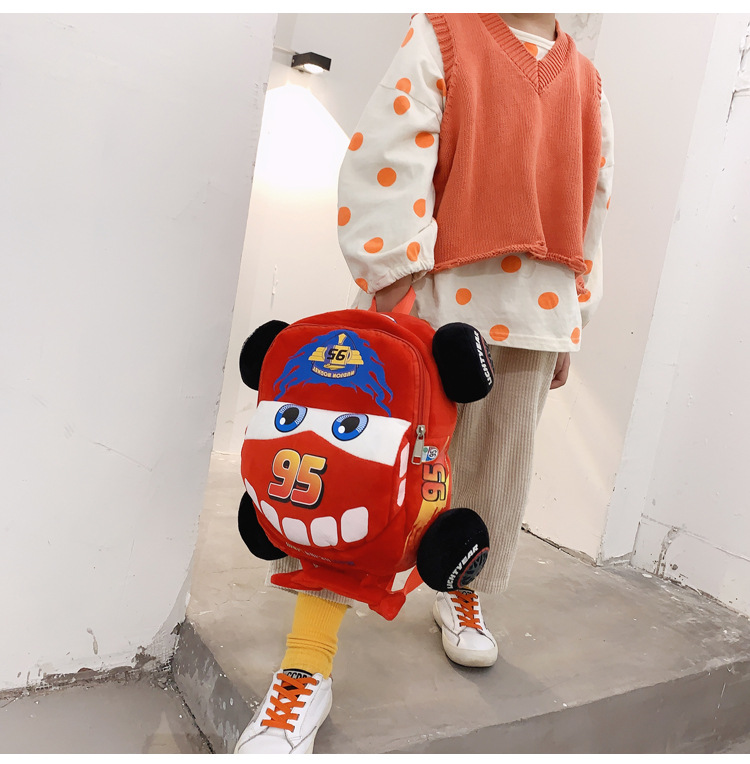 Cartoon 3D Car Adventure, Flash McQueen plush toys, kindergarten boys and girls, children's backpacks