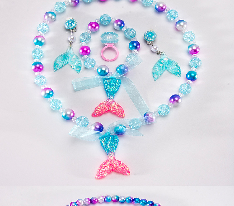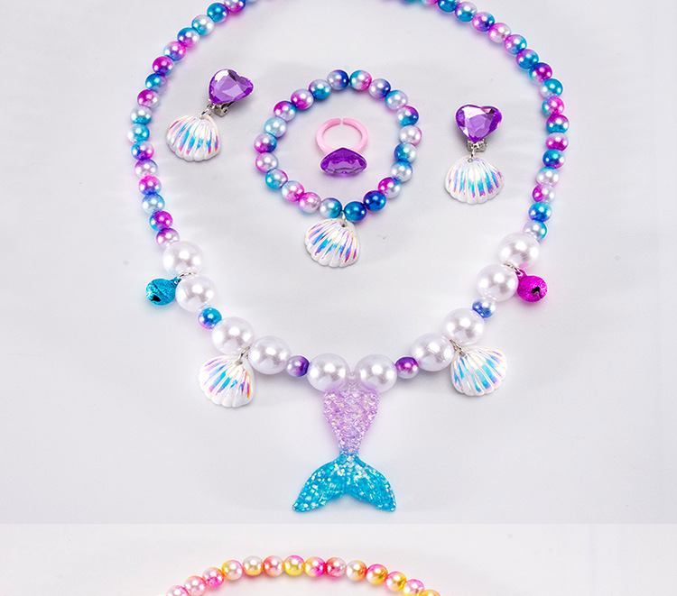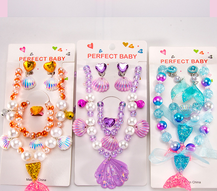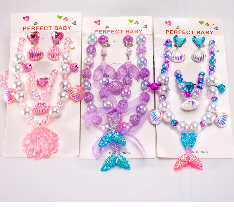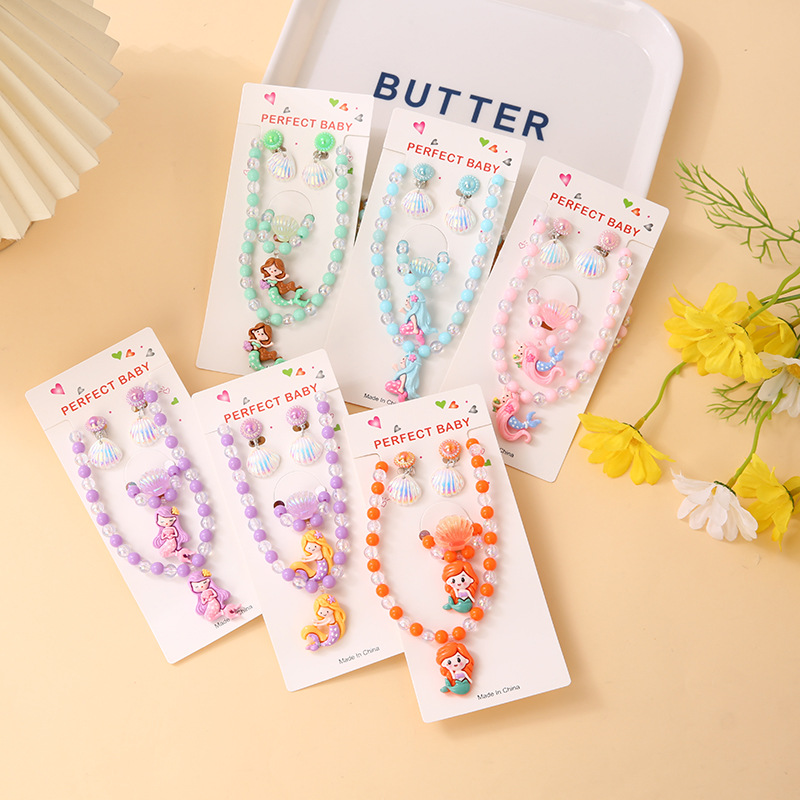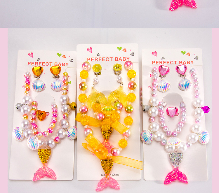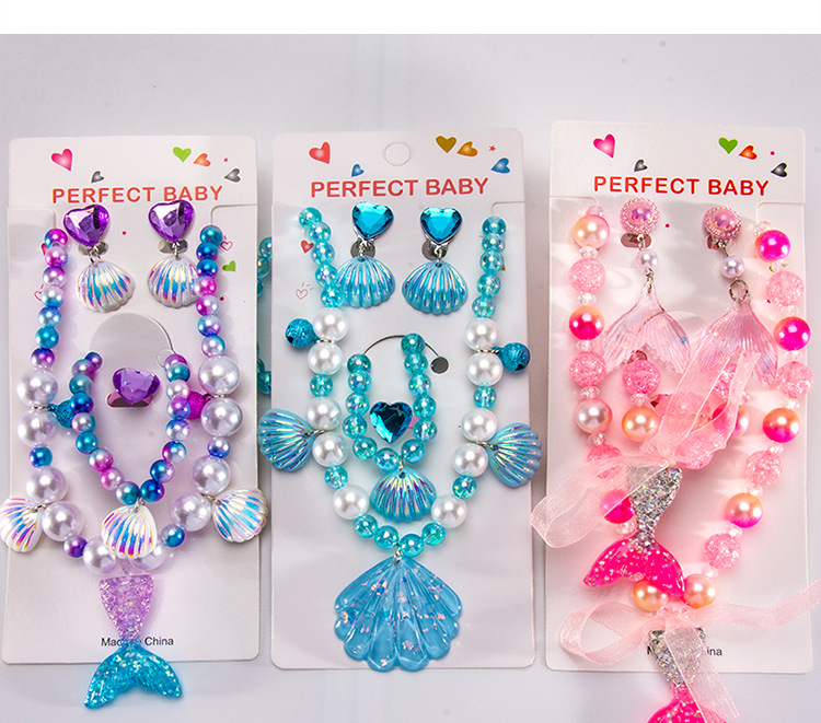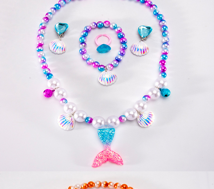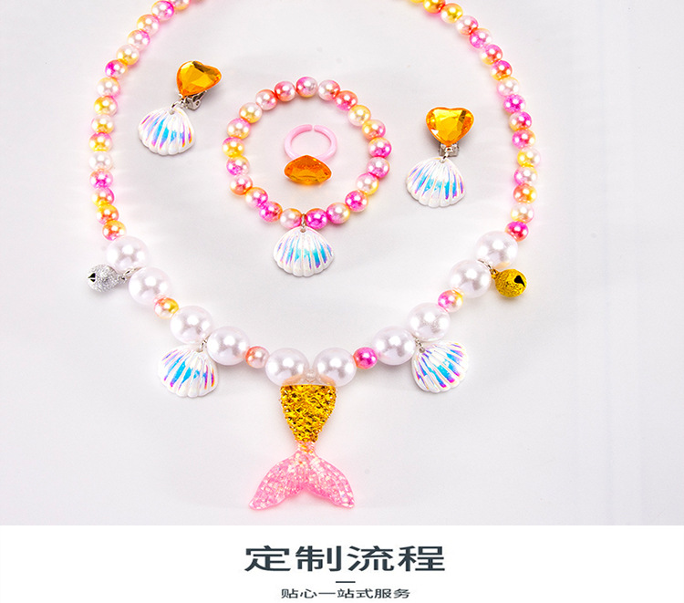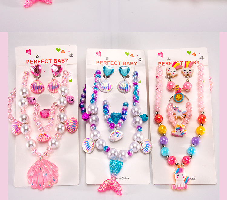 Cartoon children's accessories: necklace, bracelet, ear clip, ring, unicorn shell, fish tail, hair accessory, jewelry set