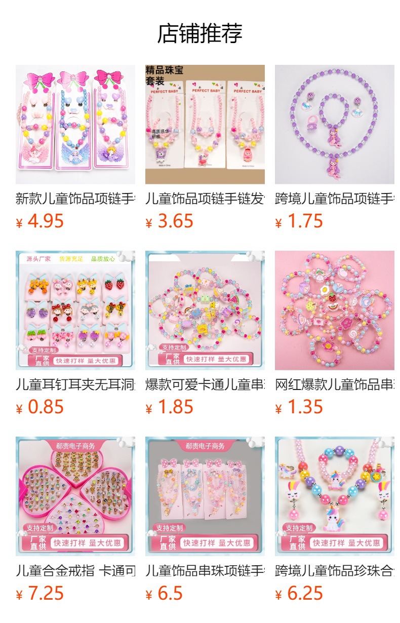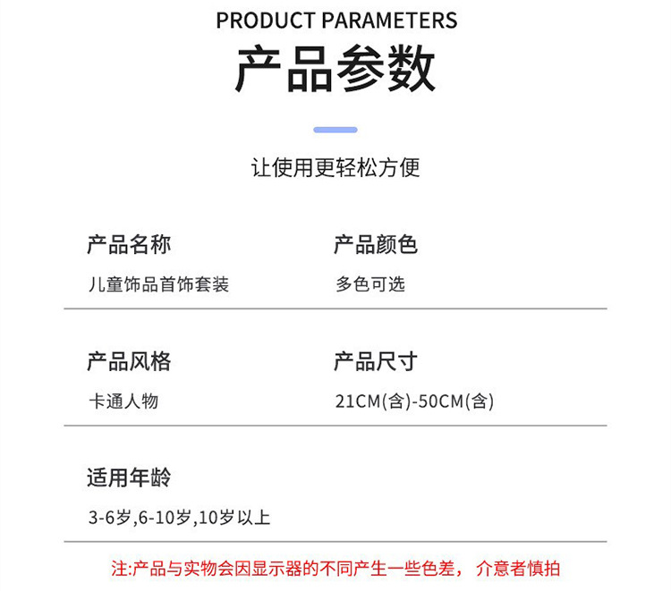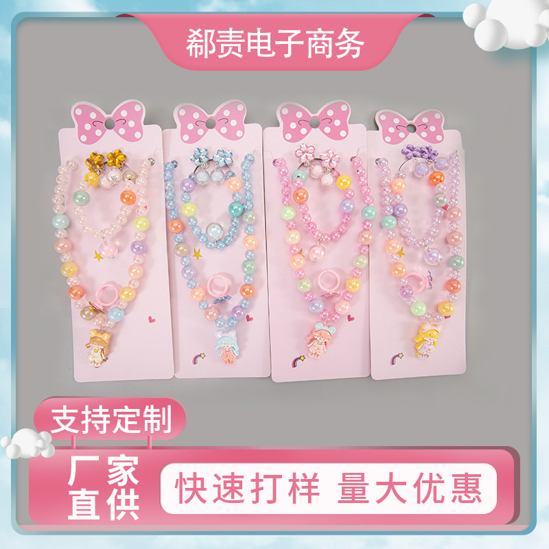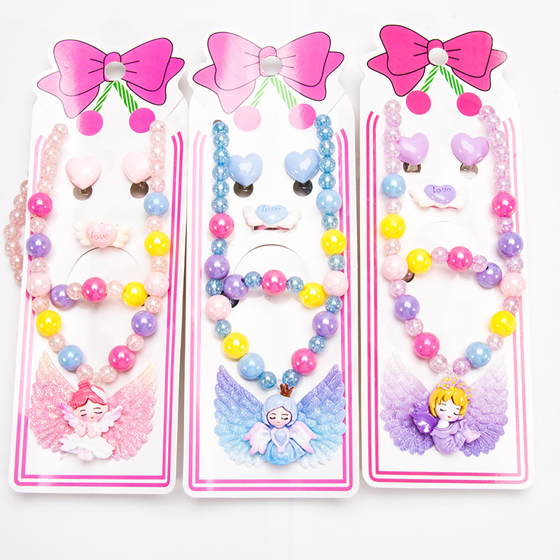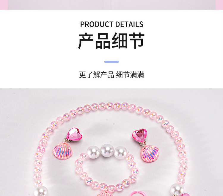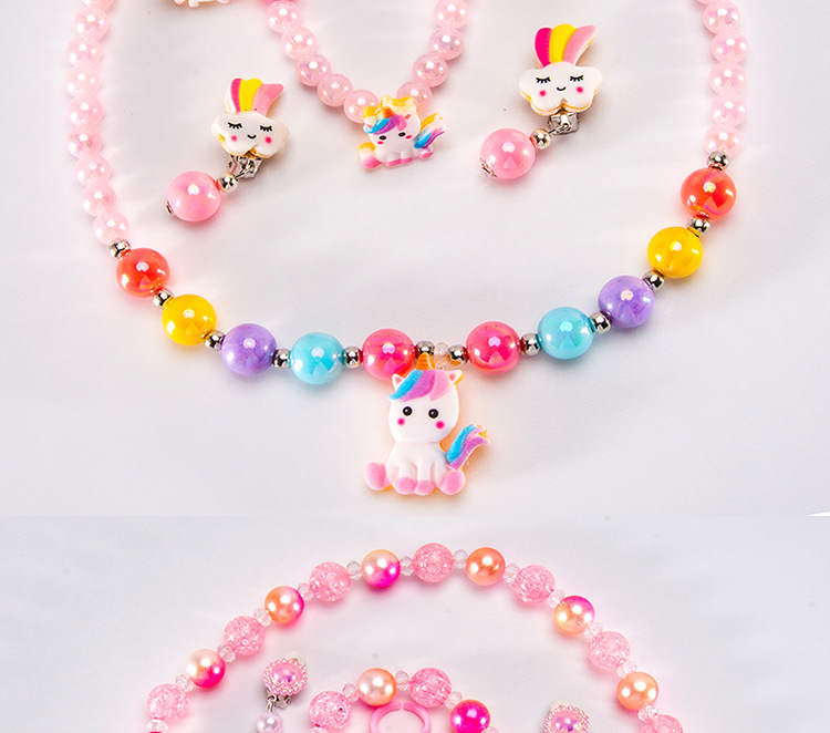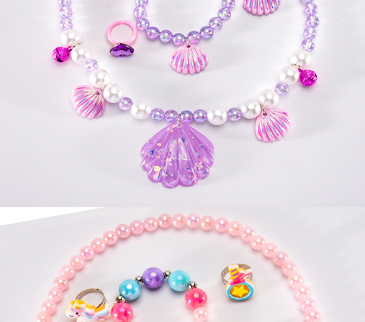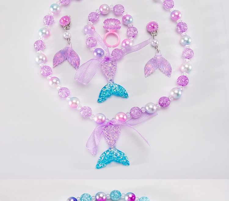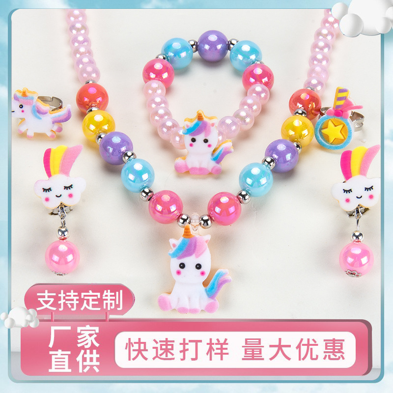 Cartoon children's accessories: necklace, bracelet, ear clip, ring, unicorn shell, fish tail, hair accessory, jewelry set