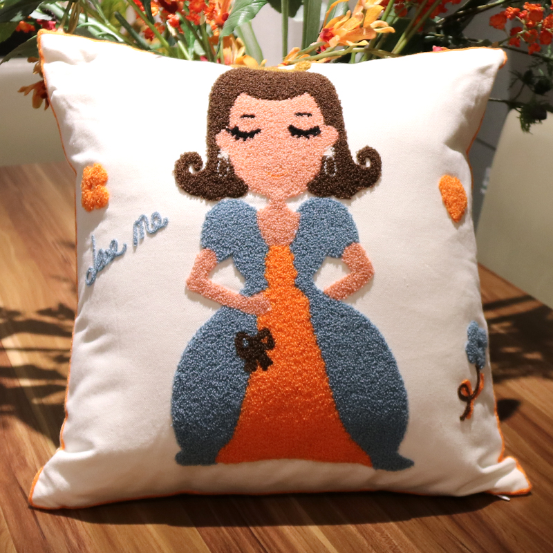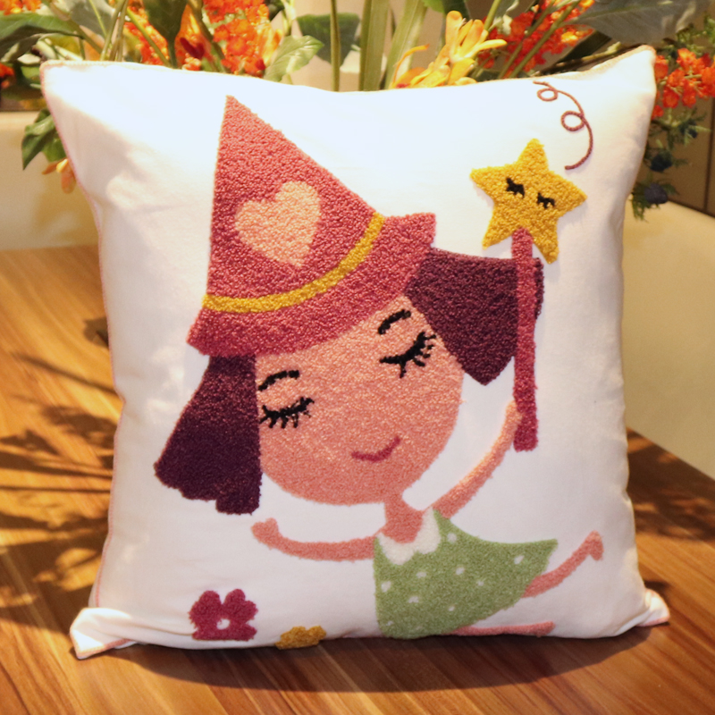 ';Cartoon children's room, embroidered flower cushions, pure cotton cushions, handcrafted cushions, simple and modern sofa, car cushions, nap time