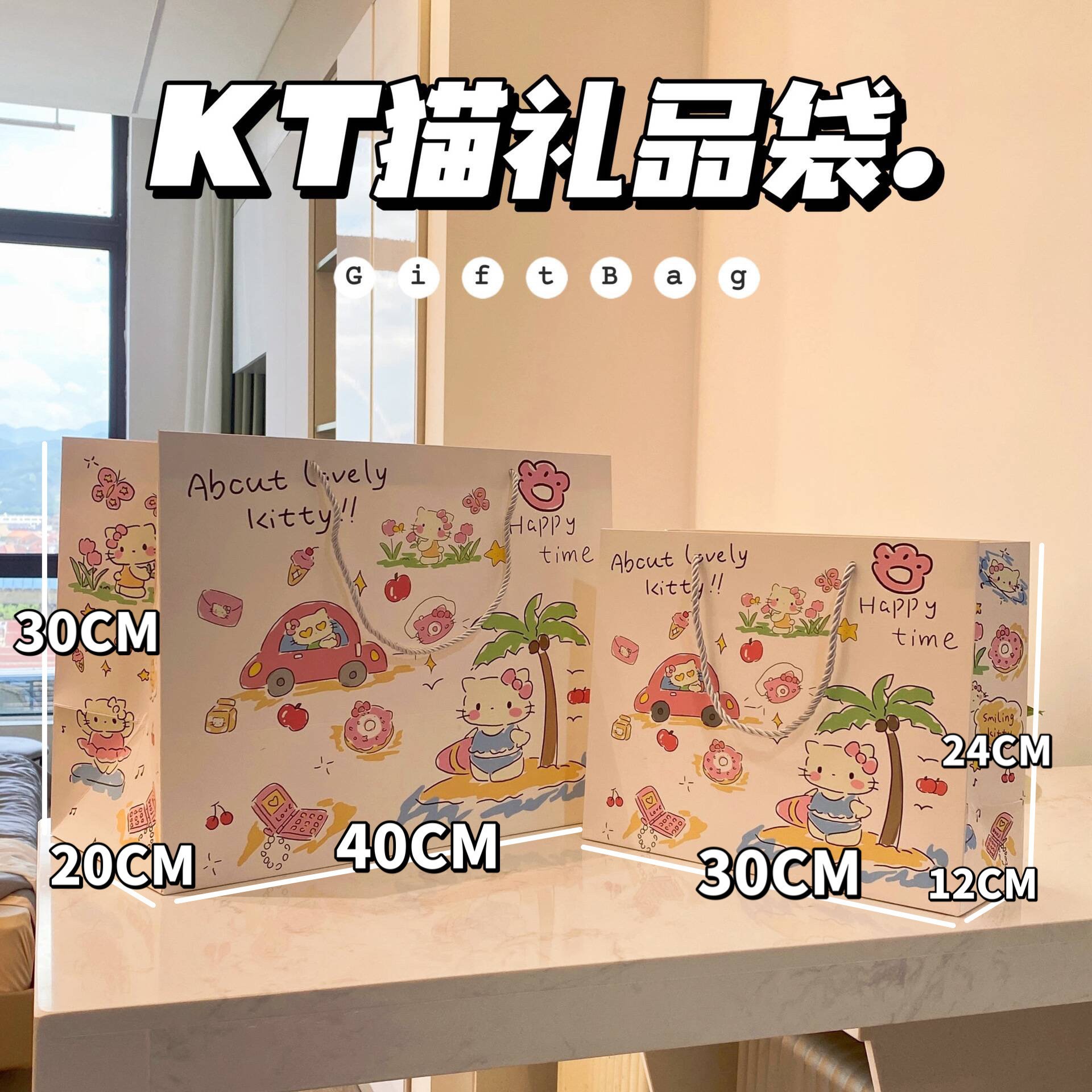 Cartoon cowboy butter bear gift bag, thickened large-capacity kraft paper storage bag, essential gift handbag