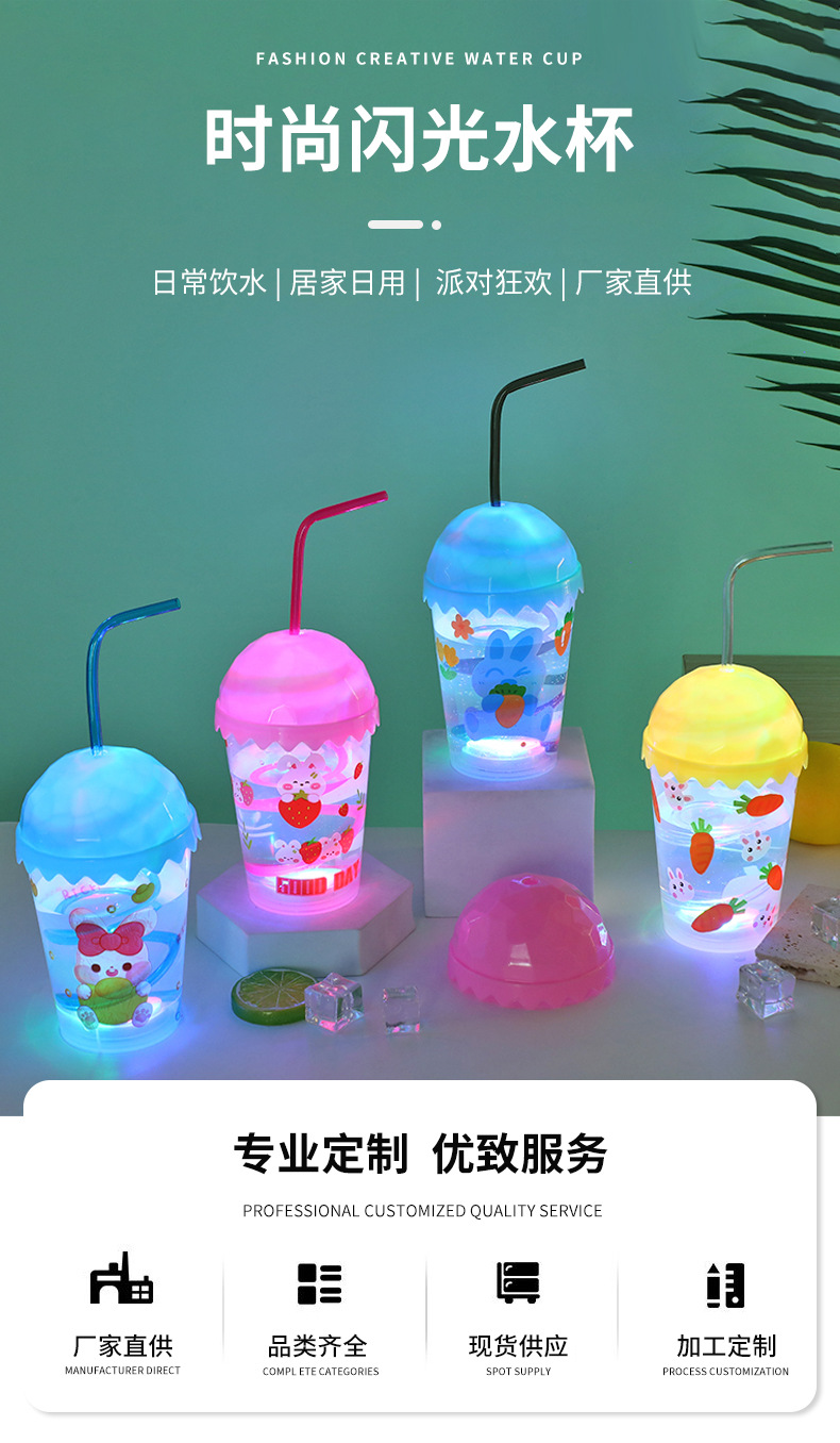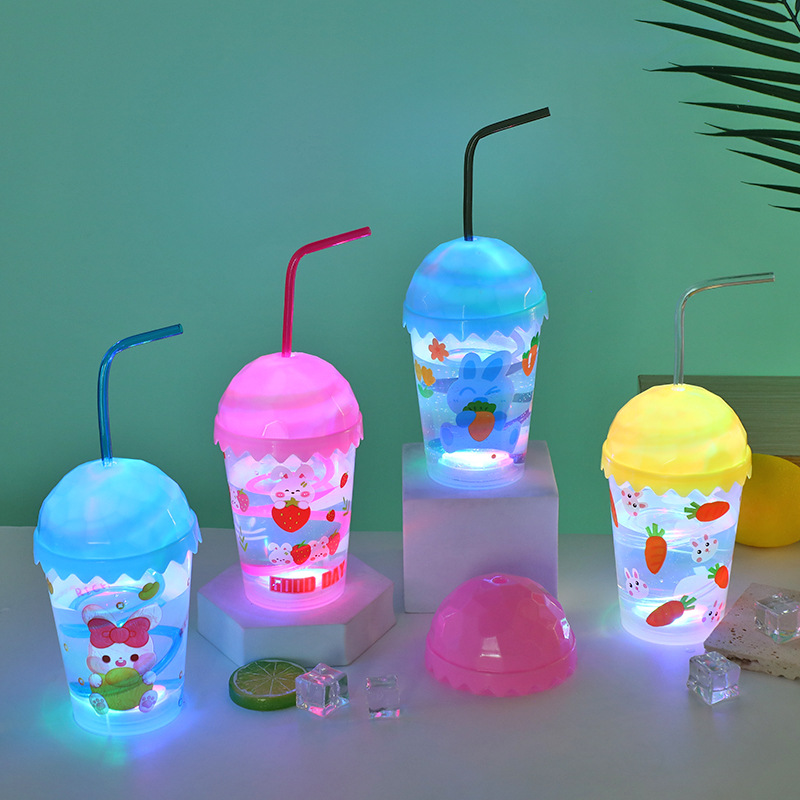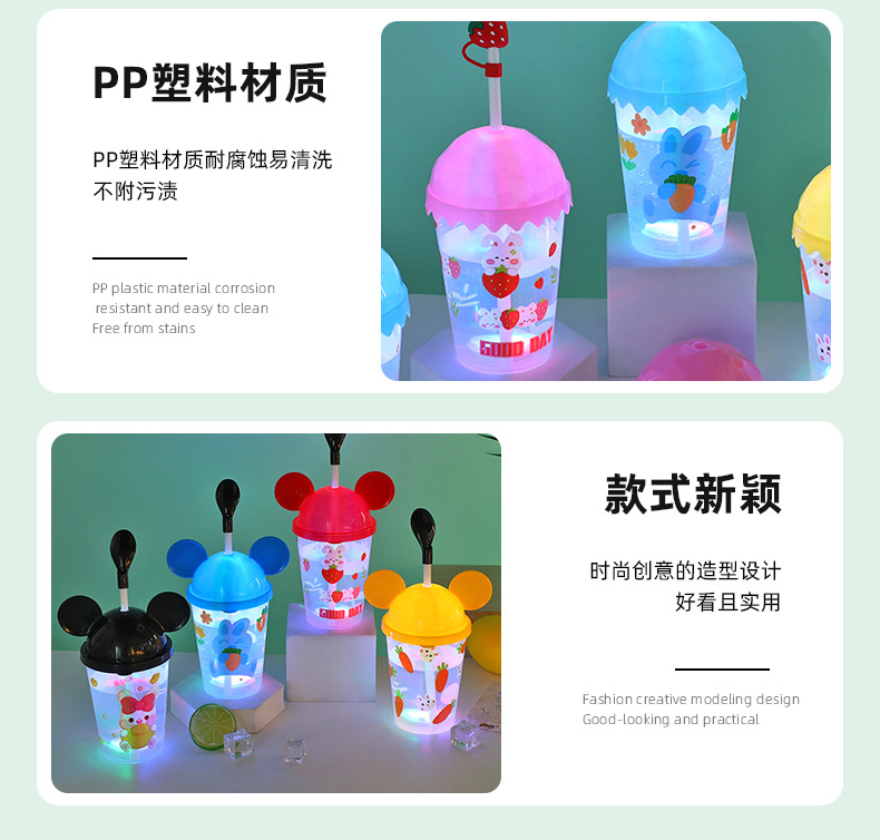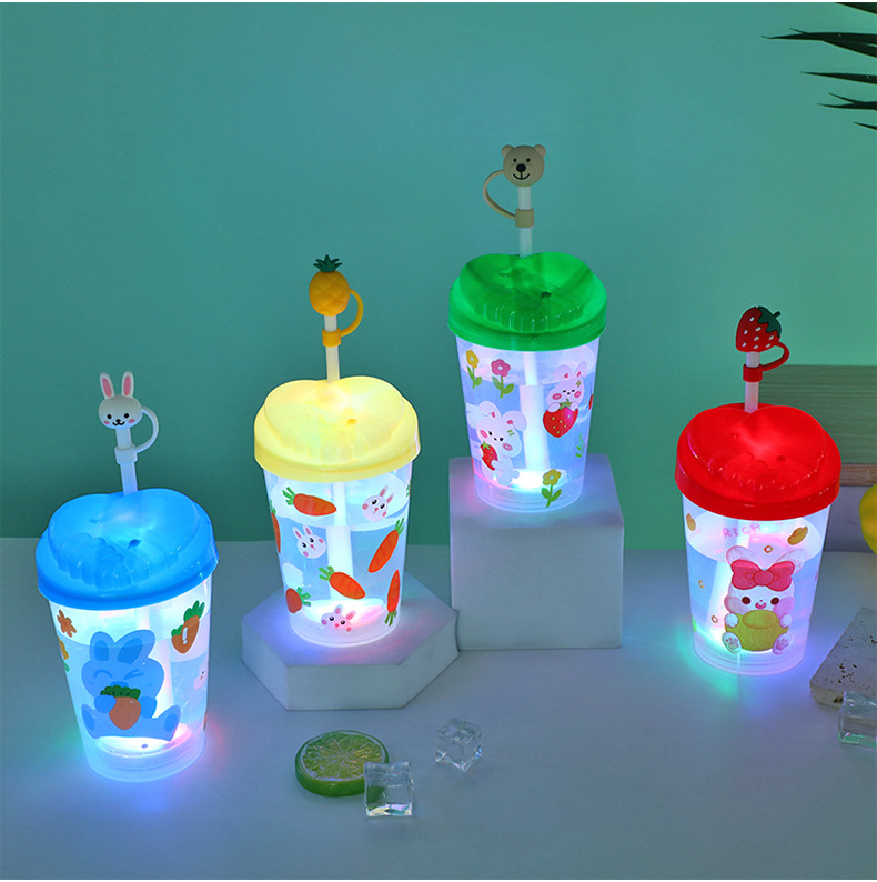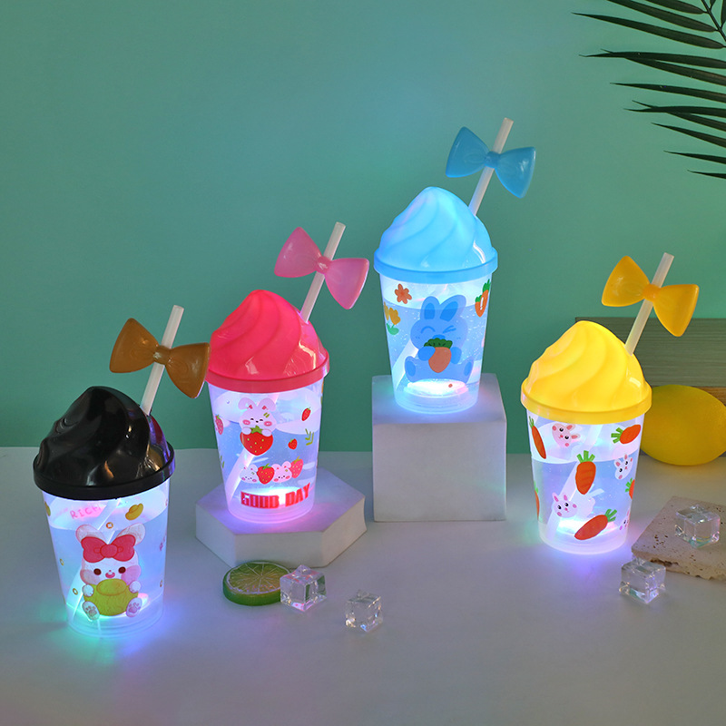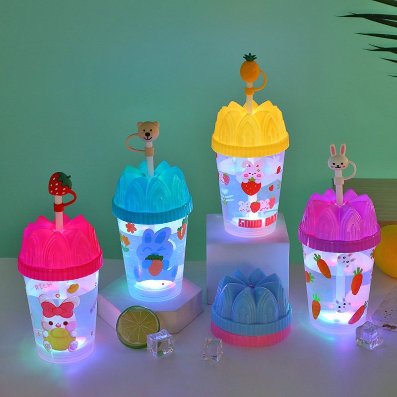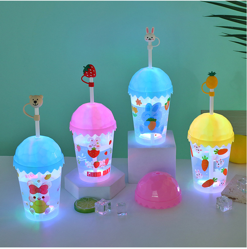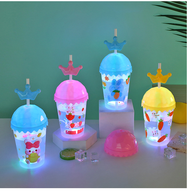 Cartoon cute baby straw cup, luminous children's drinking cup, pp straw, high appearance level water cup, student plastic cup