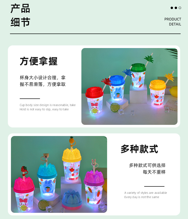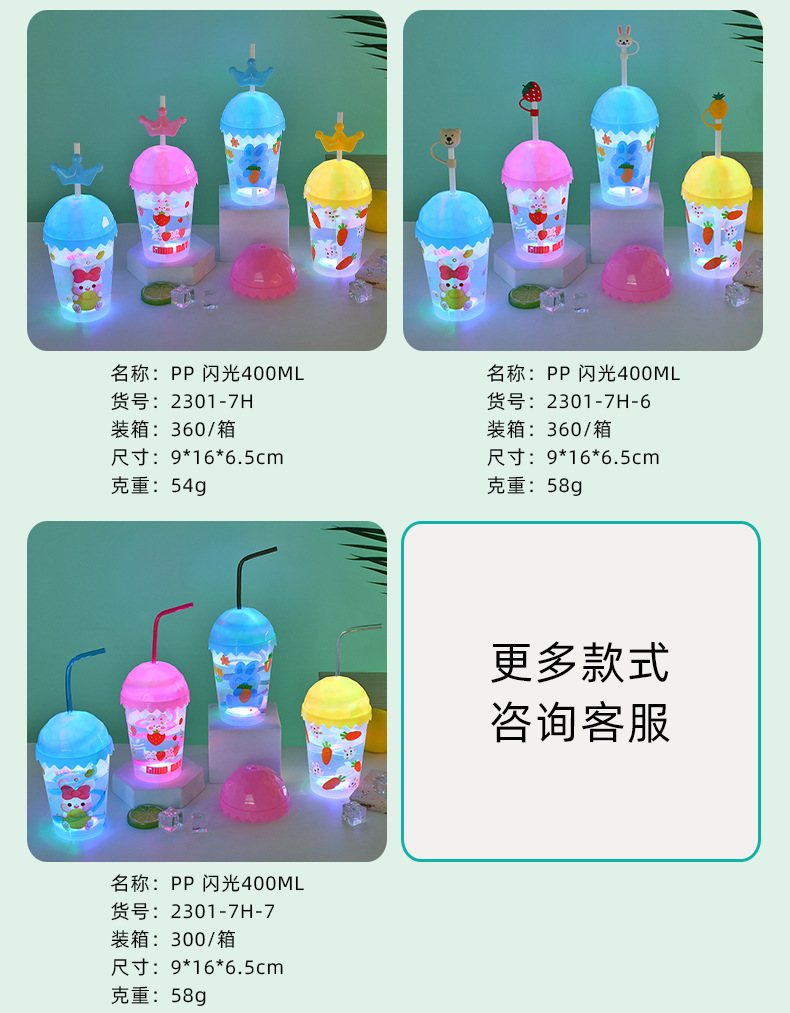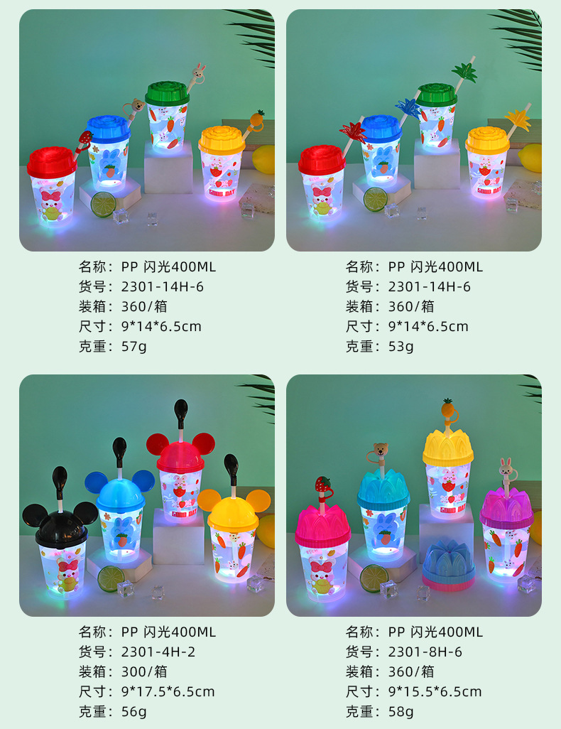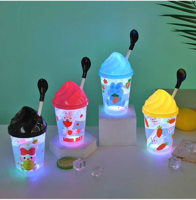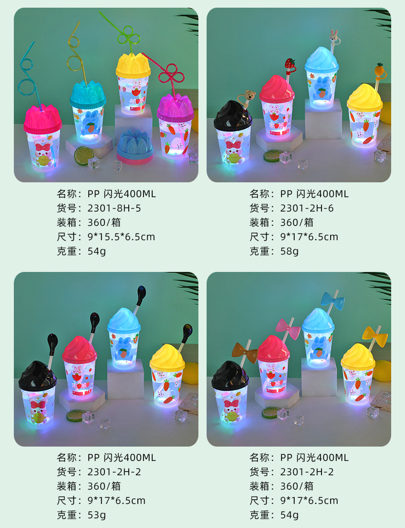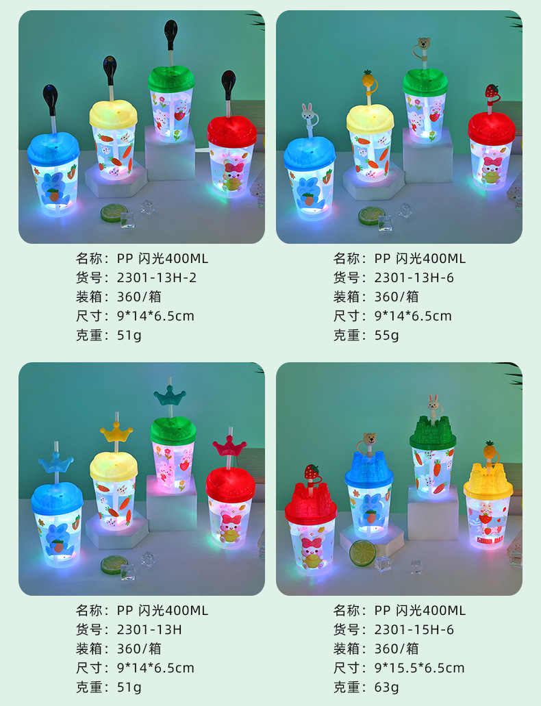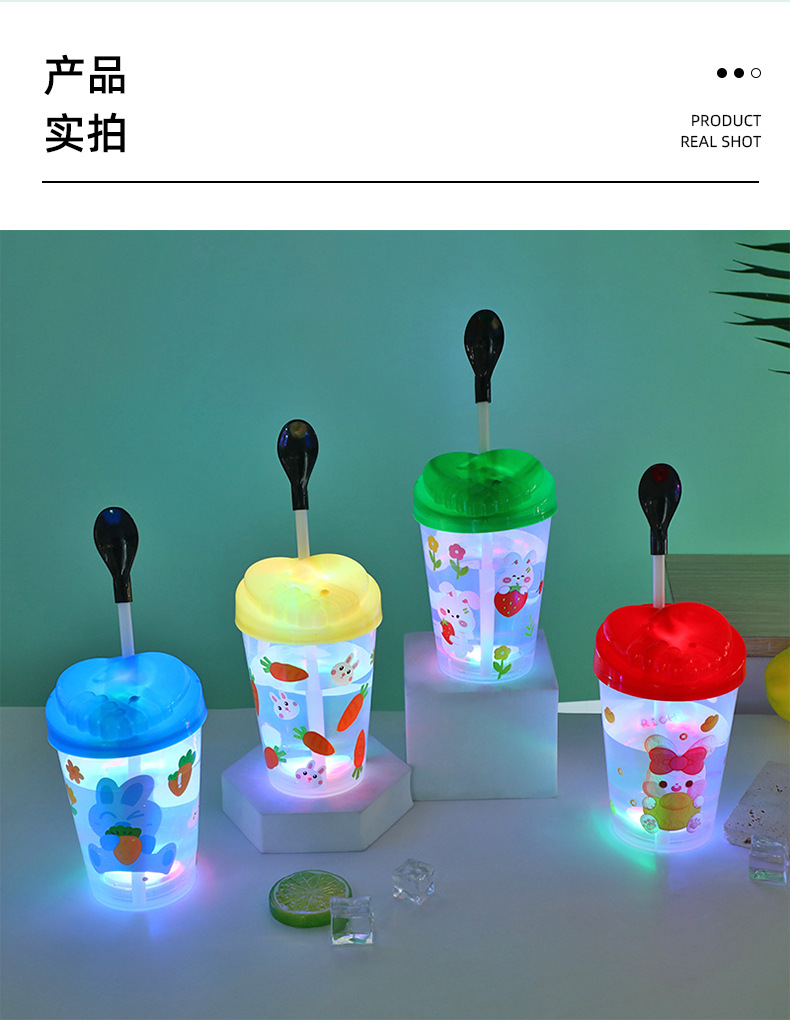 Cartoon cute baby straw cup, luminous children's drinking cup, pp straw, high appearance level water cup, student plastic cup