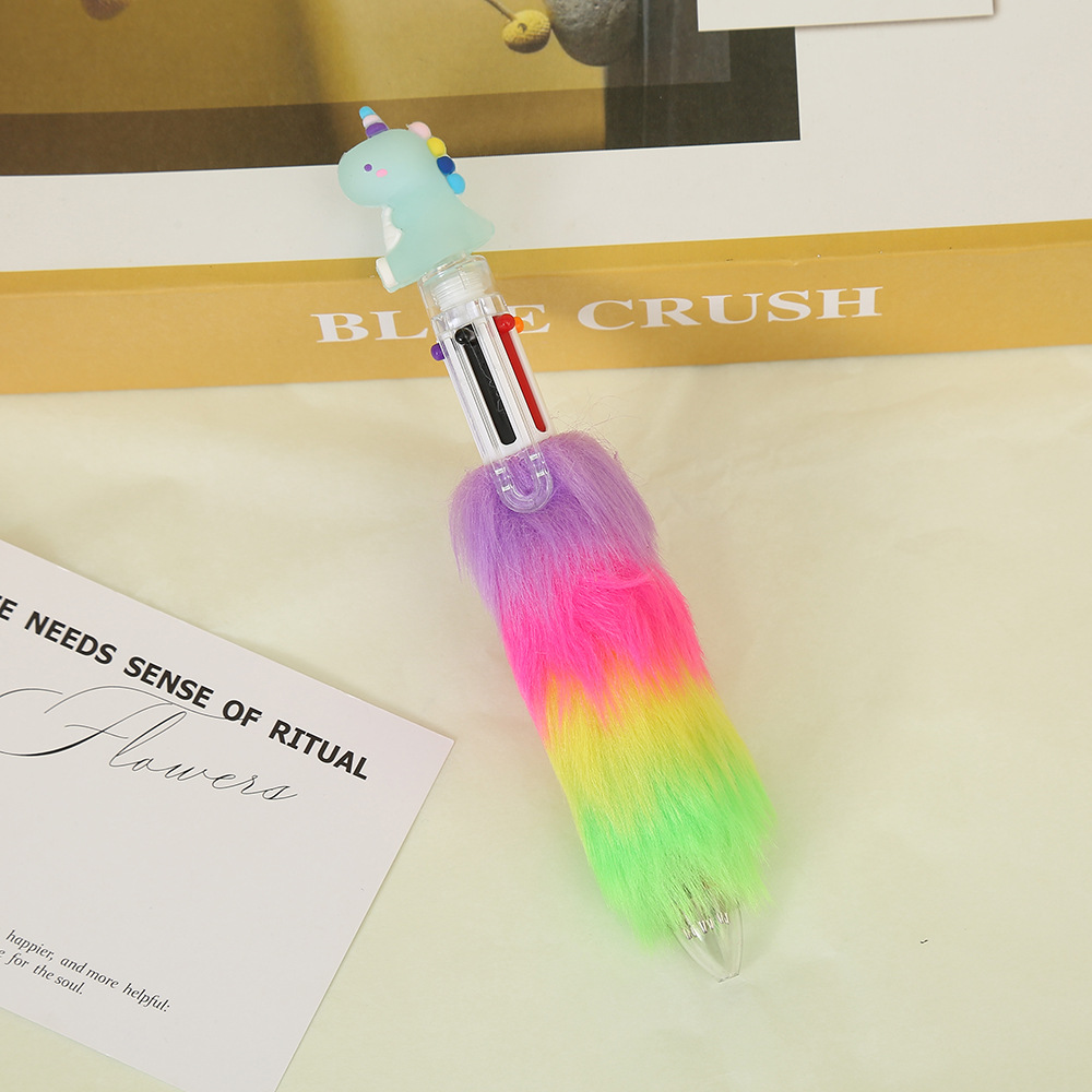 Cartoon cute dinosaur plush notebook pen, multi-color creative advertising gift pen, Korean version high appearance level ballpoint pen wholesale ballpoint pen