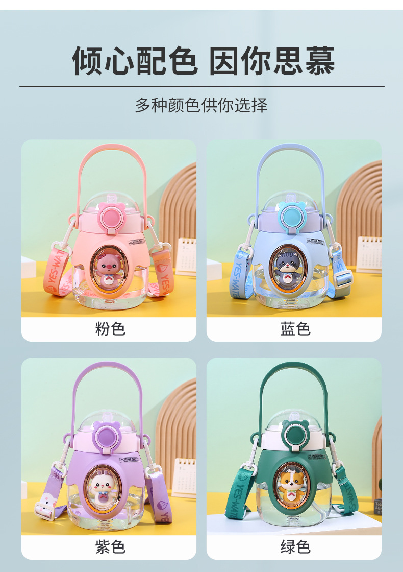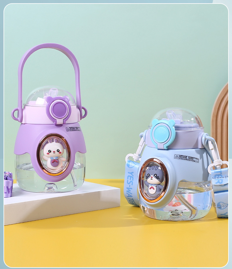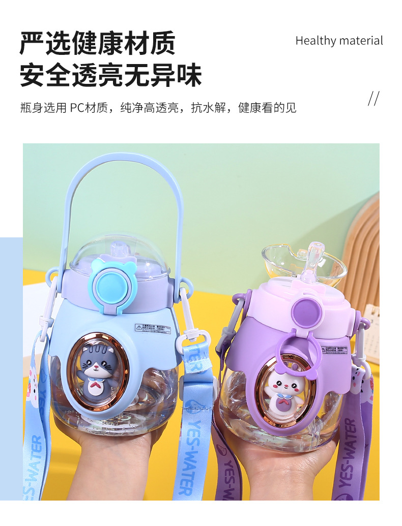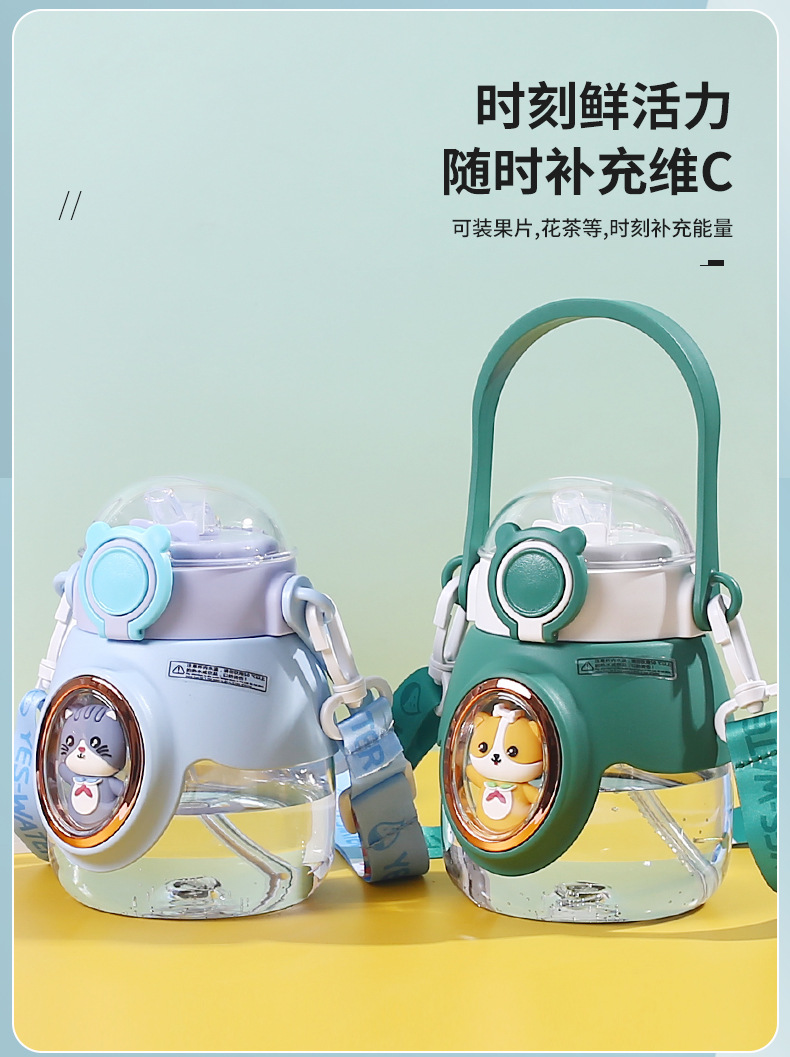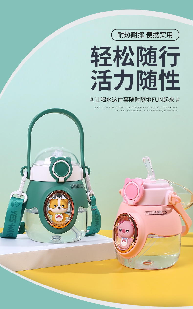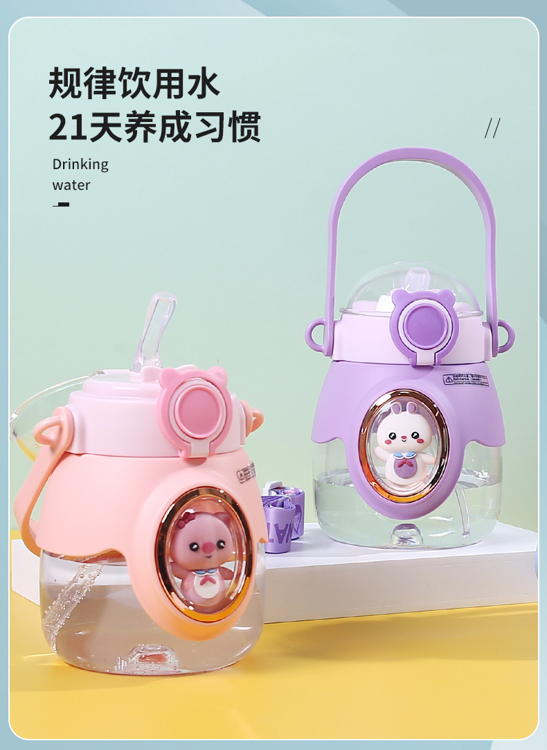 Cartoon dolls, baby straws, water cups, large-capacity portable, plastic cups for kindergarten students, children's sports water bottles