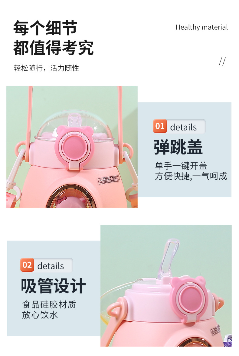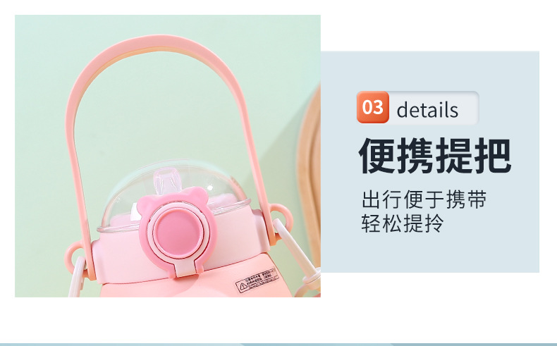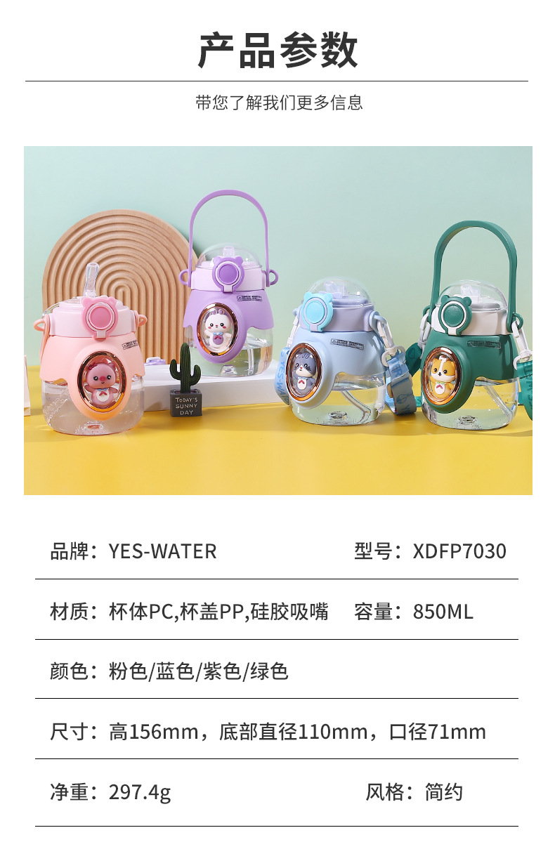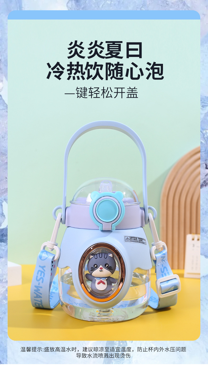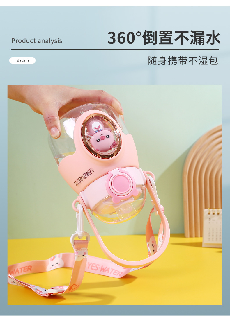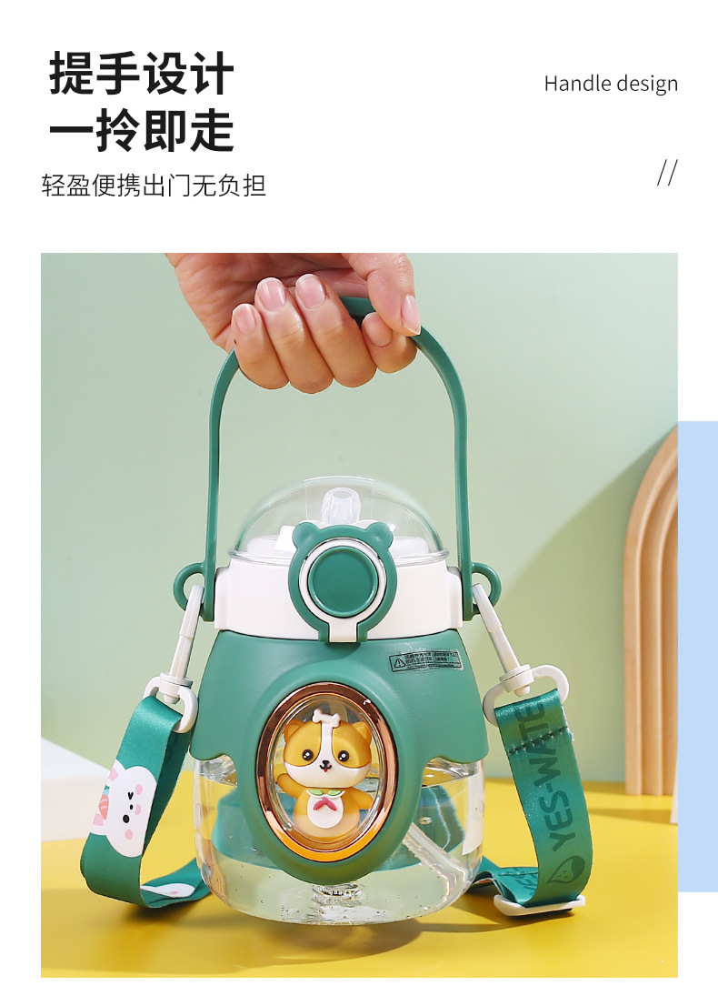 Cartoon dolls, baby straws, water cups, large-capacity portable, plastic cups for kindergarten students, children's sports water bottles