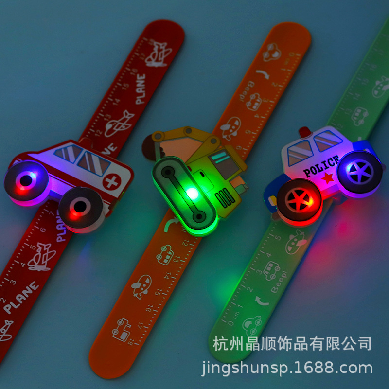 Cartoon flashing car ring, rotating bracelet, illuminated children's ring, kindergarten baby toys and gifts