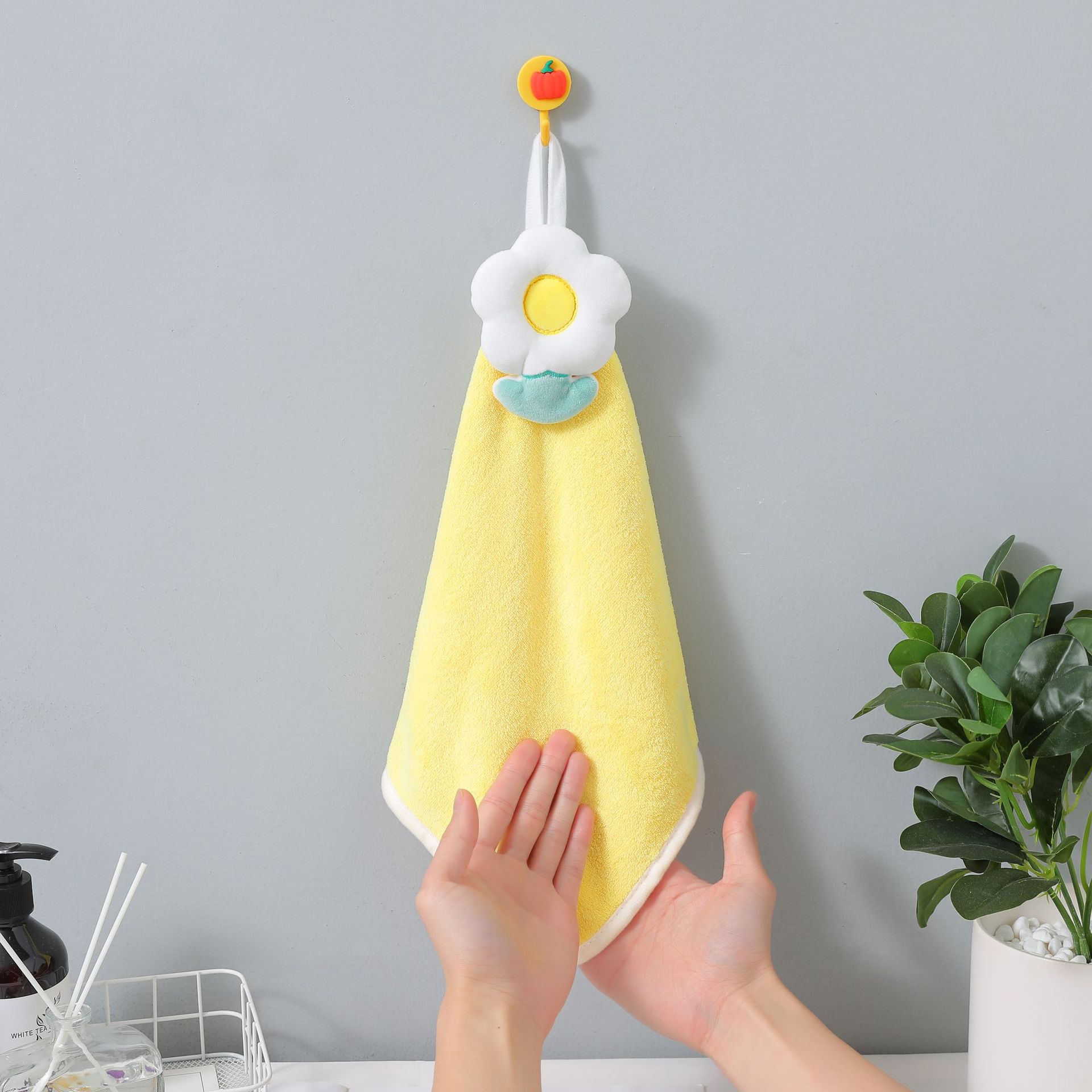 Cartoon flower hanging hand towels, coral fleece absorbent towels, home bathroom hand towels, cartoon hanging towels, rags
