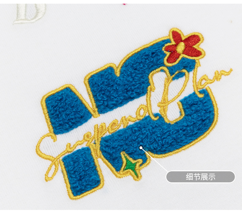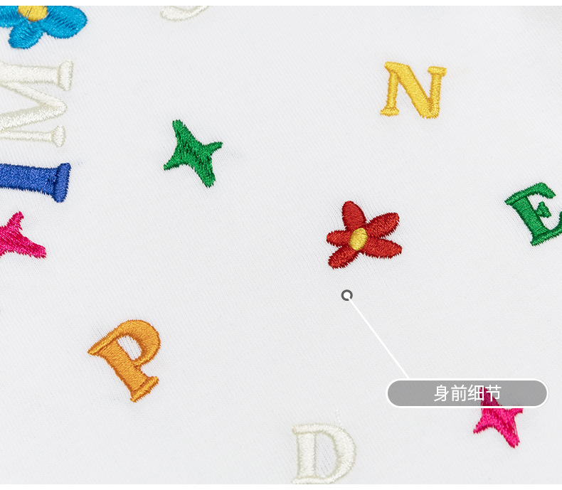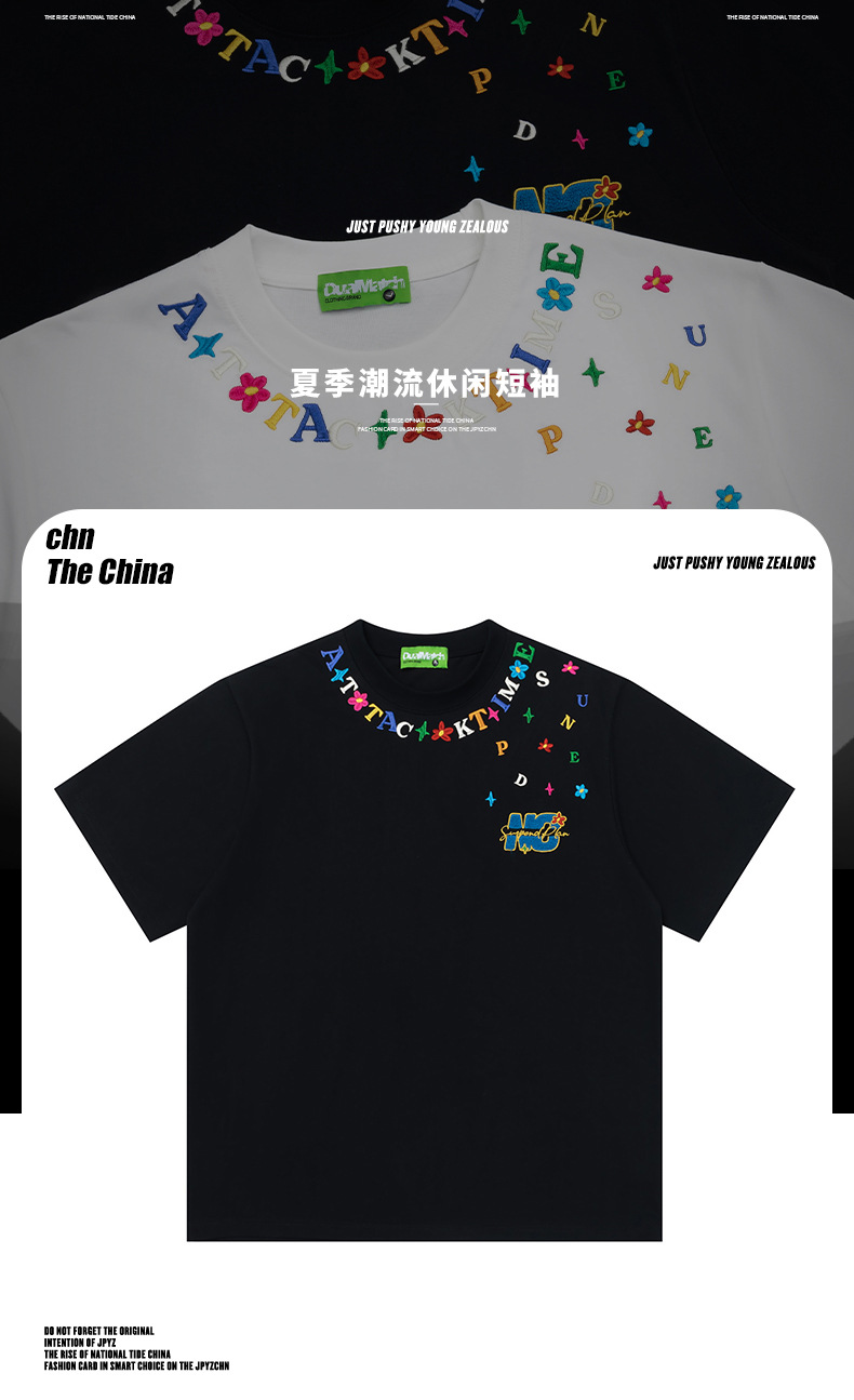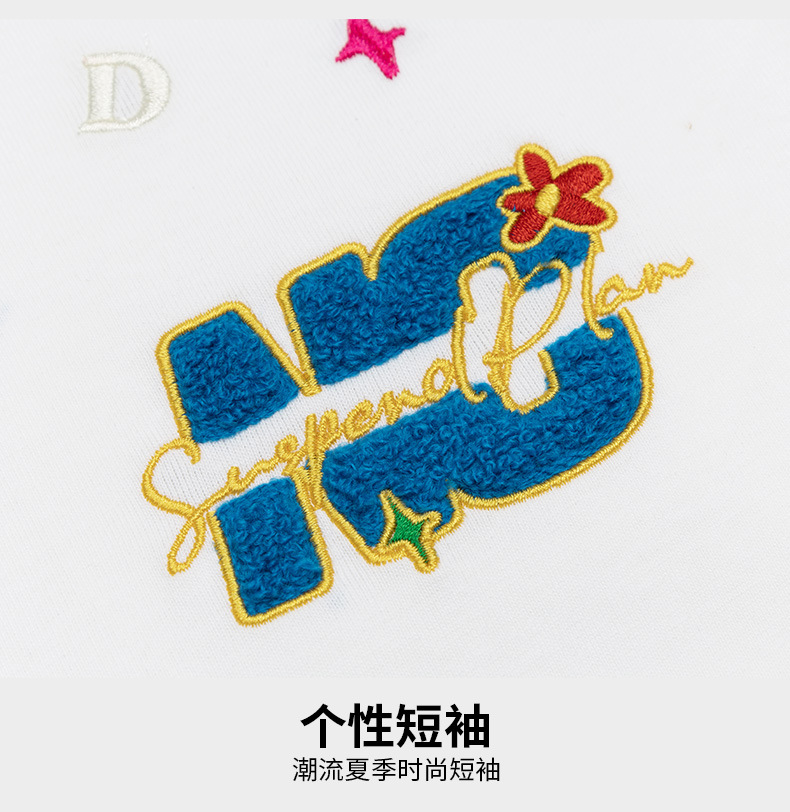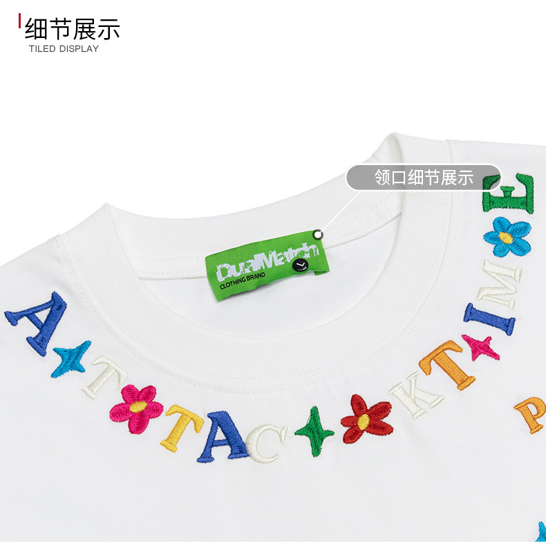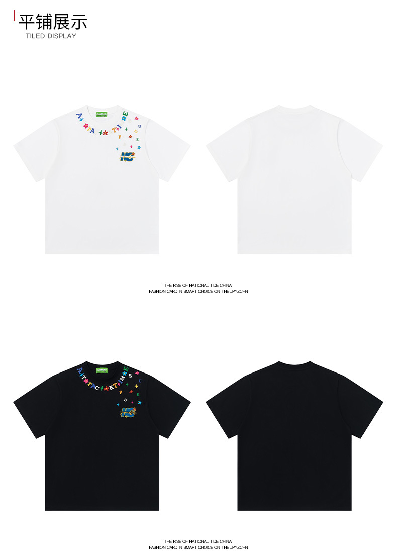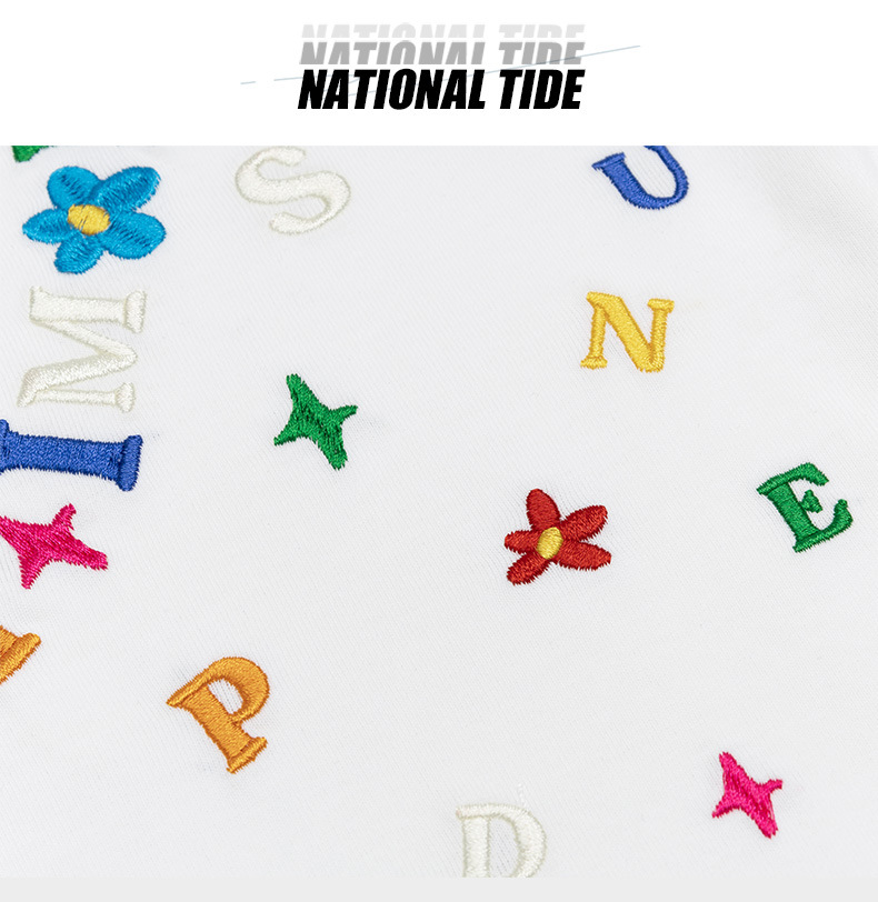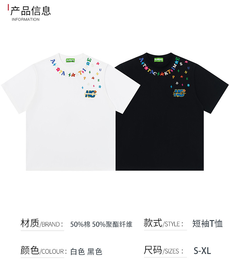 Cartoon letter, niche embroidered short-sleeved T-shirt, a trendy brand, casual, loose and versatile couple's top, new summer style