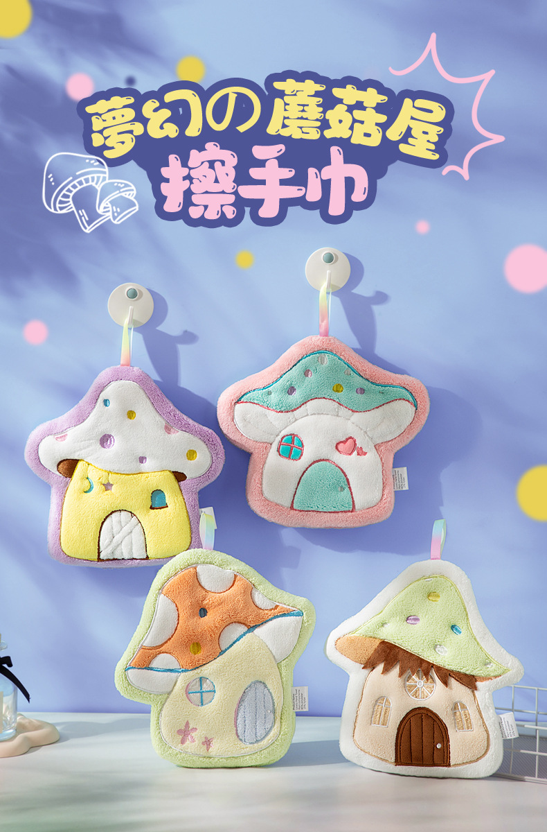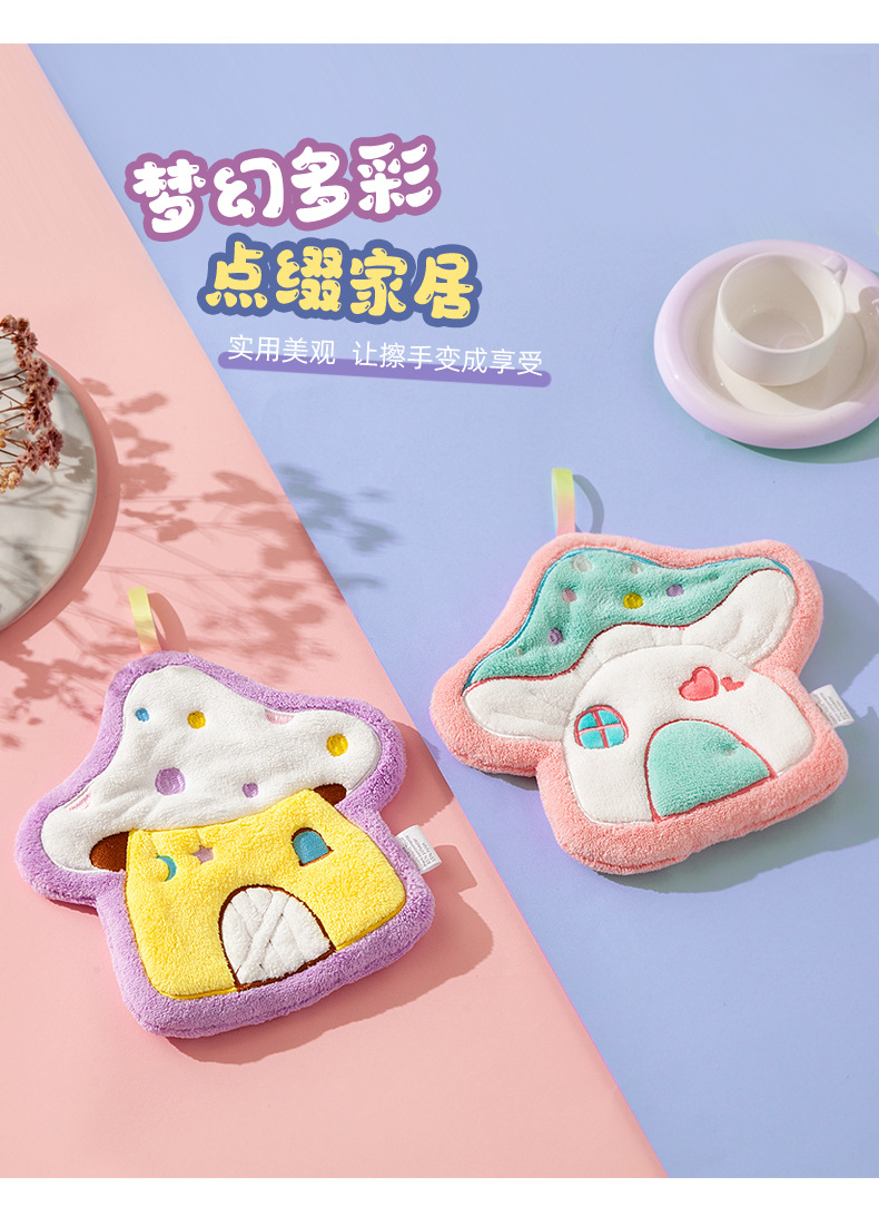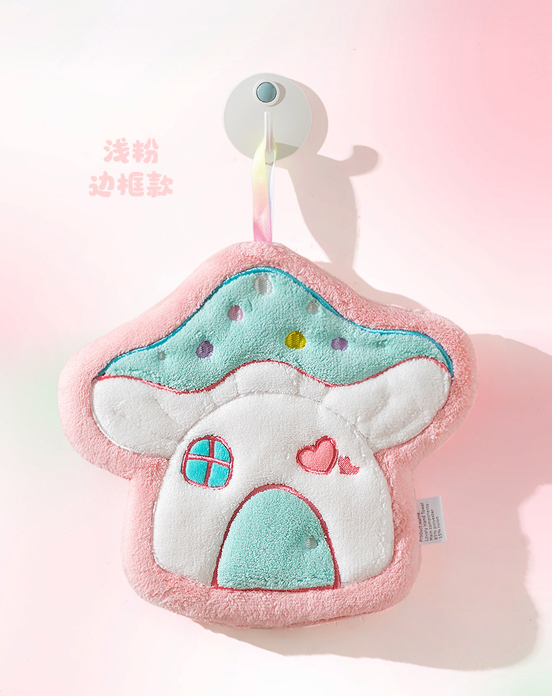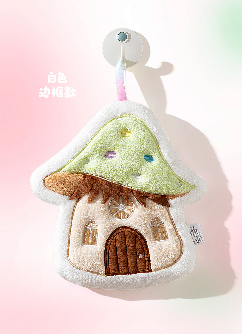 Cartoon Mushroom House hand towel, hanging thickened coral velvet embroidered towel, water-absorbing cute children's handkerchief, small towel