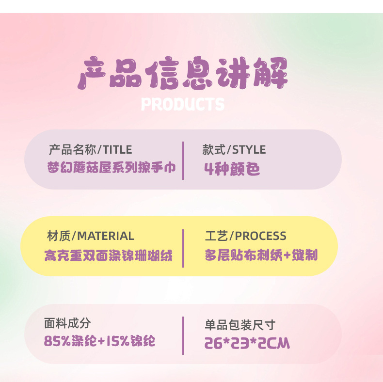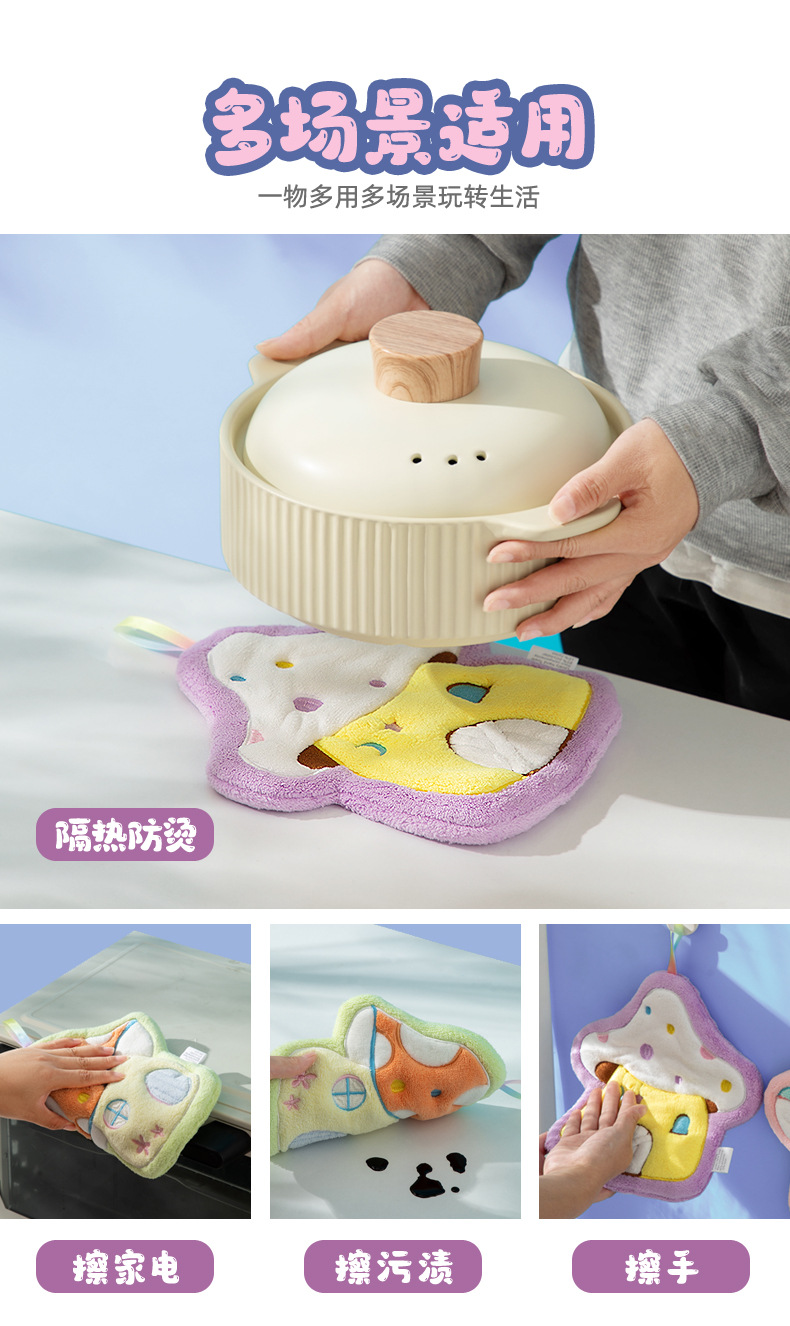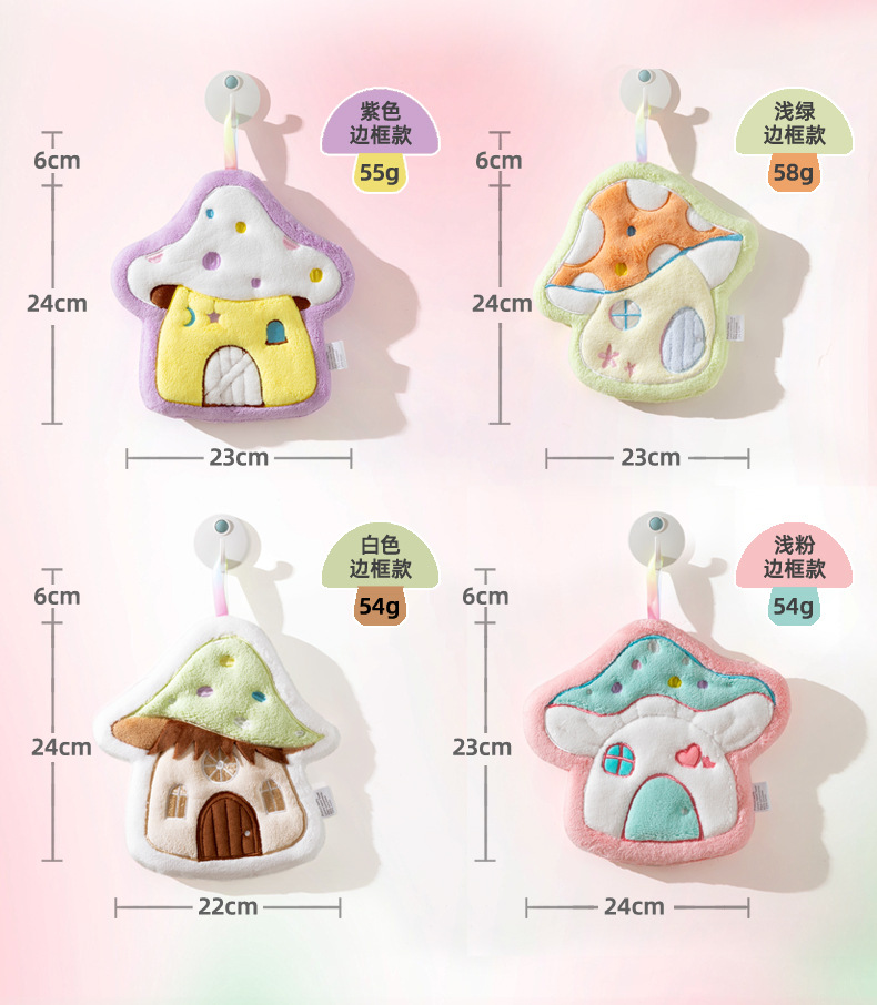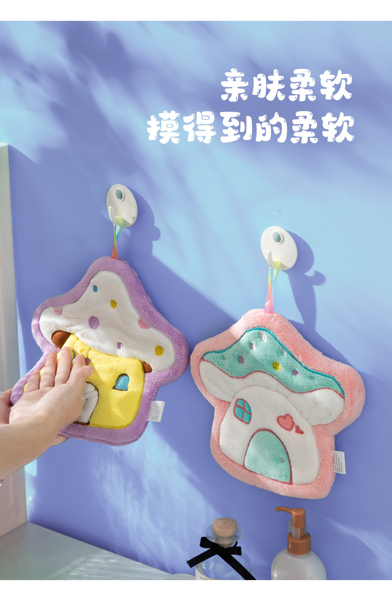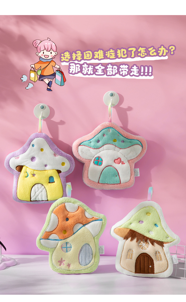 Cartoon Mushroom House hand towel, hanging thickened coral velvet embroidered towel, water-absorbing cute children's handkerchief, small towel