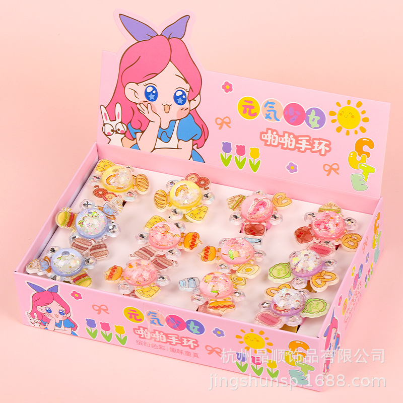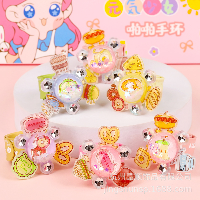 Cartoon sand patting ring wristband with sequins, rotating wrist strap, baby patting ring children's toy gift