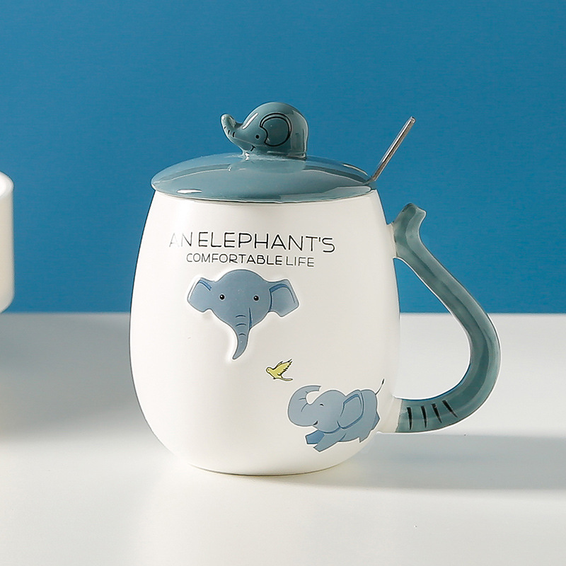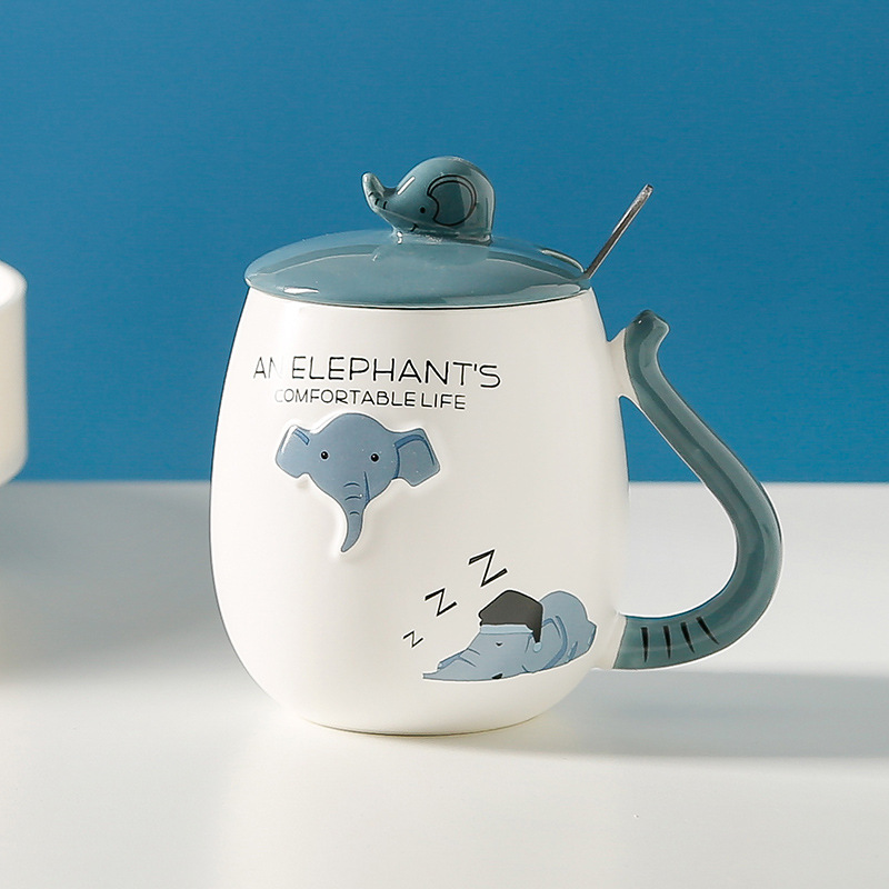 Cartoon three-dimensional relief elephant ceramic cup, office and home mug, coffee cup, high appearance level, couple water cup with lid