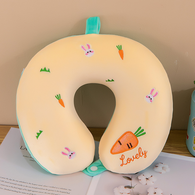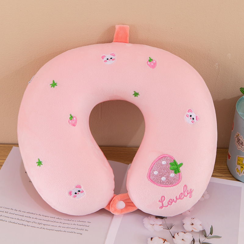 Cartoon U-shaped pillow with embroidery, travel neck support pillow, dual-purpose for office, Valentine's Day gift. The gift can be printed with logo