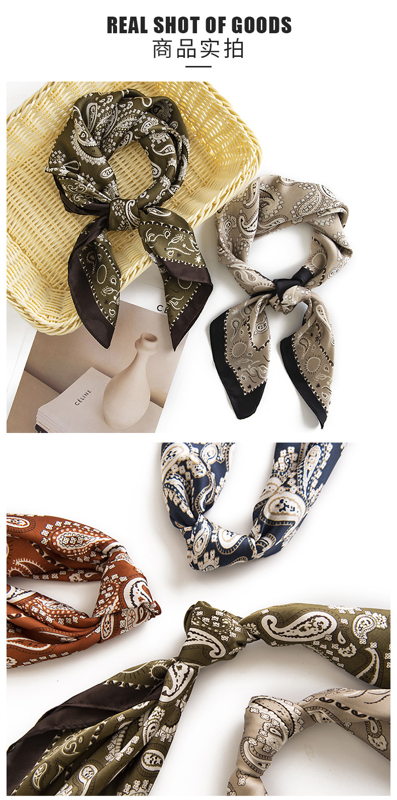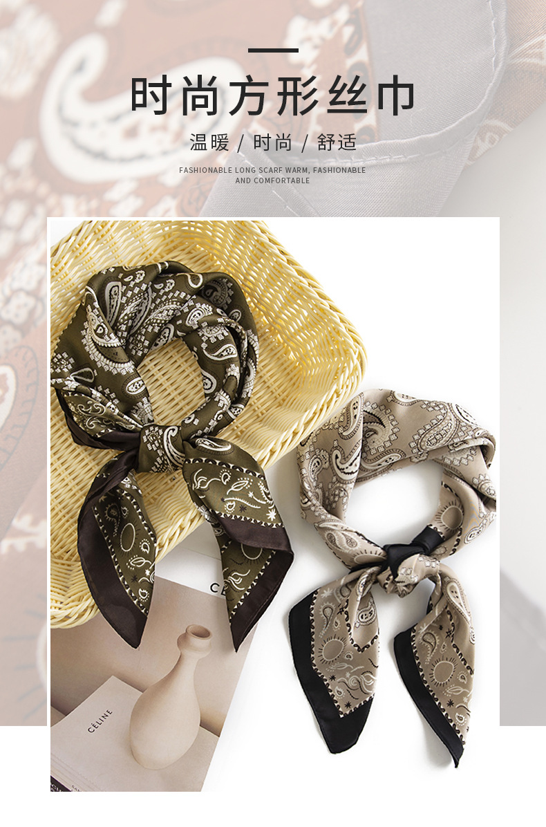 Cashew flower small square scarf, artistic and retro, silk-like silk scarf, women's sun protection and neck care scarf, can be paired with shirts and business attire