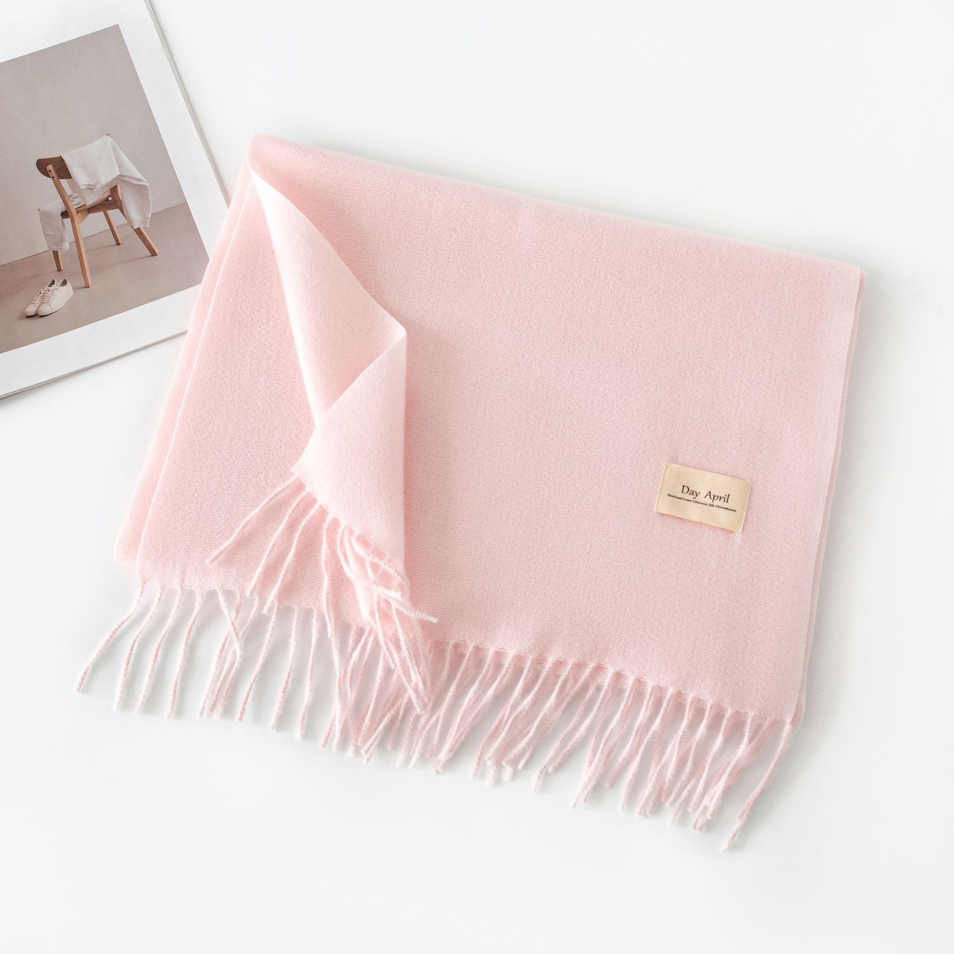 Cashmere feel solid color scarf for women, imitation cashmere 2024 autumn and winter atmosphere, Korean style versatile mid-length shawl scarf