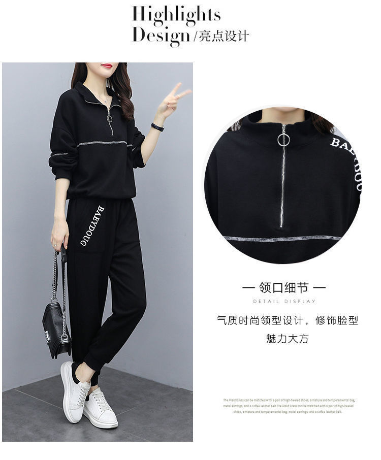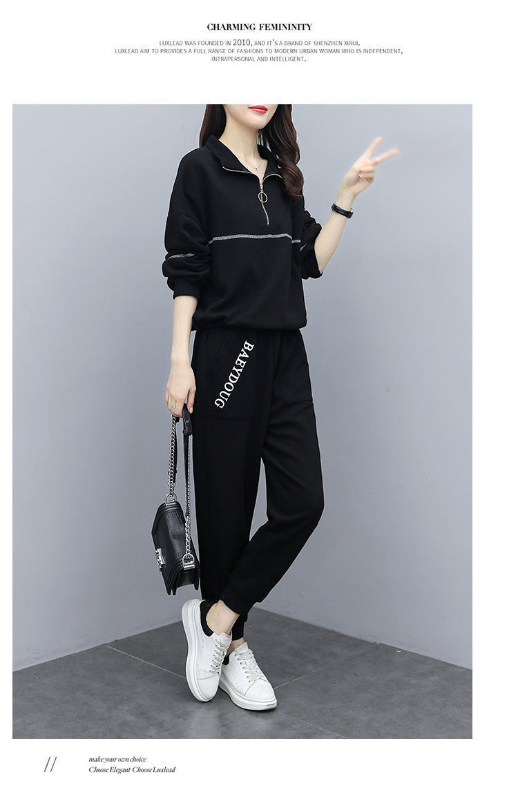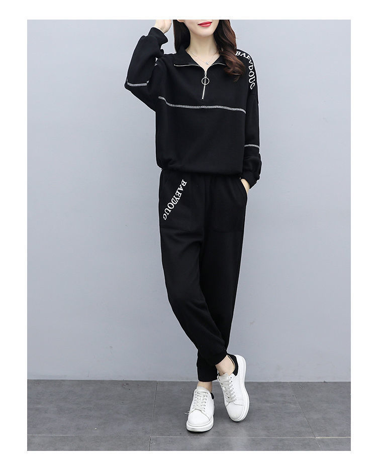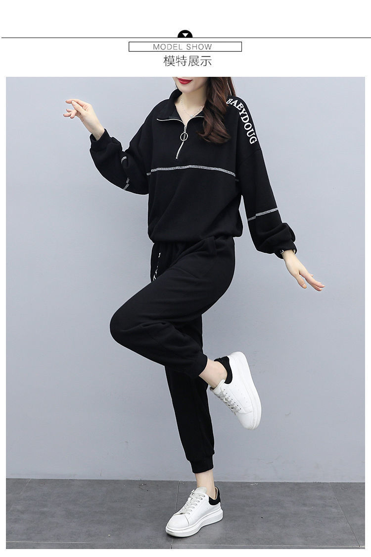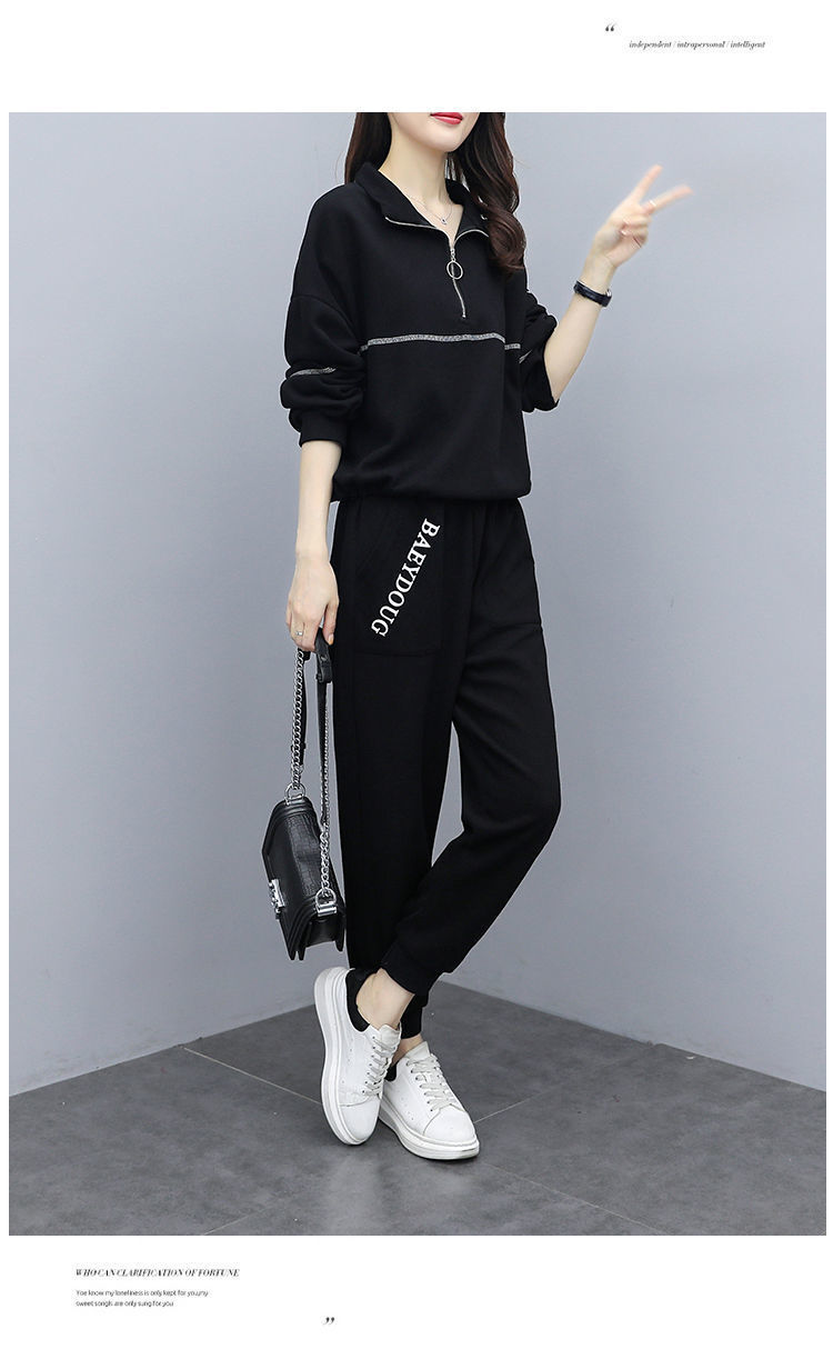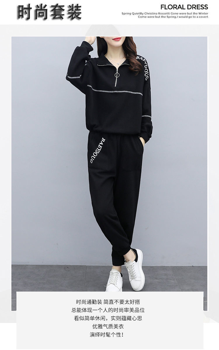 Casual plus-size women's clothing 200-pound fat sister set for women, new Spring and autumn loose zipper stylish and youthful two-piece set