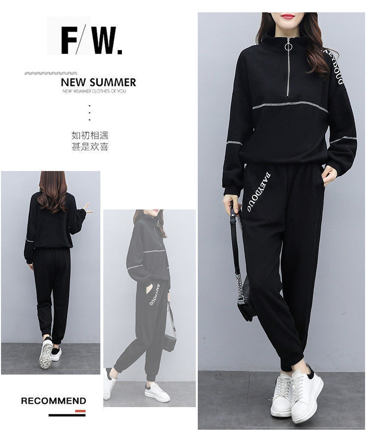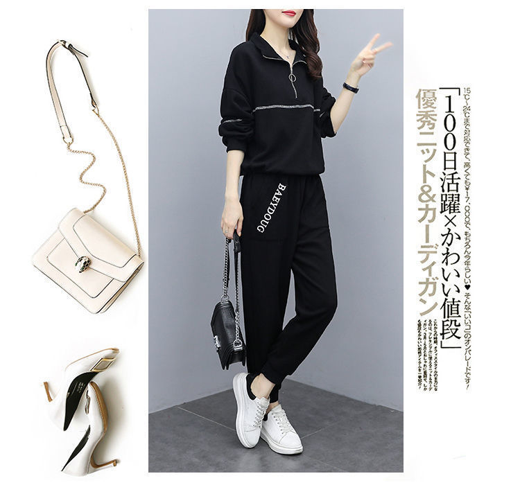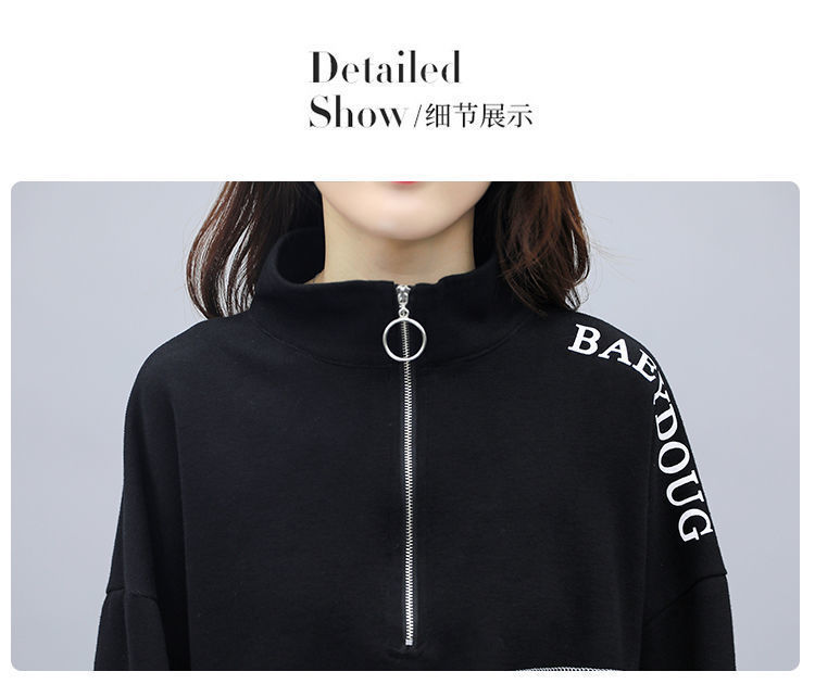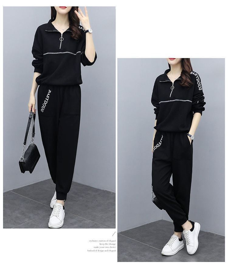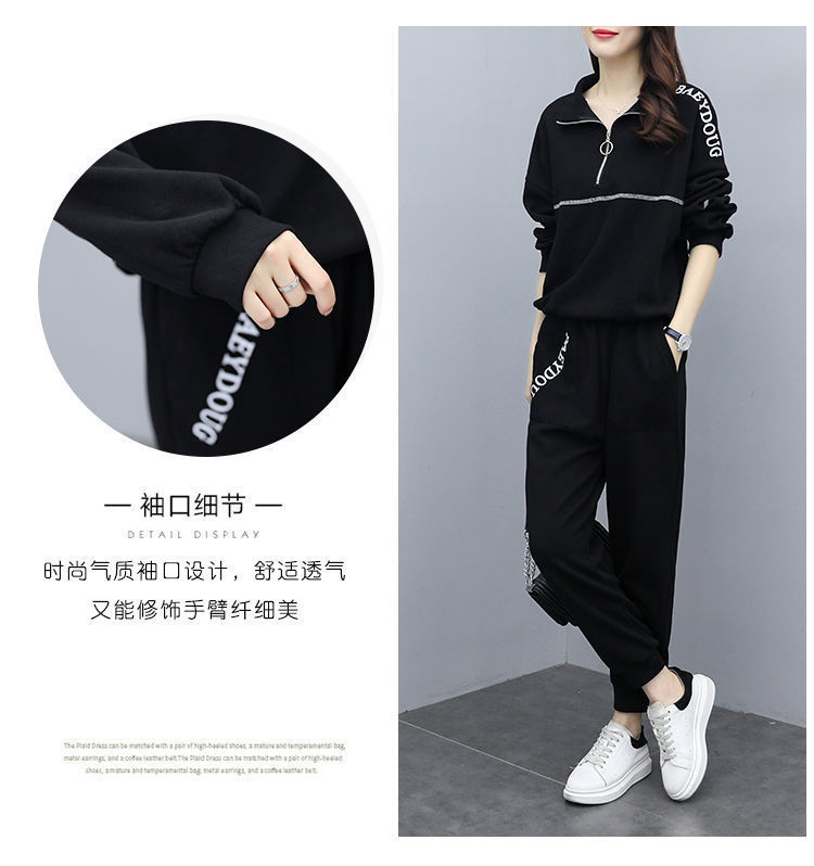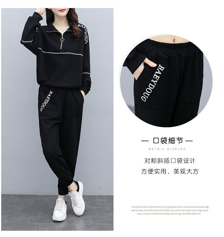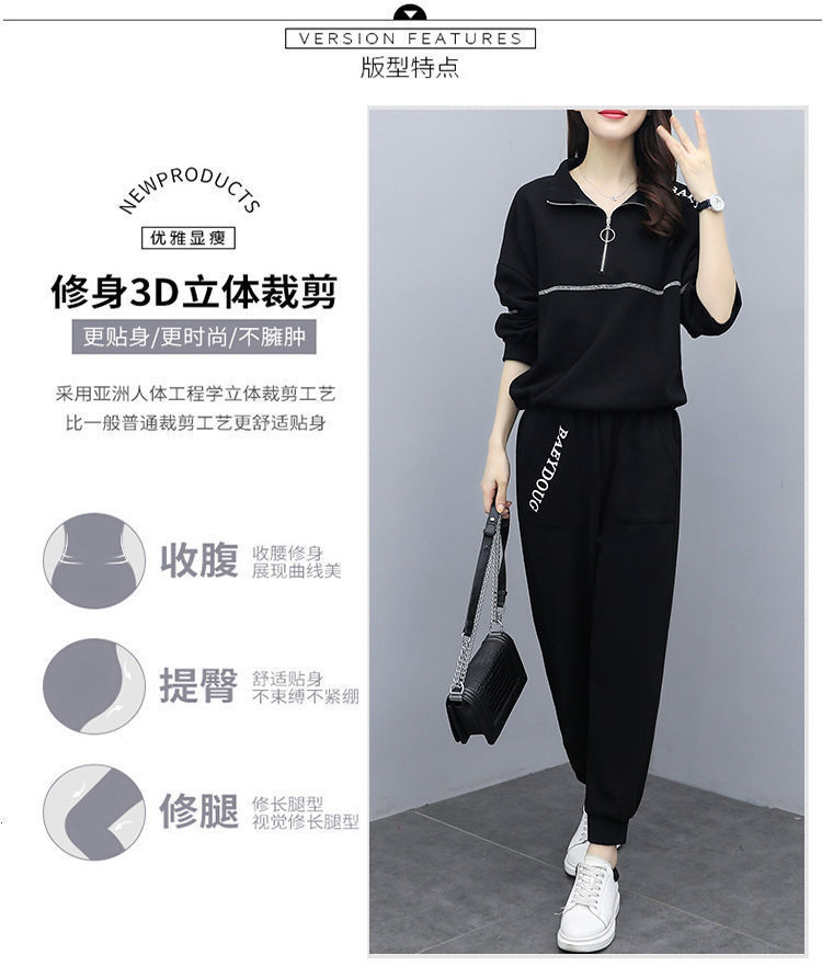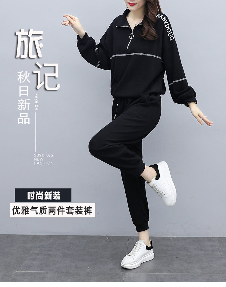 Casual plus-size women's clothing 200-pound fat sister set for women, new Spring and autumn loose zipper stylish and youthful two-piece set