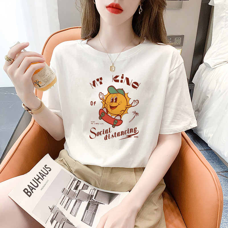 Casual pure cotton short-sleeved T-shirt for women's top 2023 Summer new women's loose innerwear in white