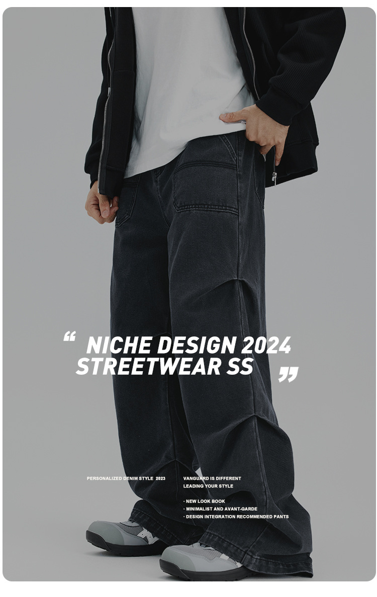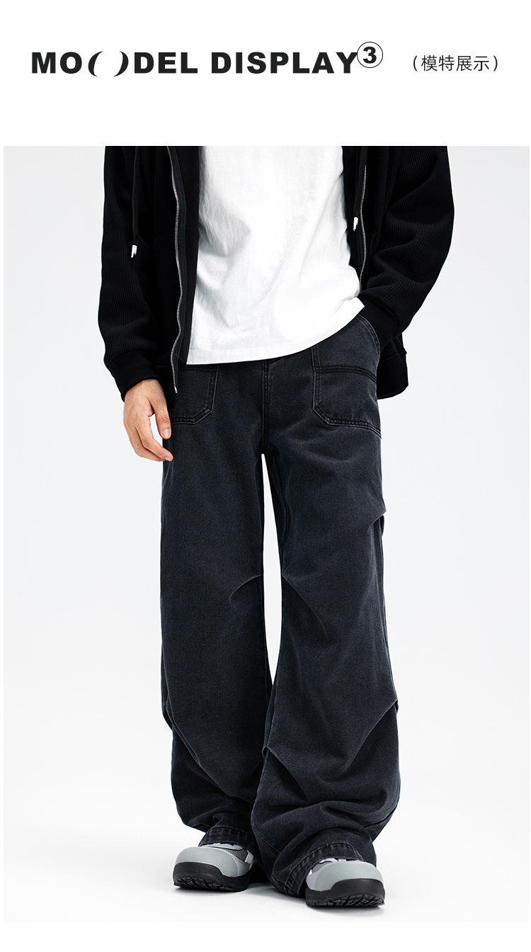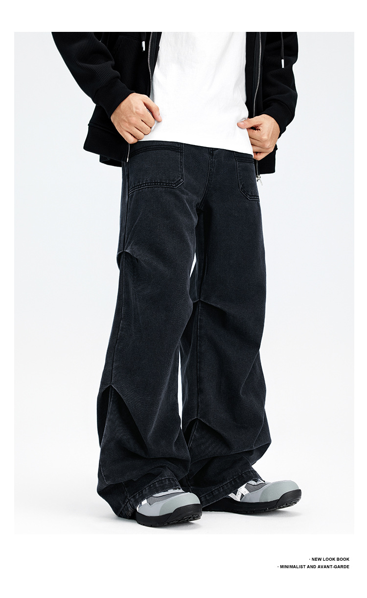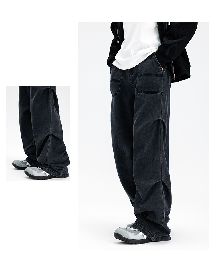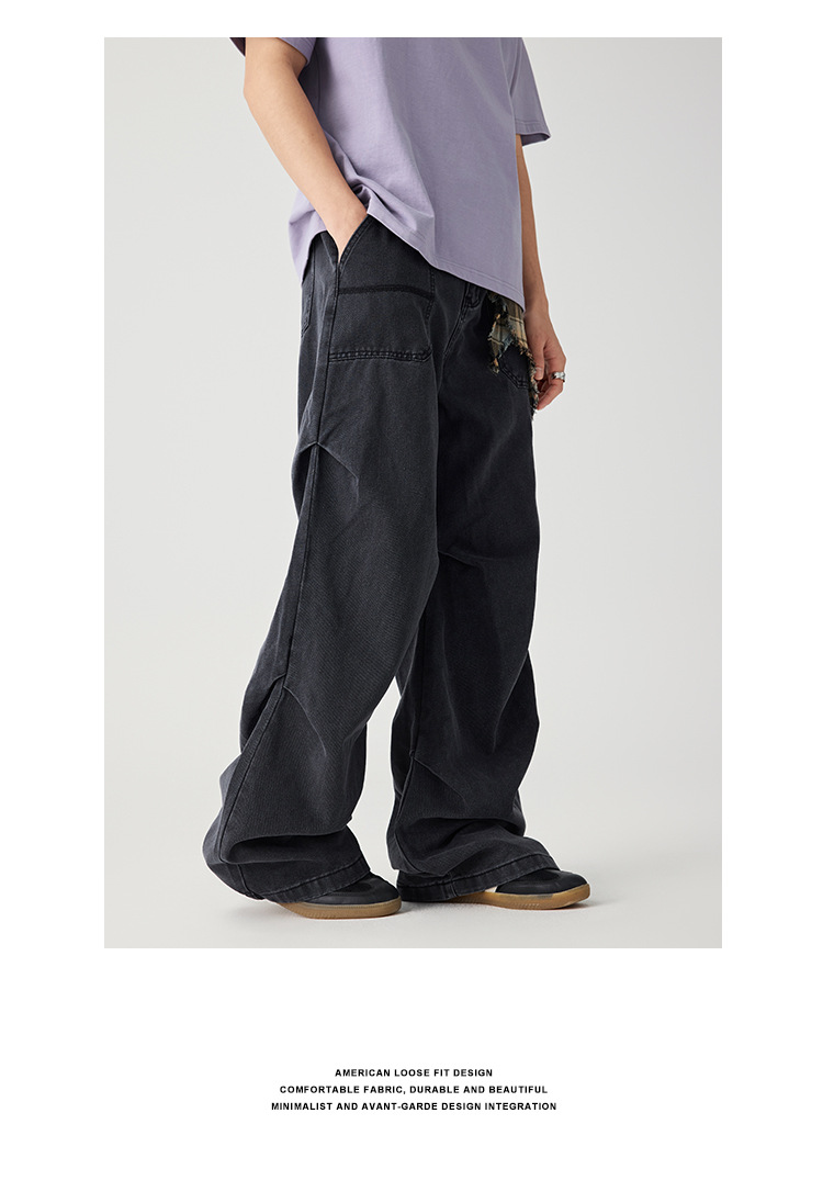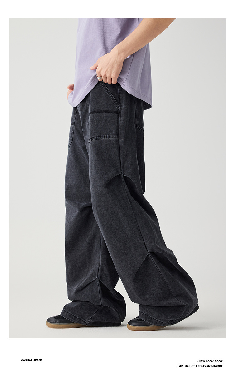 Casual straight-leg slightly flared jeans for men, loose wide-leg pants for men, classic men's casual pants for teenagers