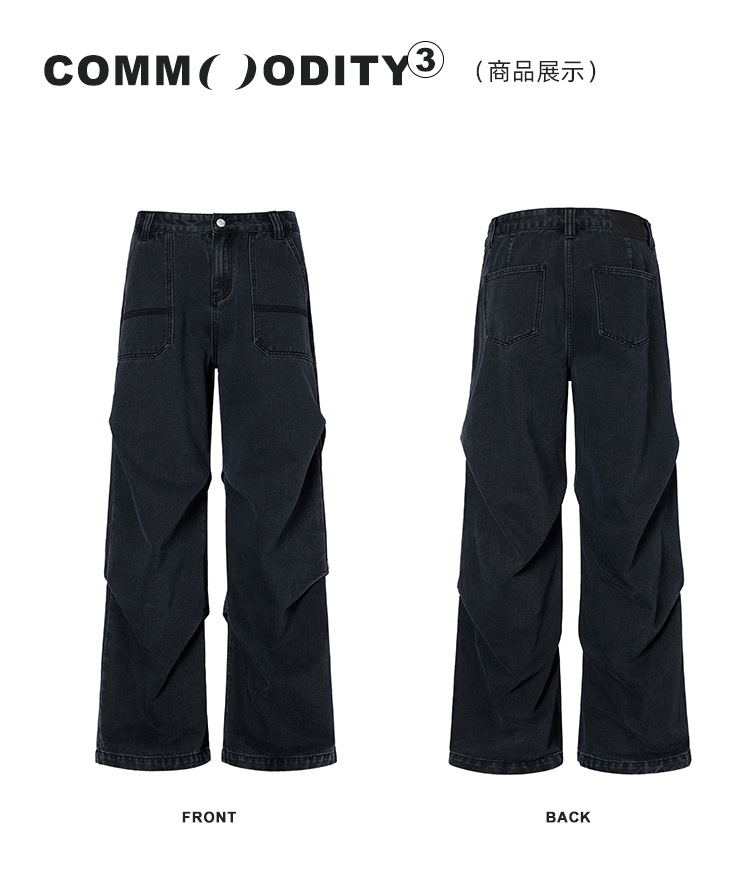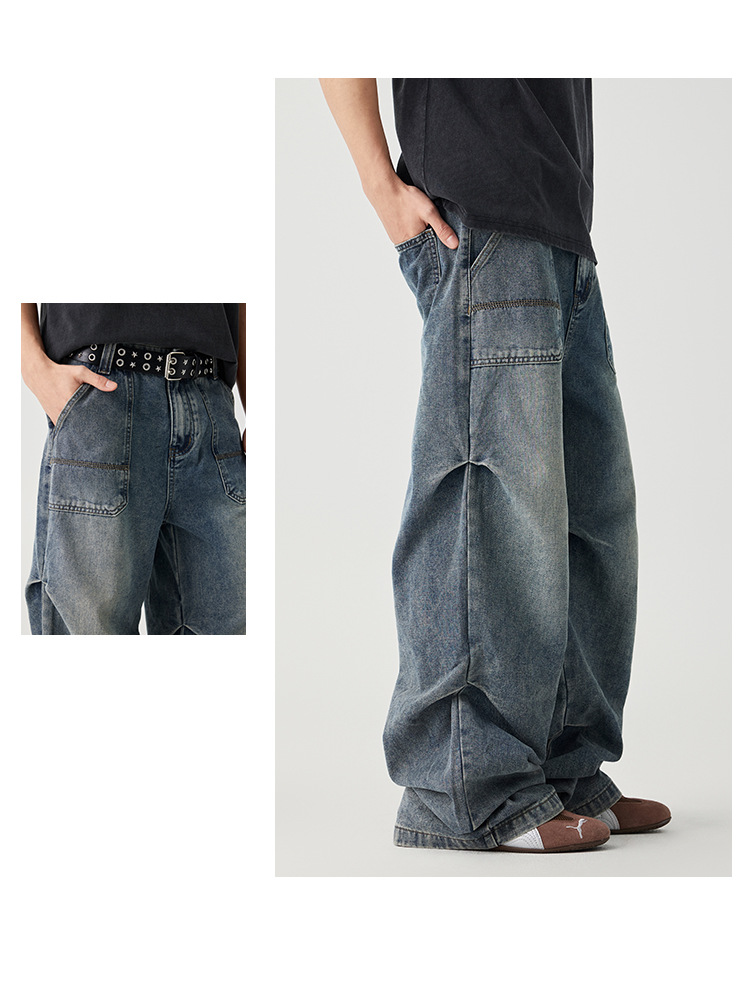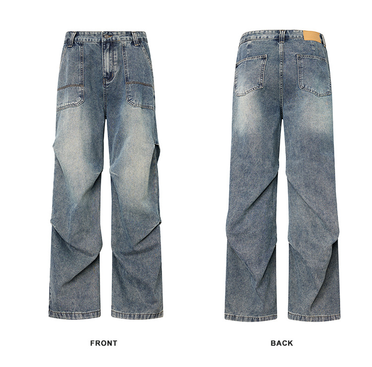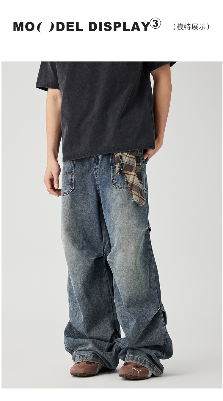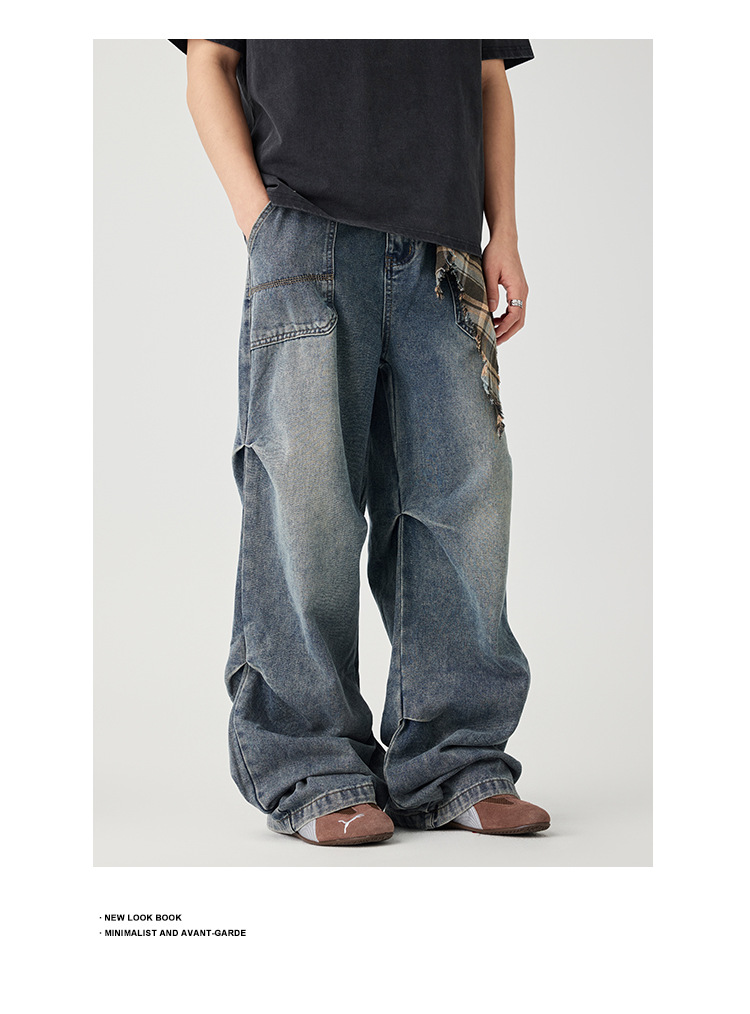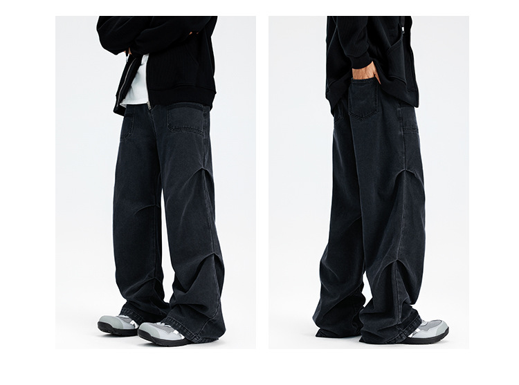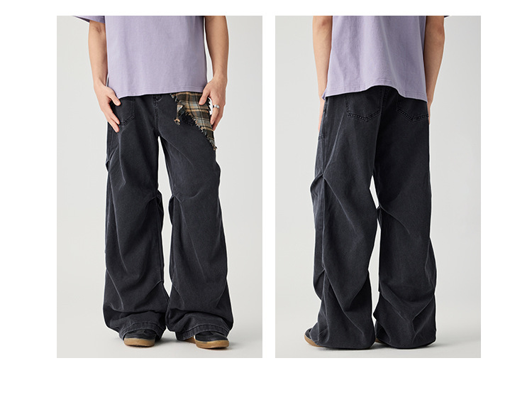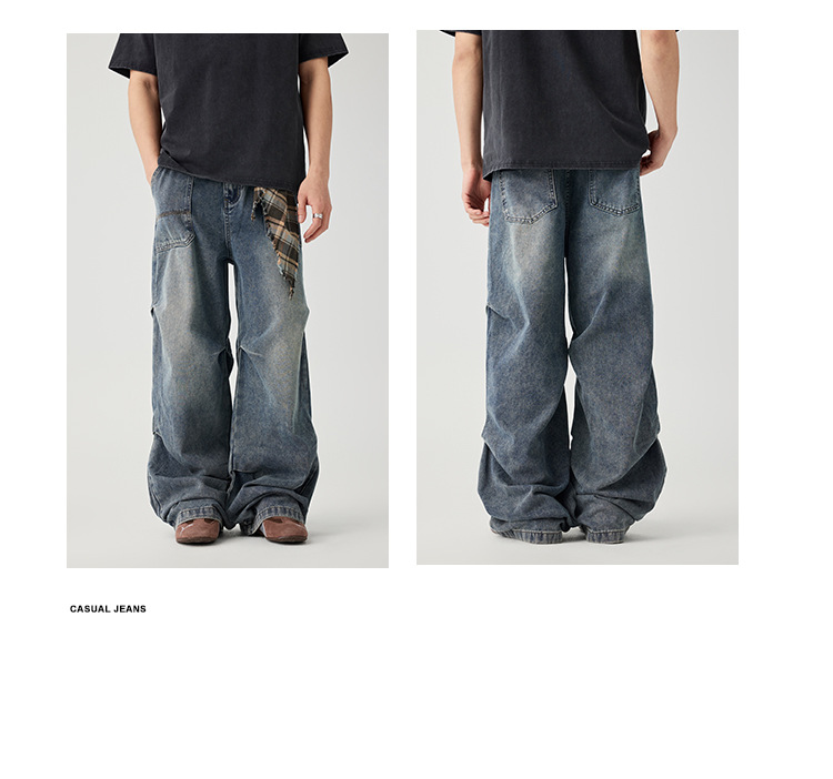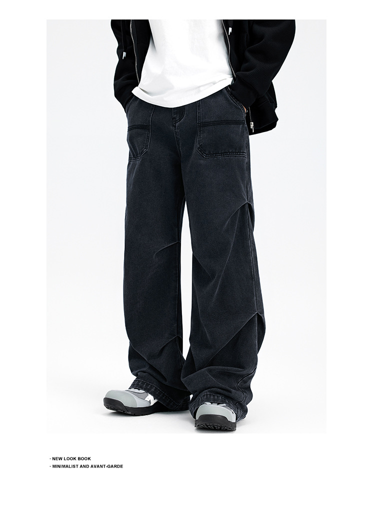 Casual straight-leg slightly flared jeans for men, loose wide-leg pants for men, classic men's casual pants for teenagers