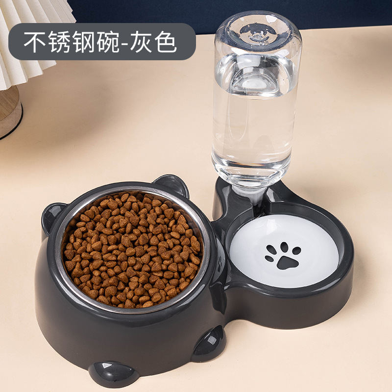 Cat bowl, slanted mouth, dog bowl, cat food bowl, double bowl, stainless steel automatic water refilling, pet bowl, two-in-one drinking and feeding device